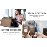 Husa practica si eleganta ce ofera posibilitatea introducerii de carduri bancare si bancnote in buzunarasele interioare.