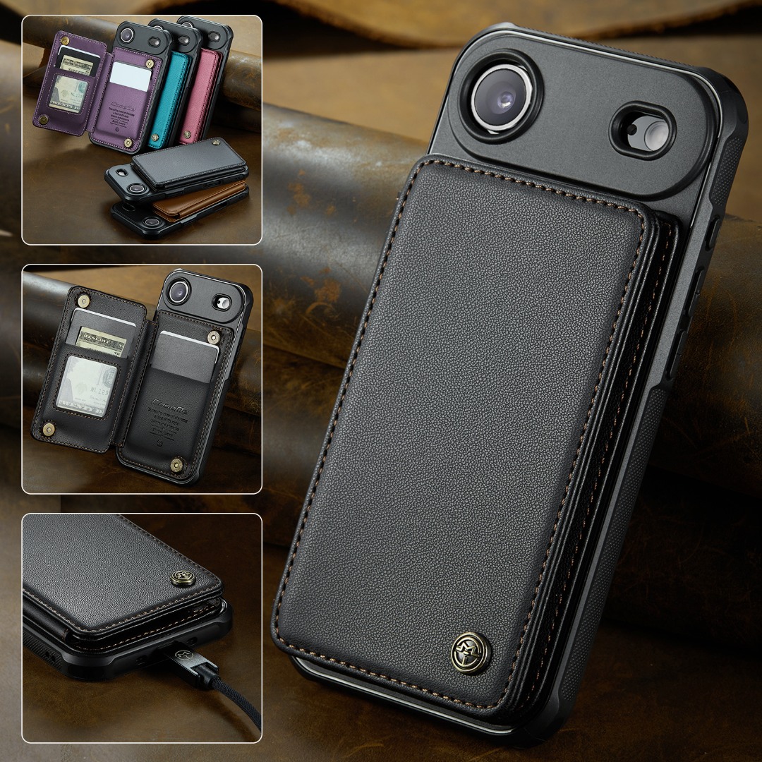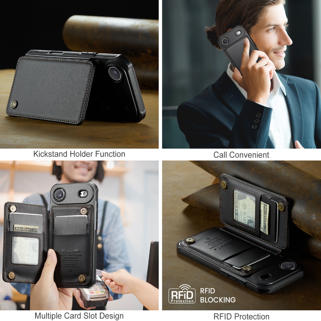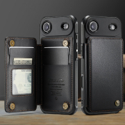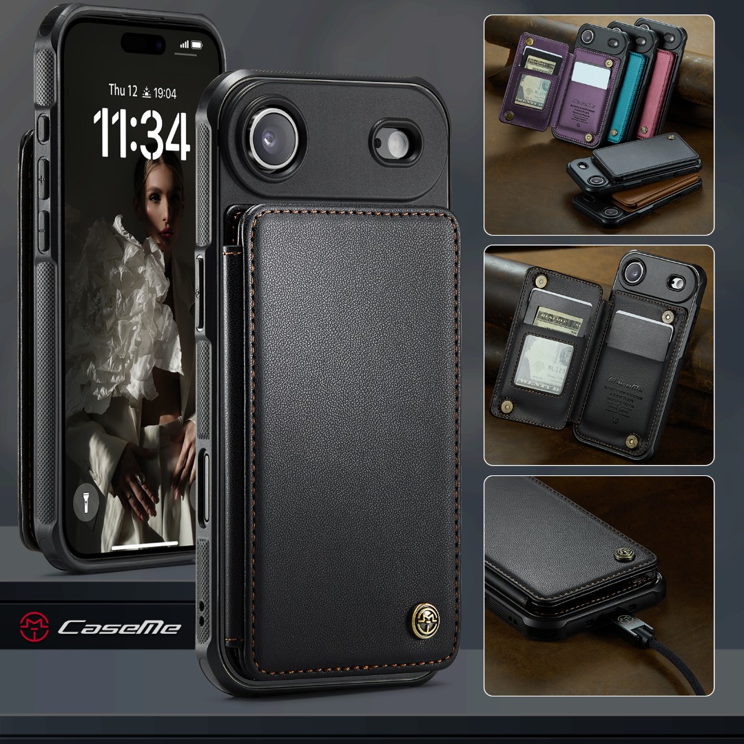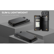 Husa piele cu textura moale si aderenta in mana, back cover, slot carduri, functie stand, protectie RFID, iPhone Air, Negru