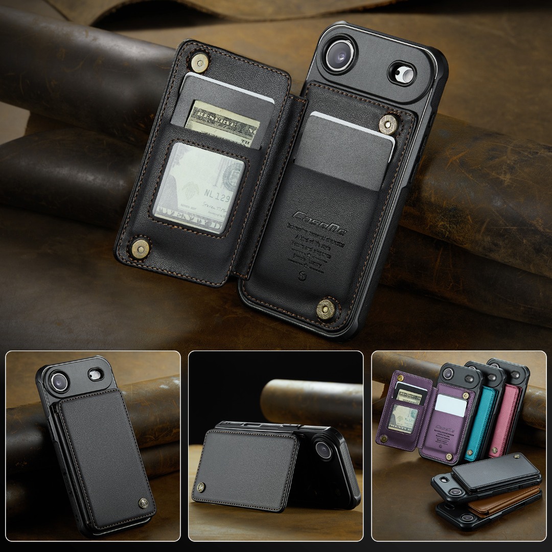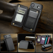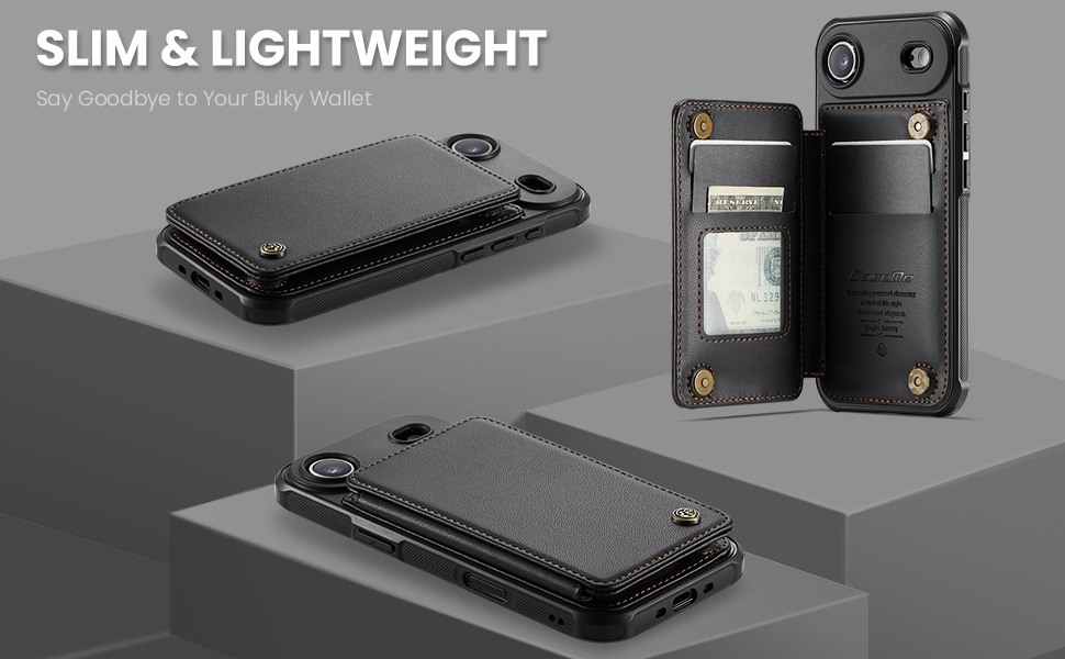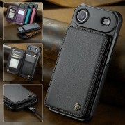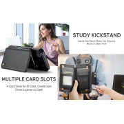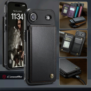Husa practica si eleganta ce ofera posibilitatea introducerii de carduri bancare si bancnote in buzunarasele interioare.