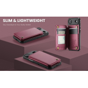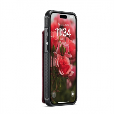 Husa piele cu textura moale si aderenta in mana, back cover, slot carduri, functie stand, protectie RFID, iPhone Air, Rosu