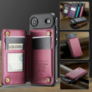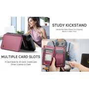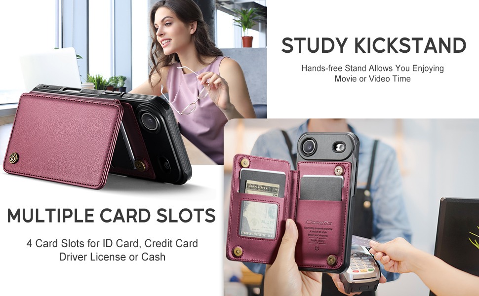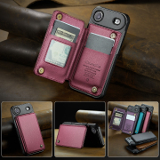 Husa practica si eleganta ce ofera posibilitatea introducerii de carduri bancare si bancnote in buzunarasele interioare.