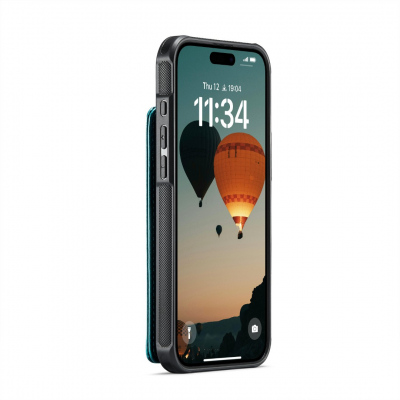 Husa piele cu textura moale si aderenta in mana, back cover, slot carduri, functie stand, protectie RFID, iPhone Air, Verde