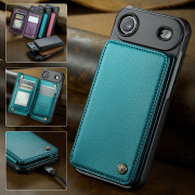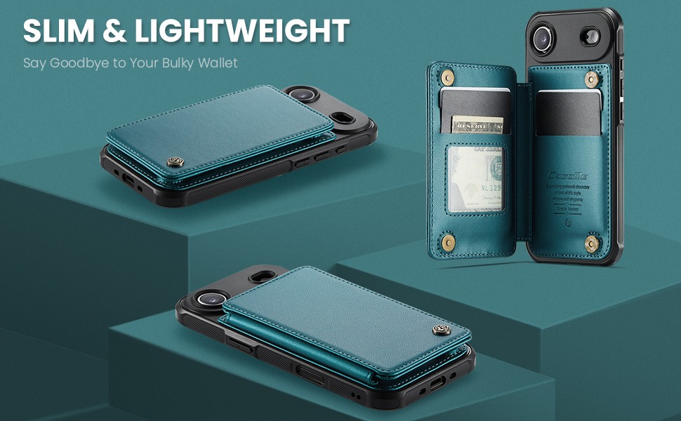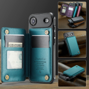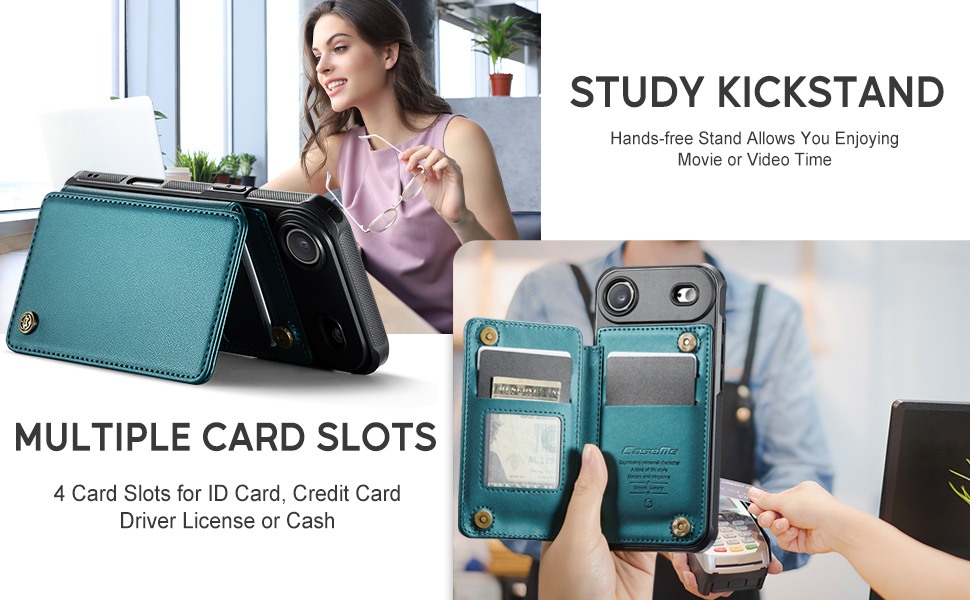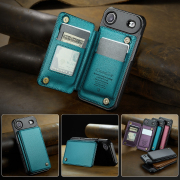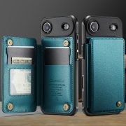 Husa practica si eleganta ce ofera posibilitatea introducerii de carduri bancare si bancnote in buzunarasele interioare.