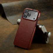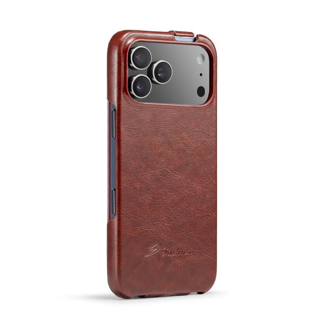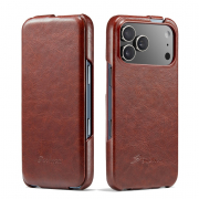 Husa piele fina, tip flip cover vertical, iPhone 17 Pro - CaseMe, Maro coniac