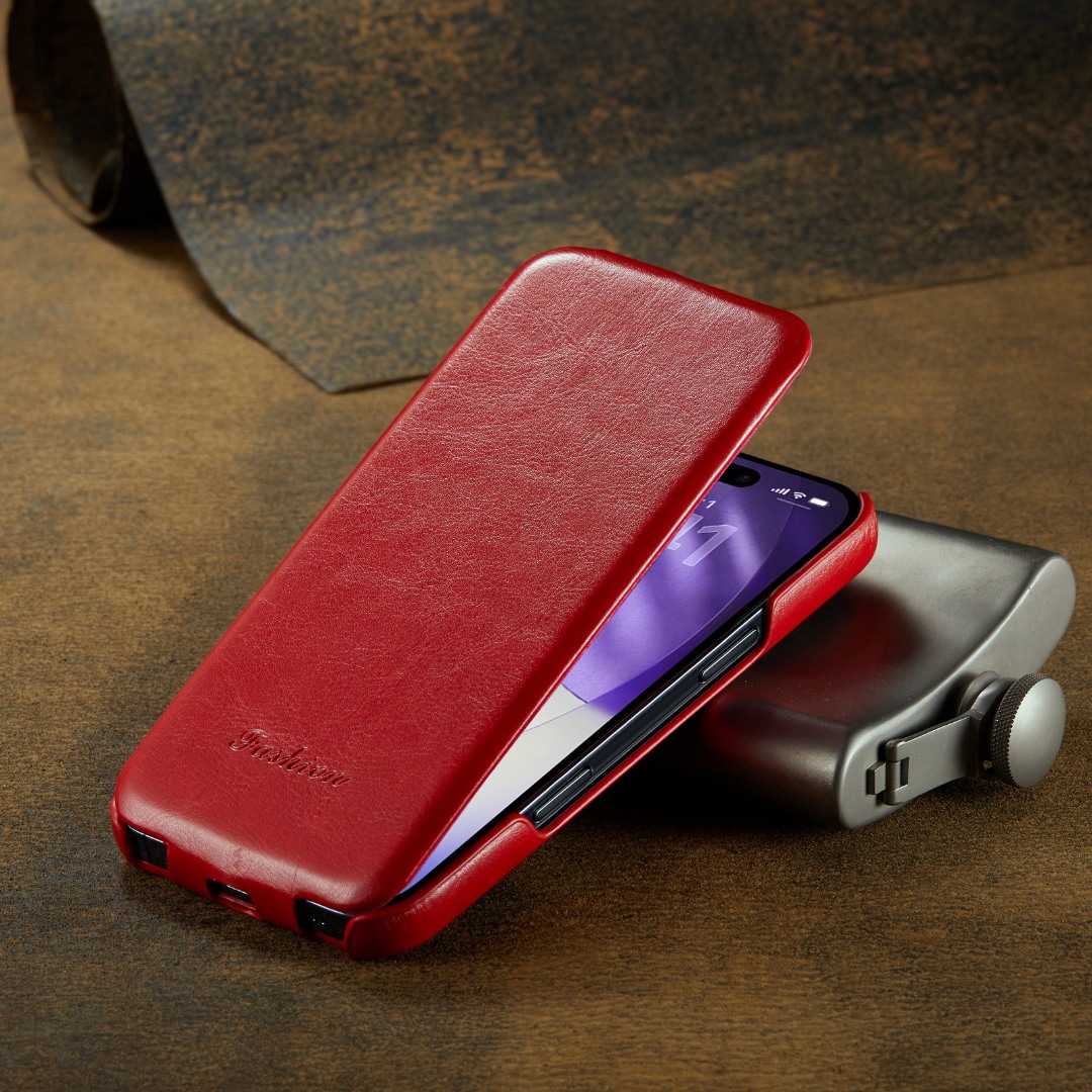 Husa piele fina, tip flip cover vertical, iPhone 17 Pro - CaseMe, Rosu
