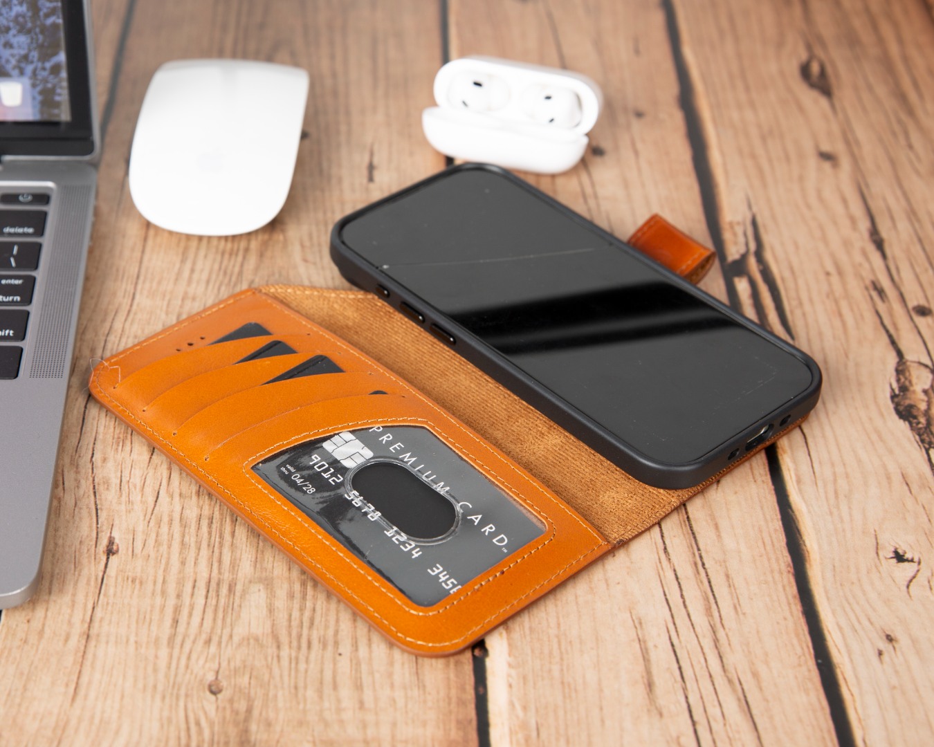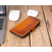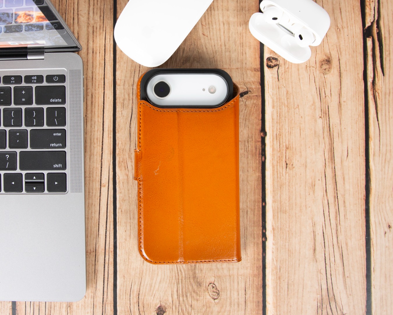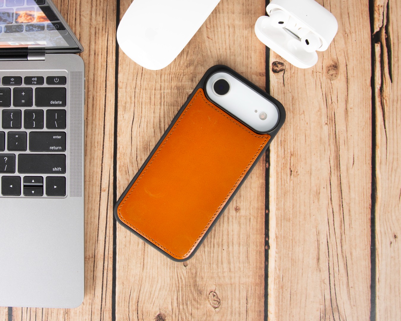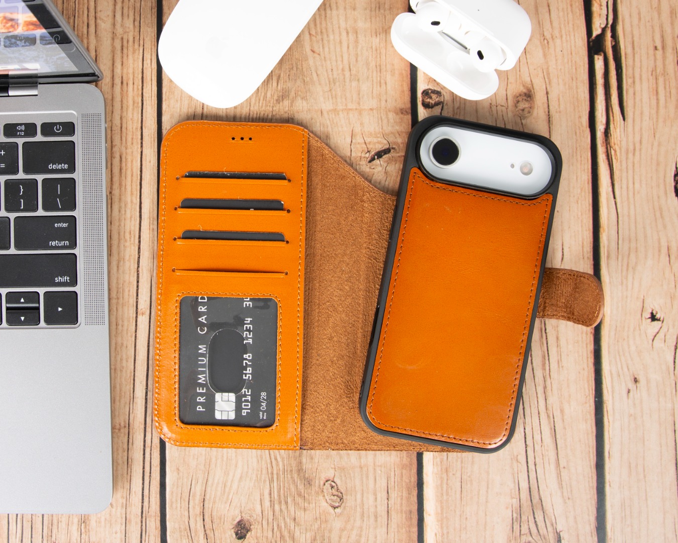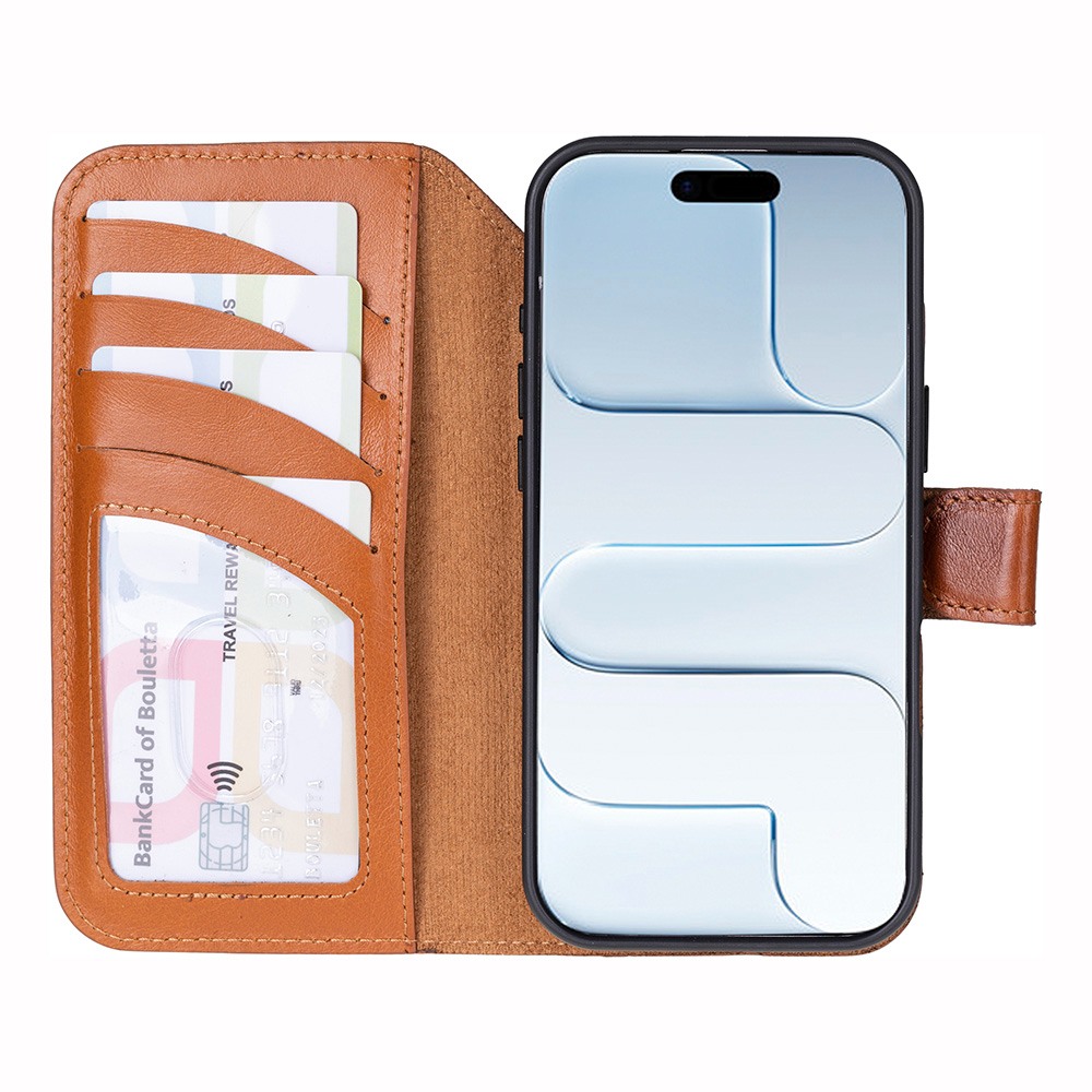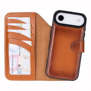 Husa piele naturala 2 in 1, cu MagSafe, tip portofel + back cover, iPhone Air - Bouletta Magic Wallet, Burnished tan