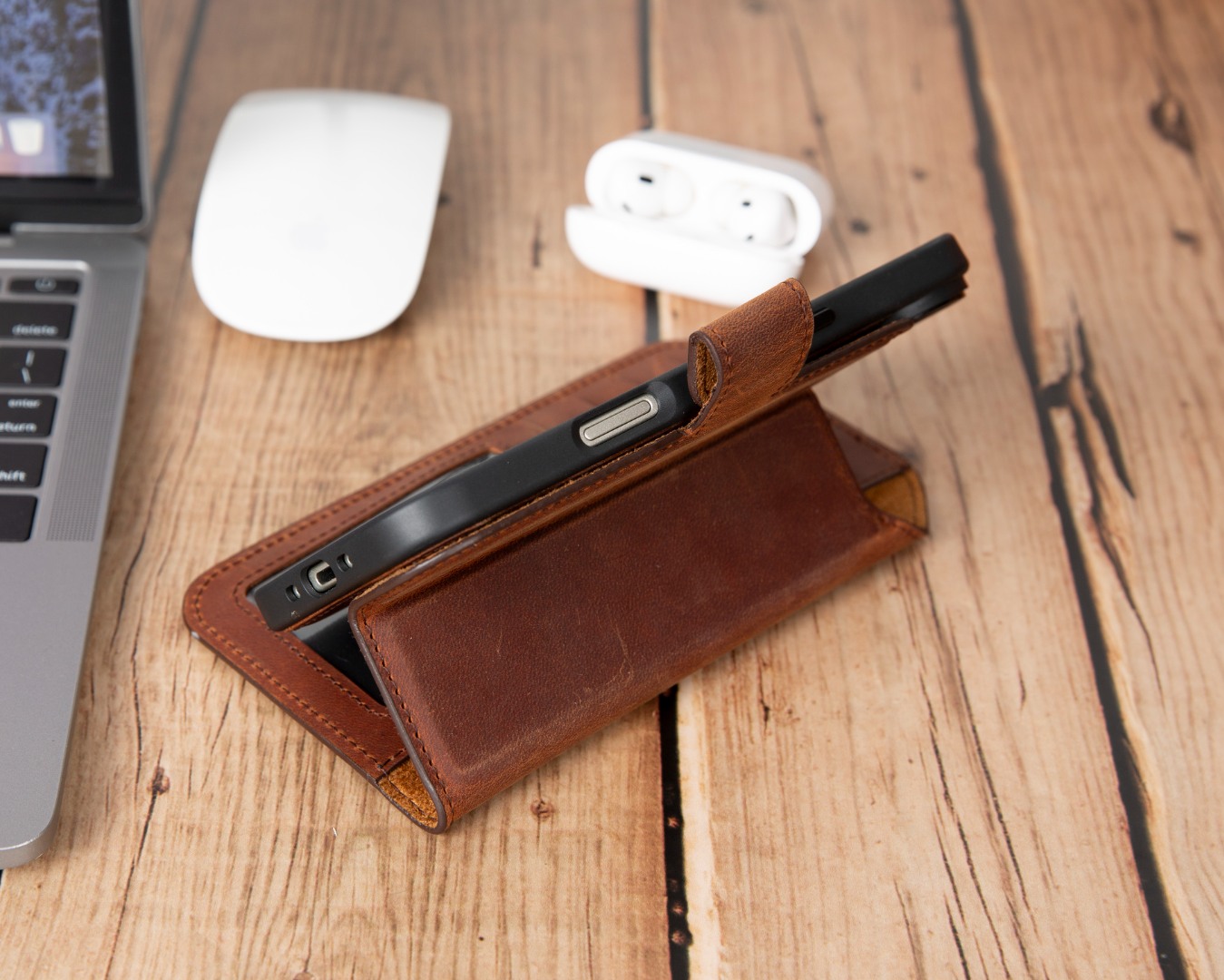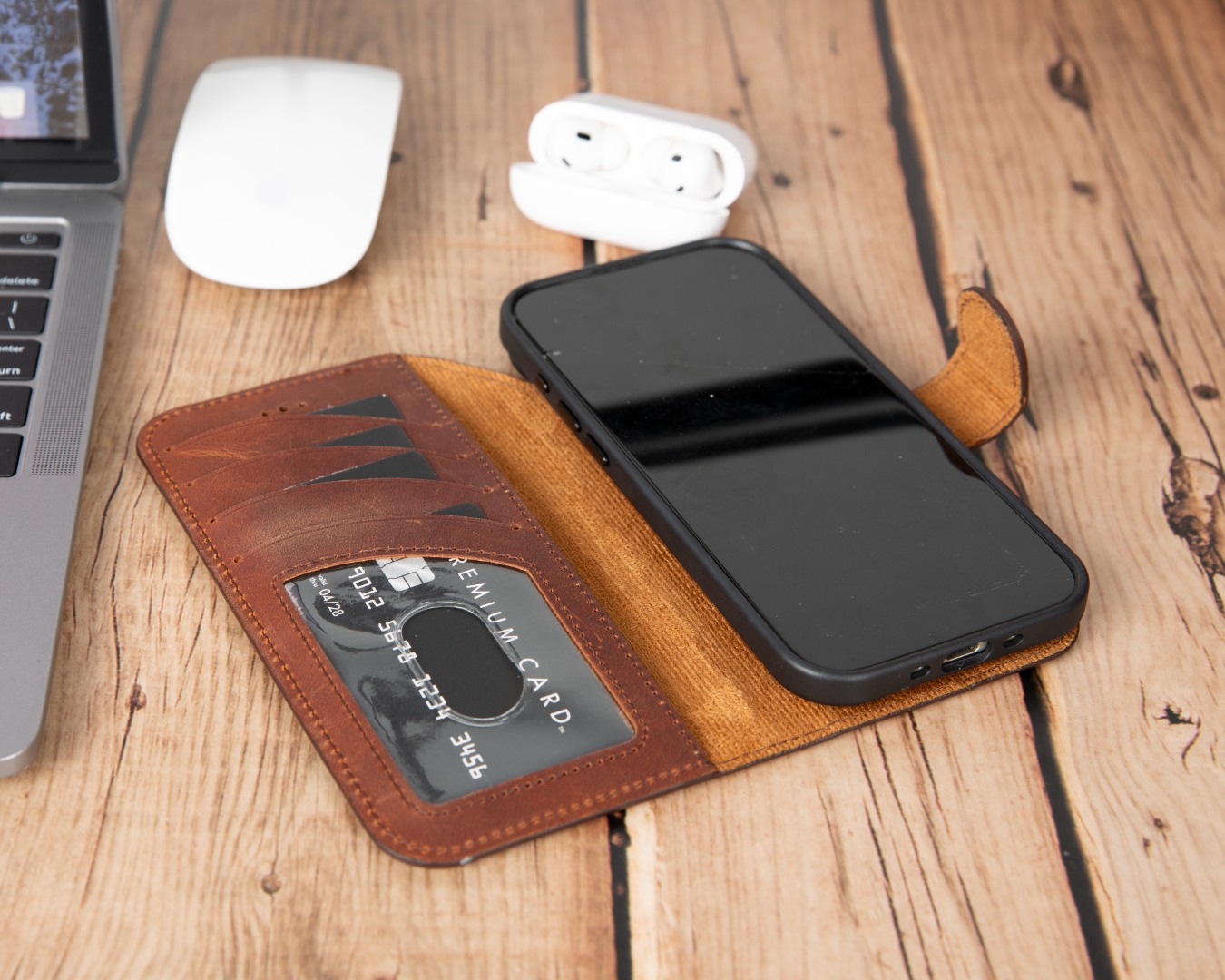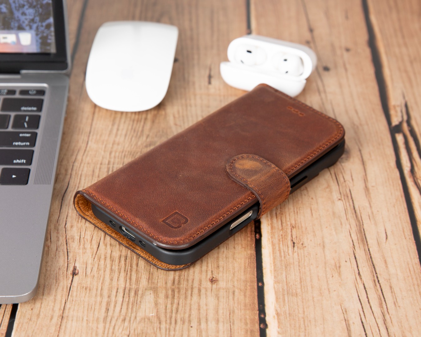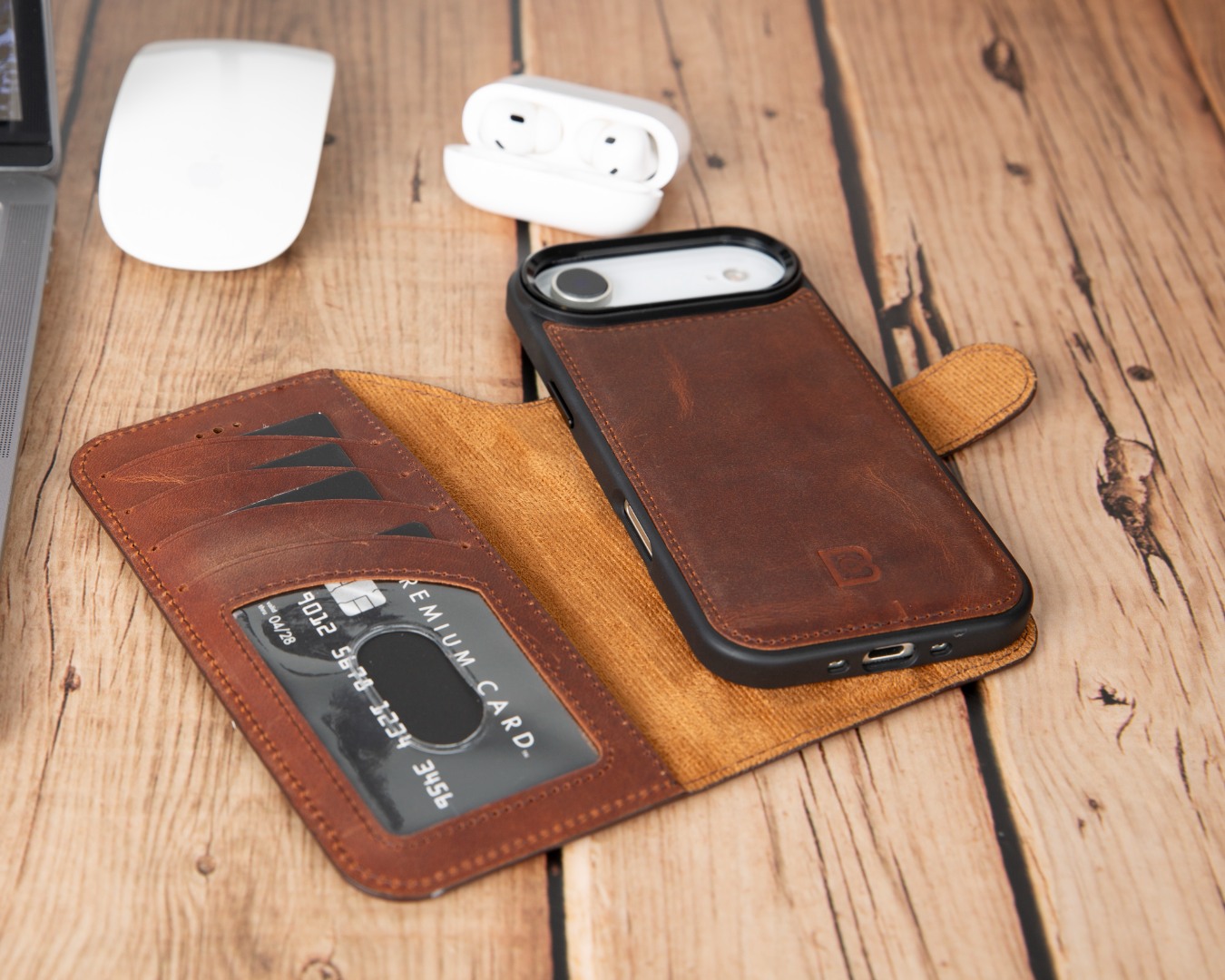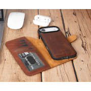 Husa piele naturala 2 in 1, cu MagSafe, tip portofel + back cover, iPhone Air - Bouletta Magic Wallet, Antique brown