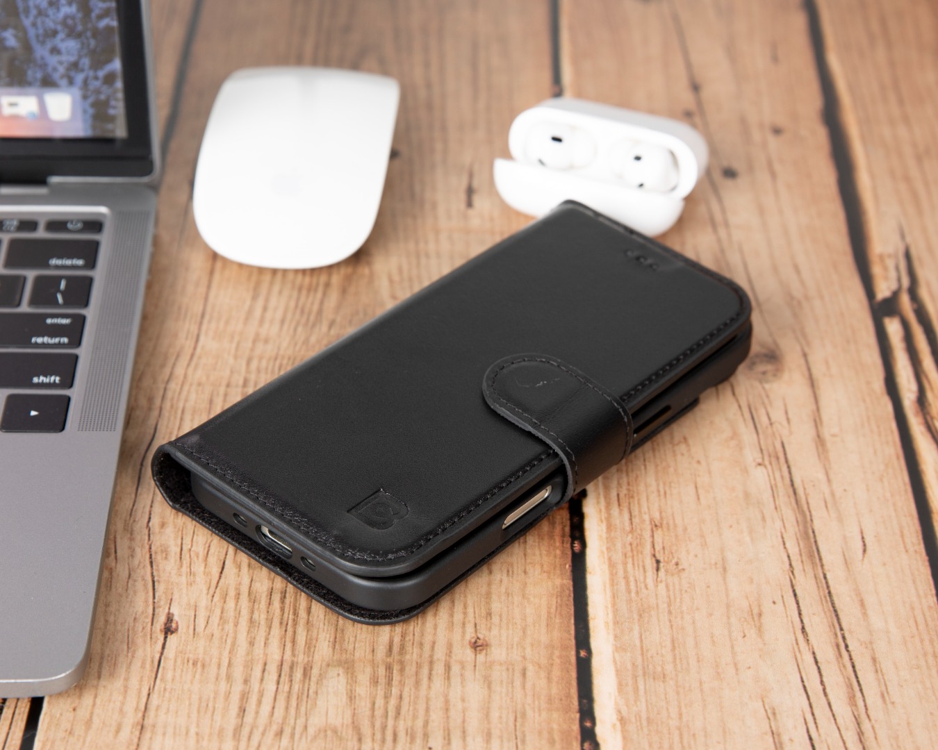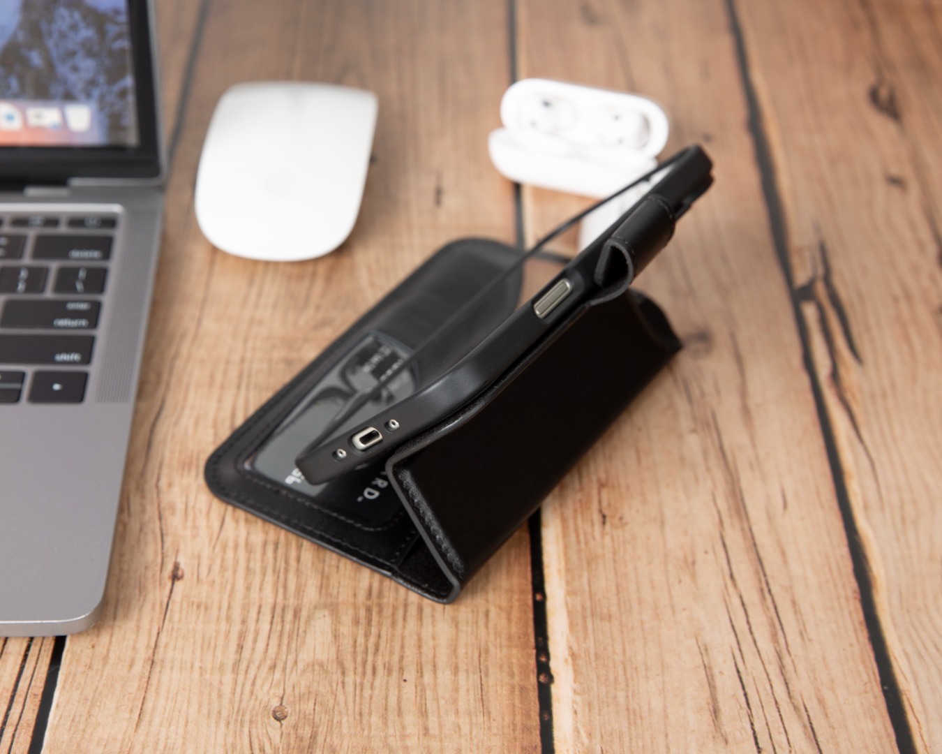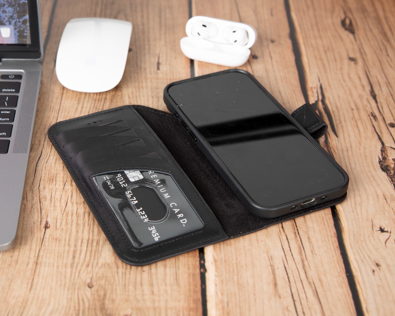 Husa piele naturala 2 in 1, cu MagSafe, tip portofel + back cover, iPhone Air - Bouletta Magic Wallet, Rustic black