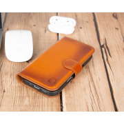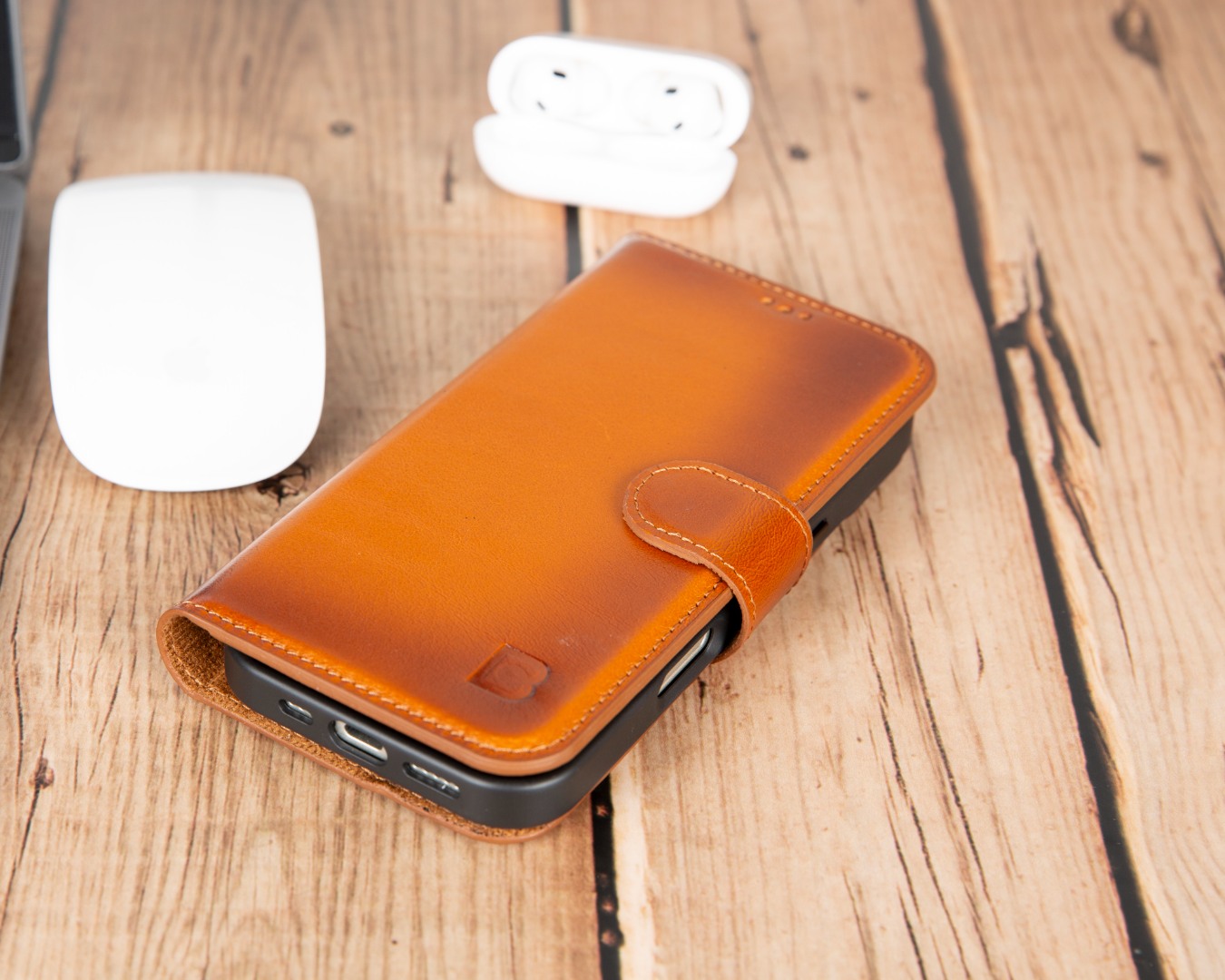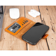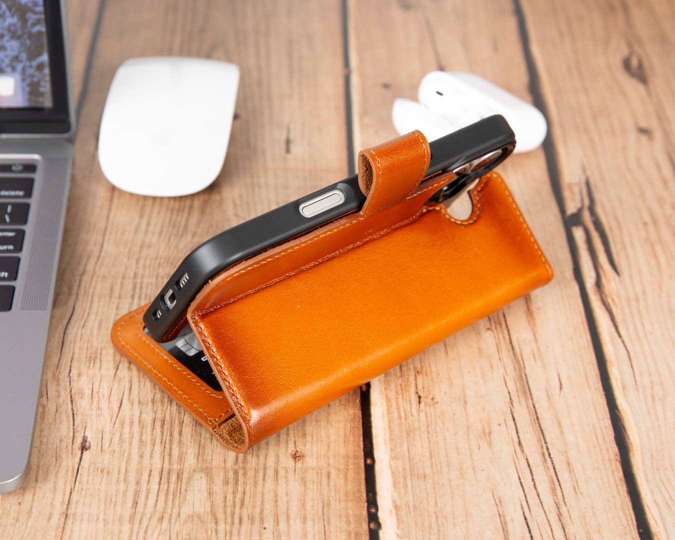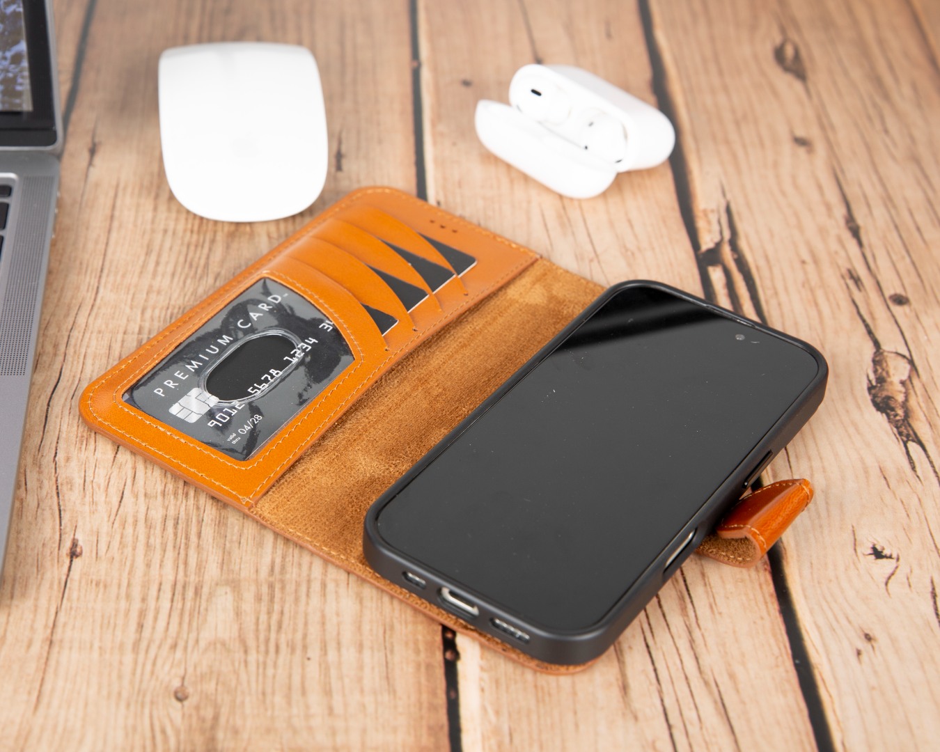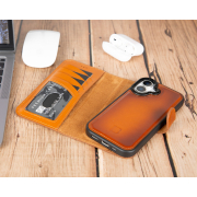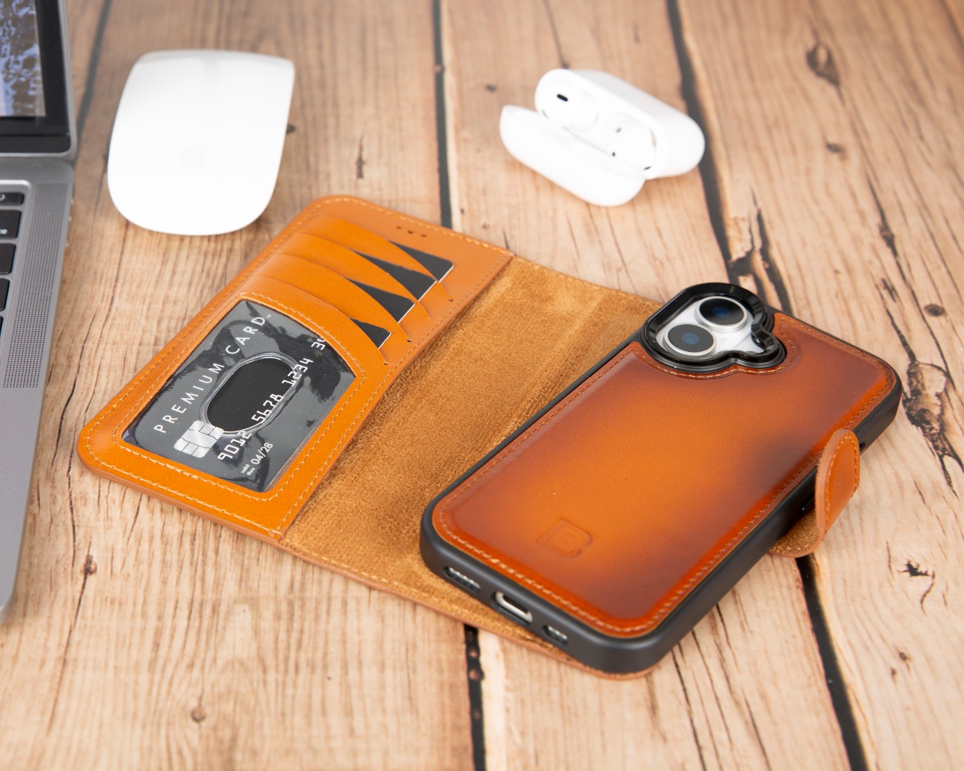 Husa piele naturala 2 in 1, cu MagSafe, tip portofel + back cover, iPhone 17 - Bouletta Magic Wallet, Burnished tan