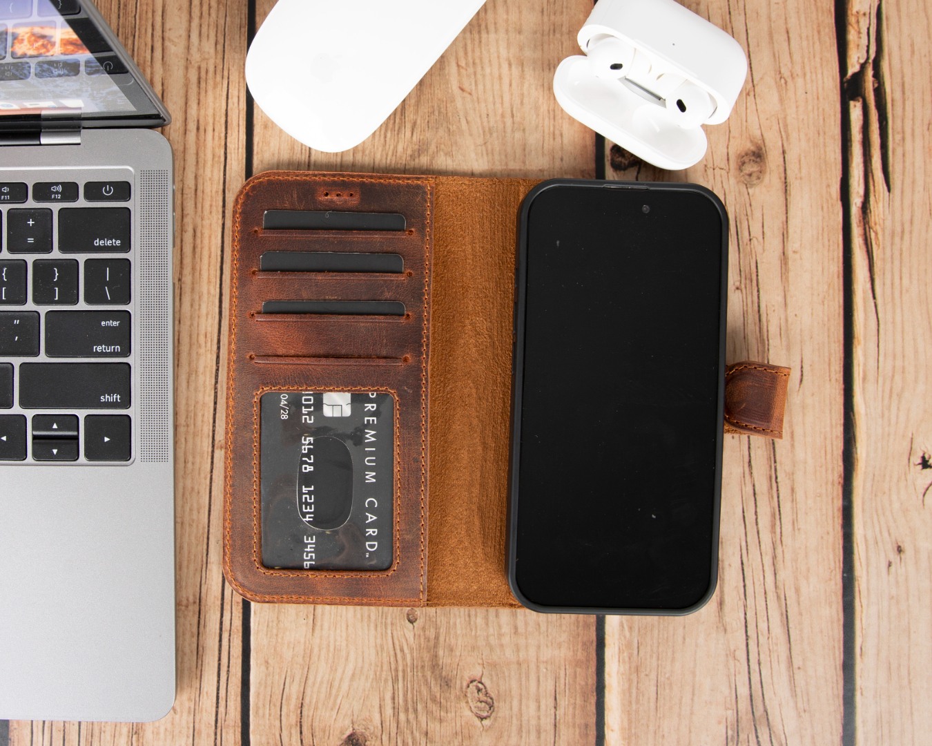 Modelul Magic Wallet ofera o protectie inalta telefonului si deopotriva multiple functionalitati care pot inlocui portofelul. Se pot pune pana la 4-6 carduri de credit sau 8 - 10 carti de vizita. De aceea, in modul complet de utilizare, aceasta husa nu este una slim. Insa, carcasa tip back cover in care se fixeaza telefonul, putandu-se detasa, face ca modelul acesta sa intruneasca multe conditii de utilizare. Husa back cover este slim si foarte aderenta in mana.