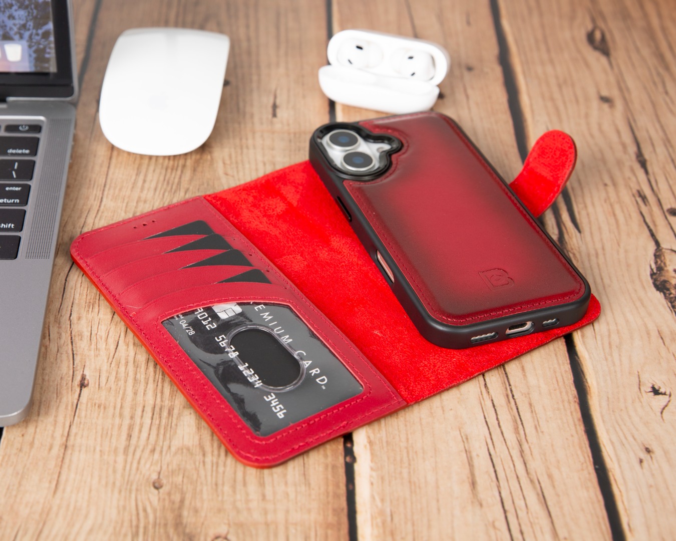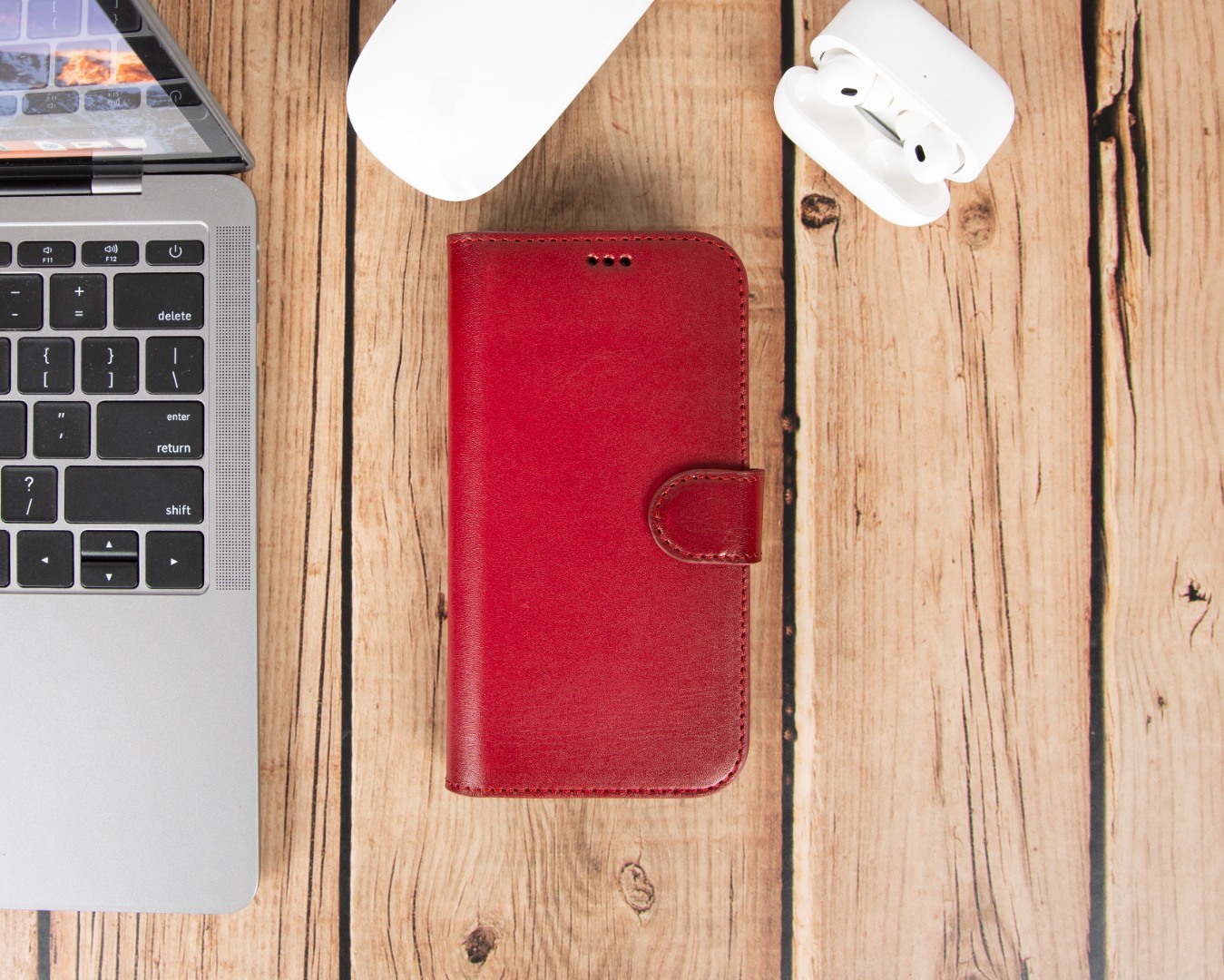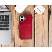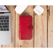Husa piele naturala 2 in 1, cu MagSafe, tip portofel + back cover, iPhone 17 - Bouletta Magic Wallet, Burnished red