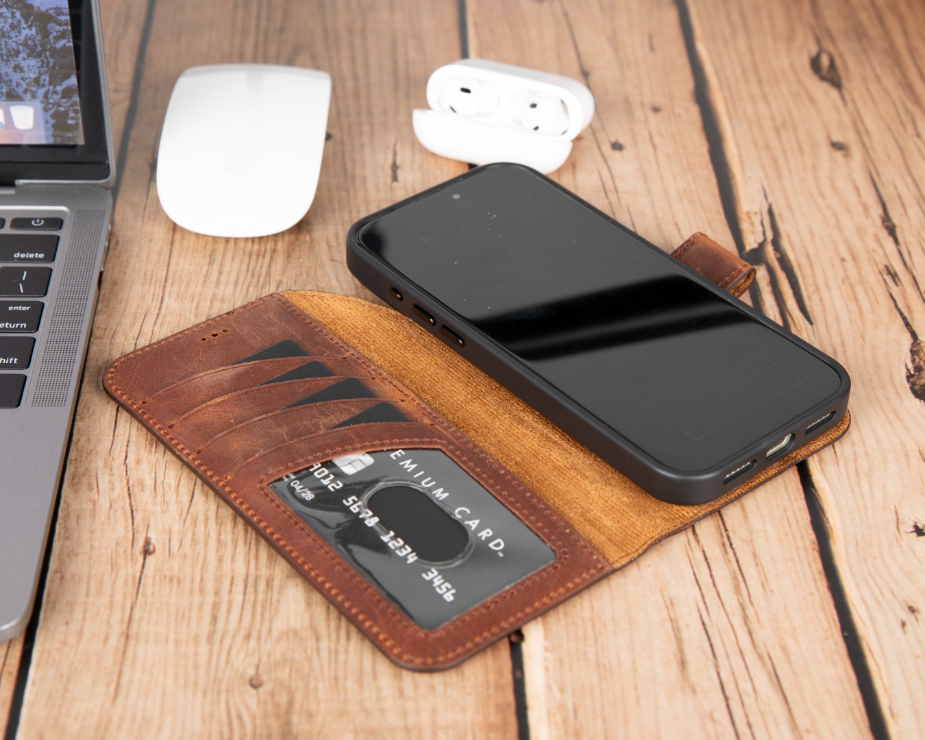 Husa piele naturala 2 in 1, cu MagSafe, tip portofel + back cover, iPhone 17 Pro - Bouletta Magic Wallet, Antique brown