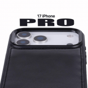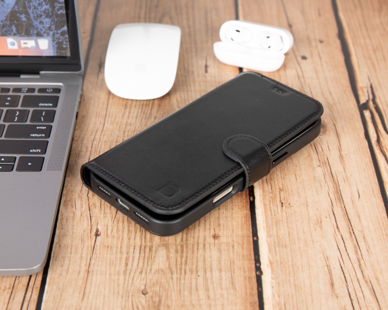 Husa piele naturala 2 in 1, cu MagSafe, tip portofel + back cover, iPhone 17 Pro - Bouletta Magic Wallet, Rustic black