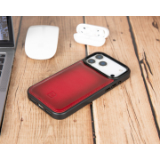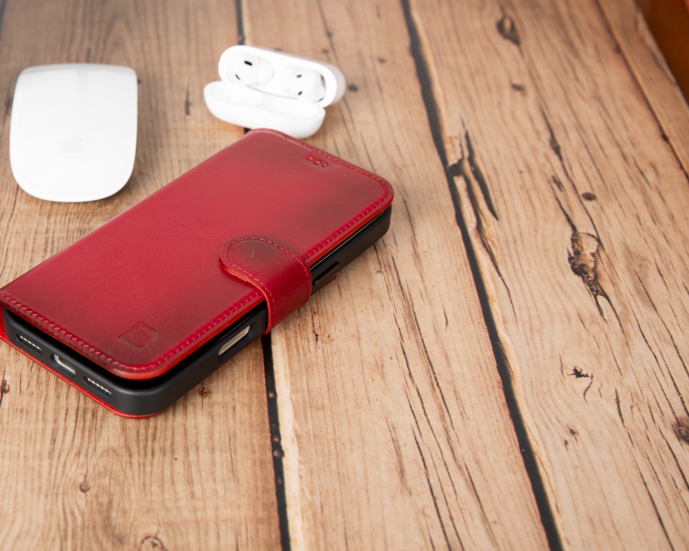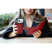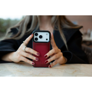 Husa piele naturala 2 in 1, cu MagSafe, tip portofel + back cover, iPhone 17 Pro - Bouletta Magic Wallet, Burnished red