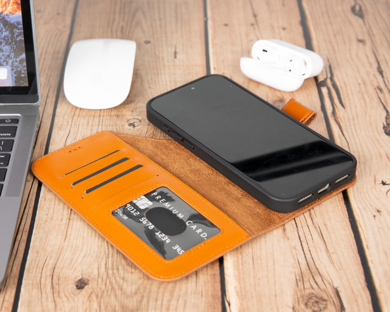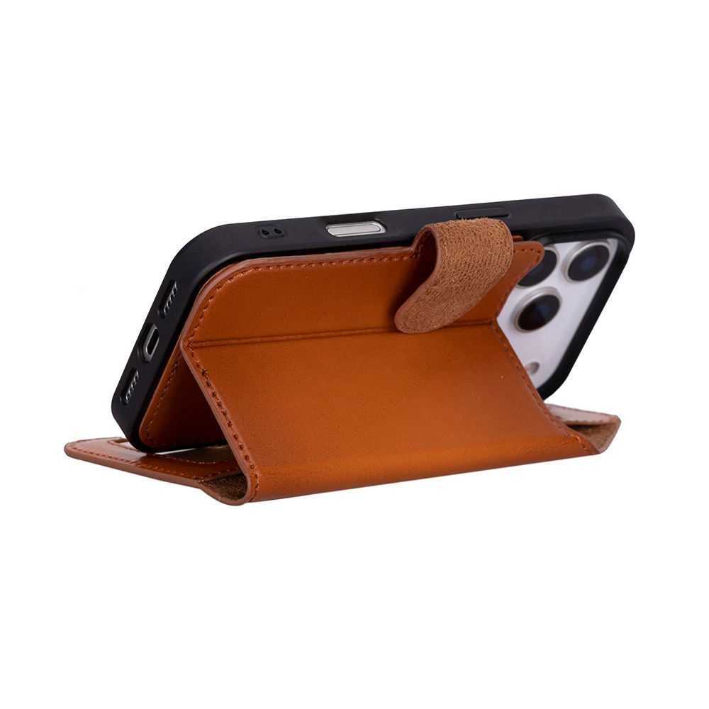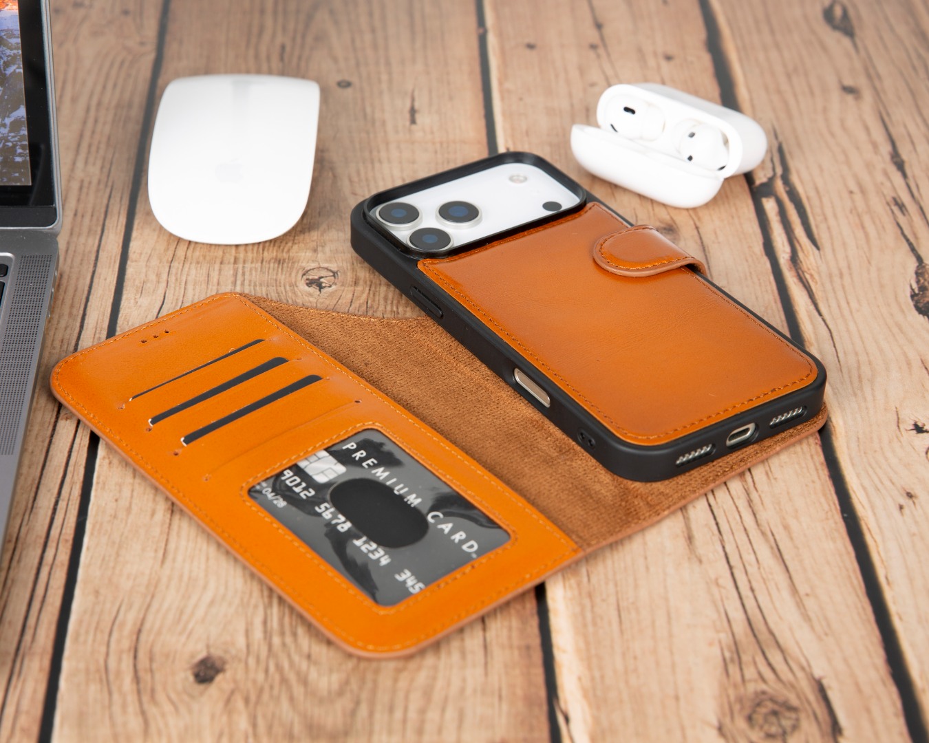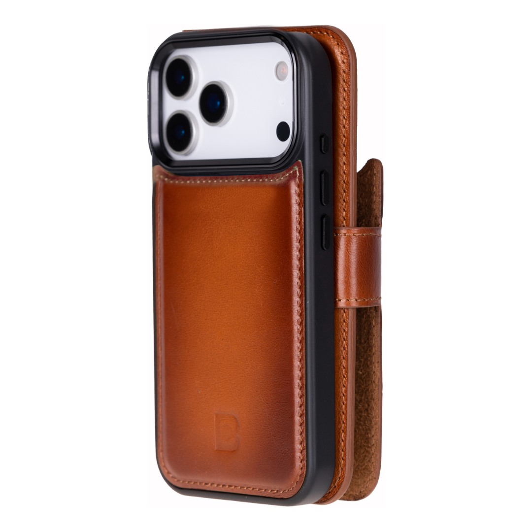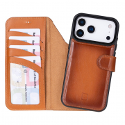 Husa piele naturala 2 in 1, cu MagSafe, tip portofel + back cover, iPhone 17 Pro Max - Bouletta Magic Wallet, Burnished tan