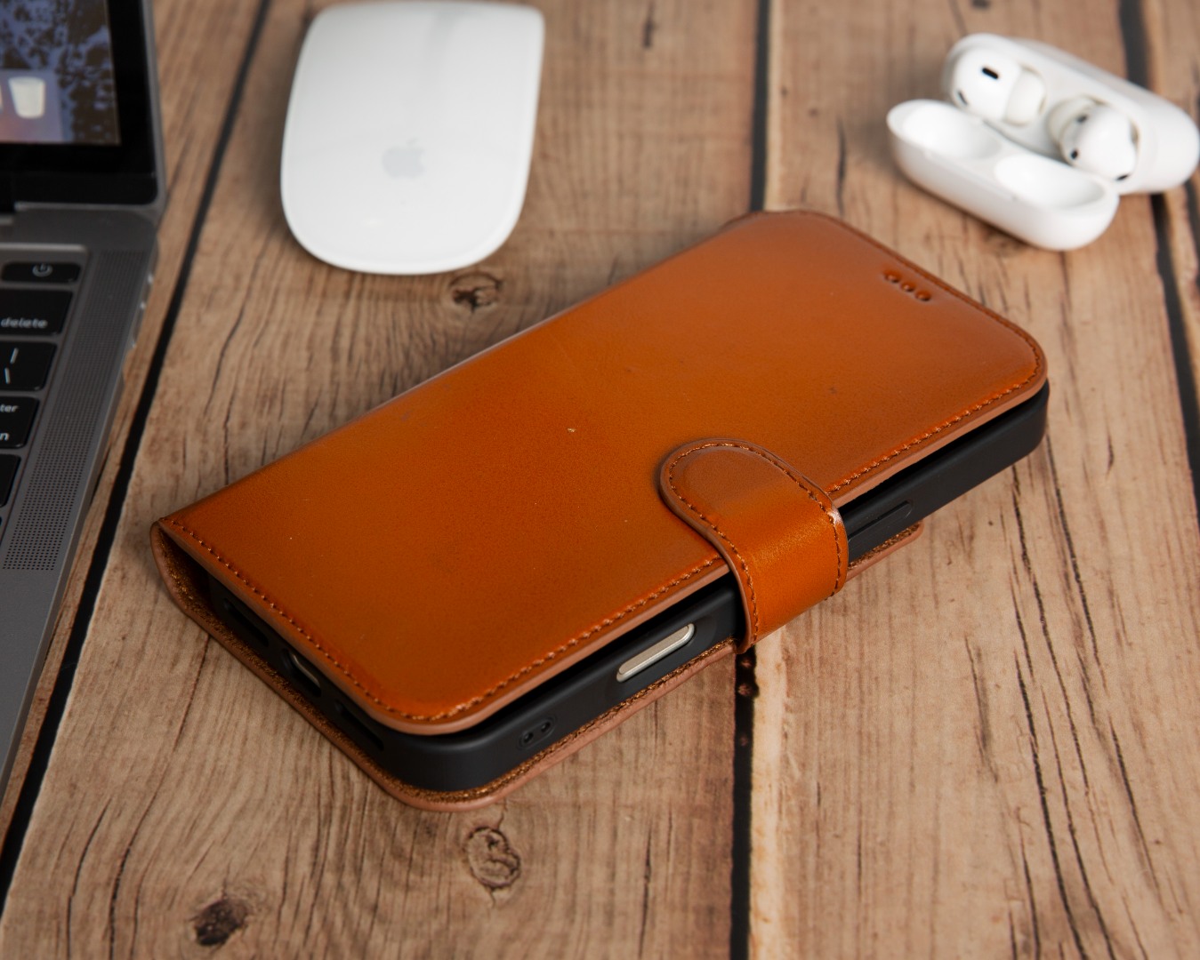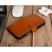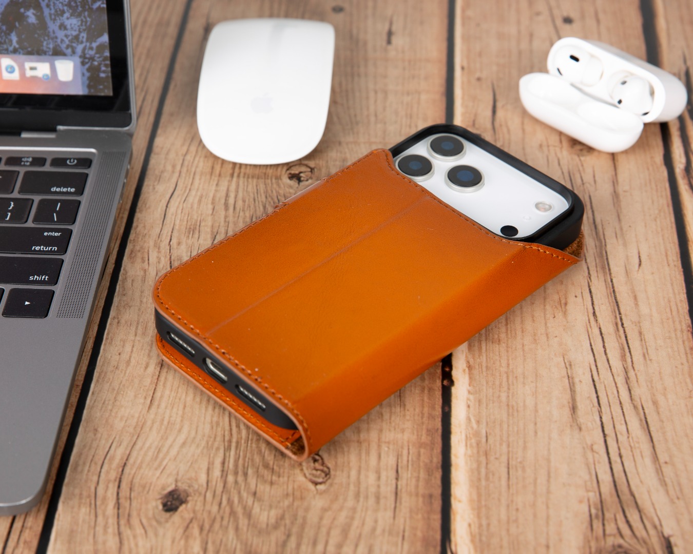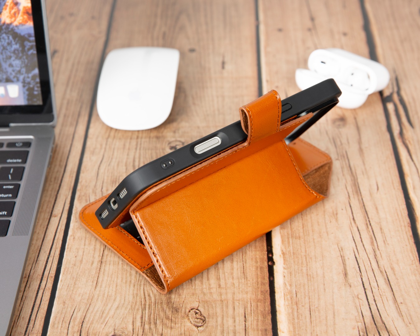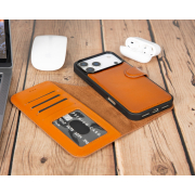 Husa piele naturala 2 in 1, cu MagSafe, tip portofel + back cover, iPhone 17 Pro Max - Bouletta Magic Wallet, Burnished tan