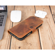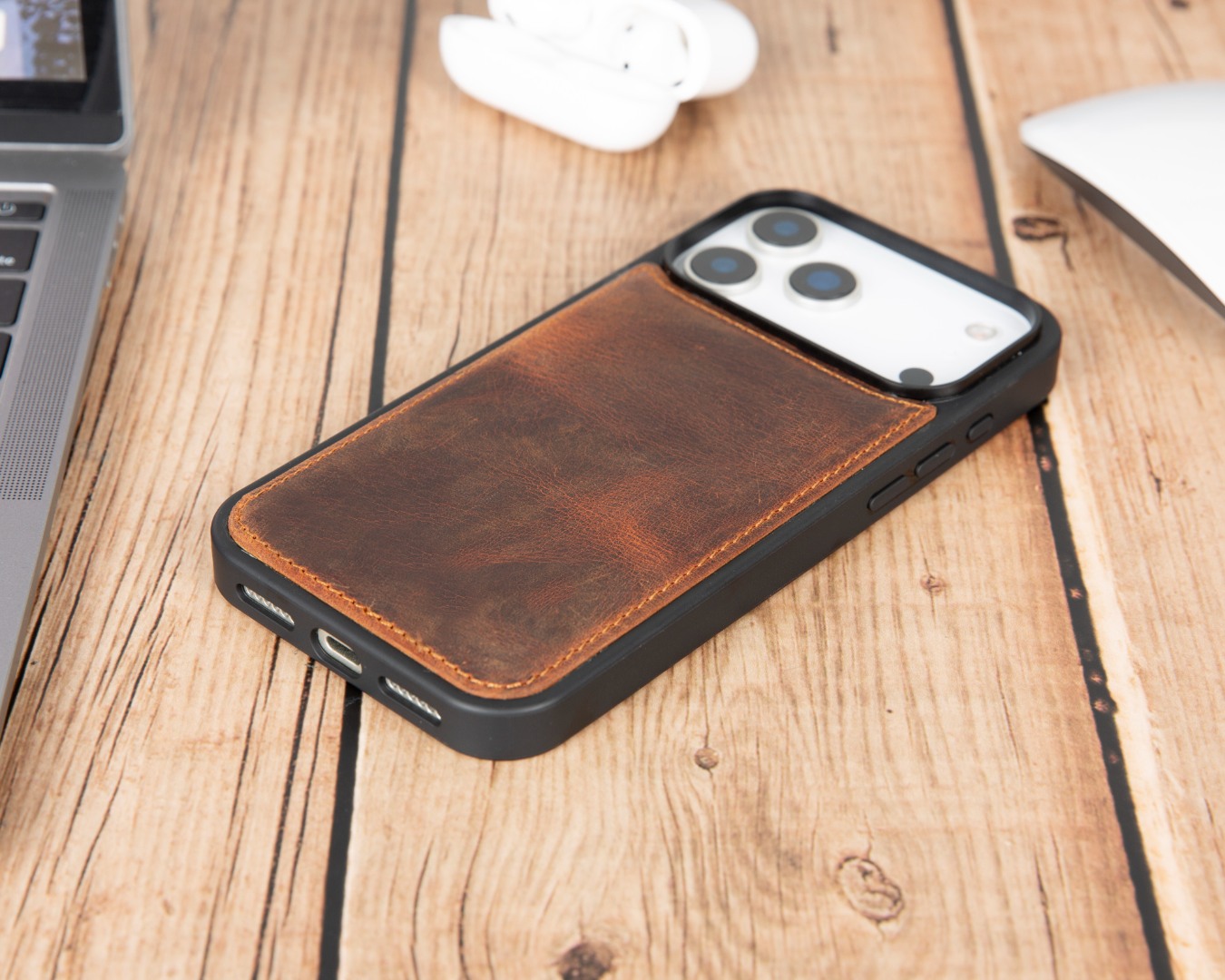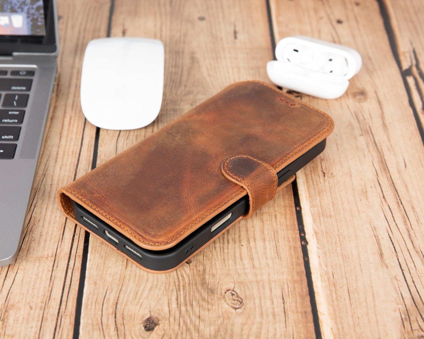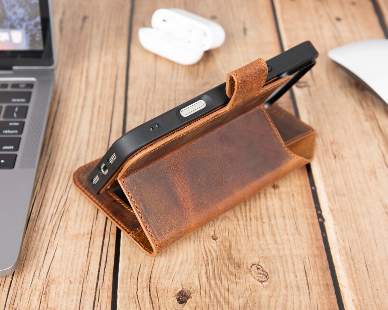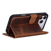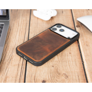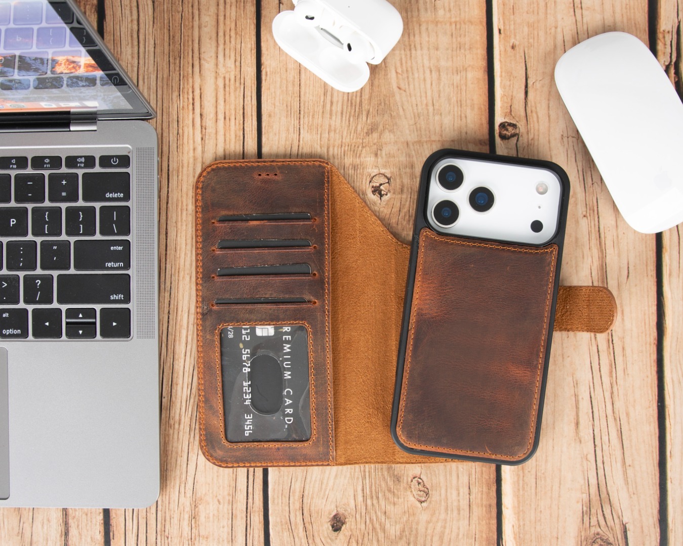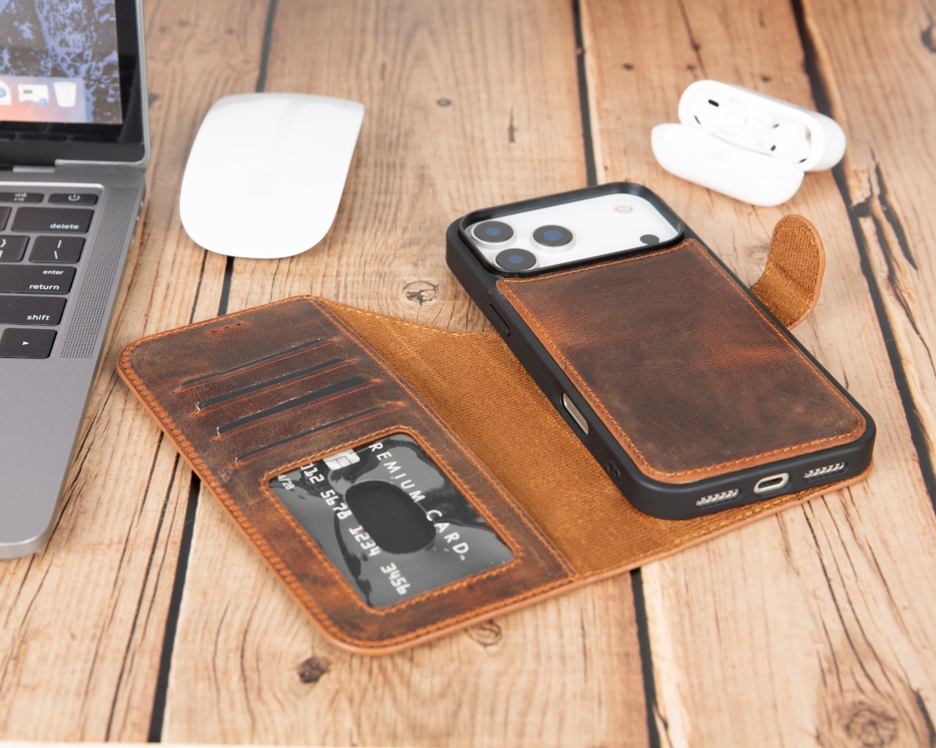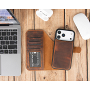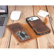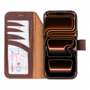 Husa piele naturala 2 in 1, cu MagSafe, tip portofel + back cover, iPhone 17 Pro Max - Bouletta Magic Wallet, Antique brown