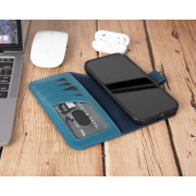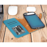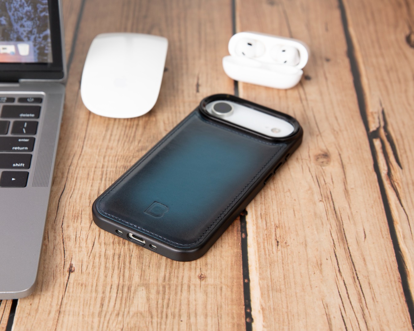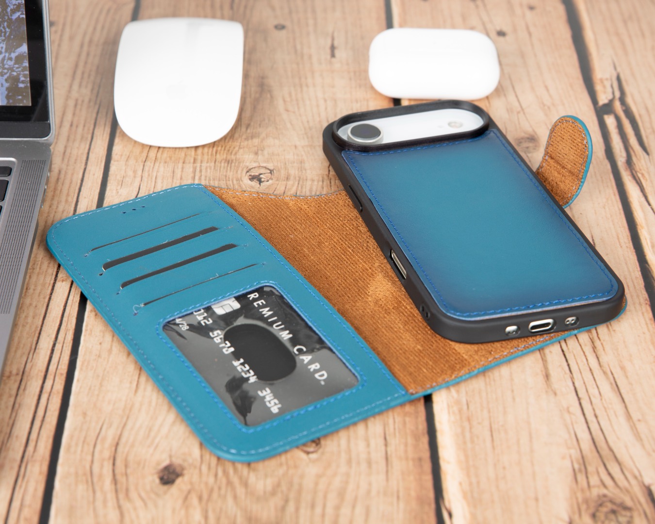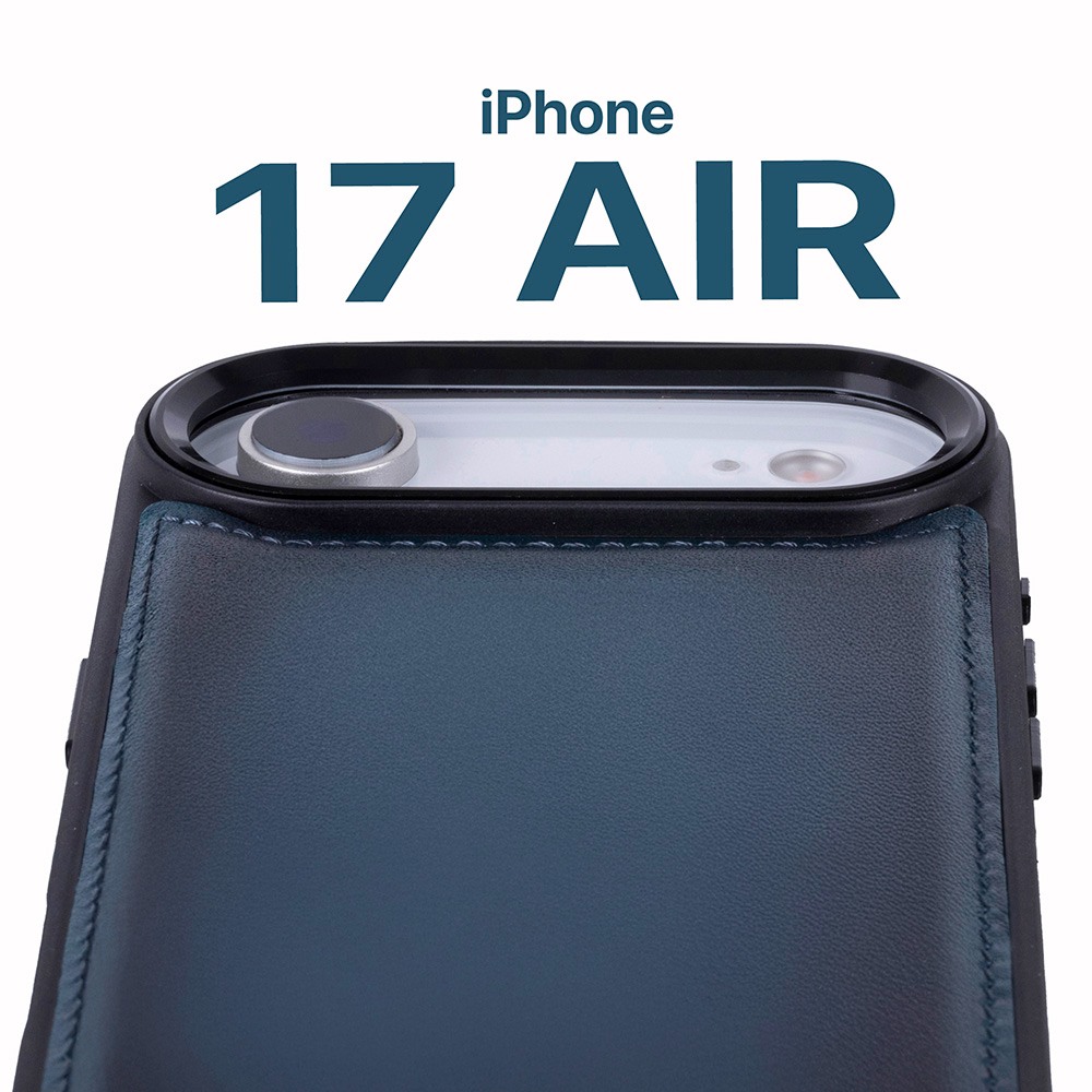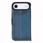 Husa piele naturala 2 in 1, cu MagSafe, tip portofel + back cover, iPhone Air - Bouletta Magic Wallet, Burnished blue