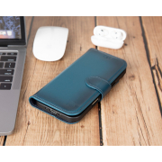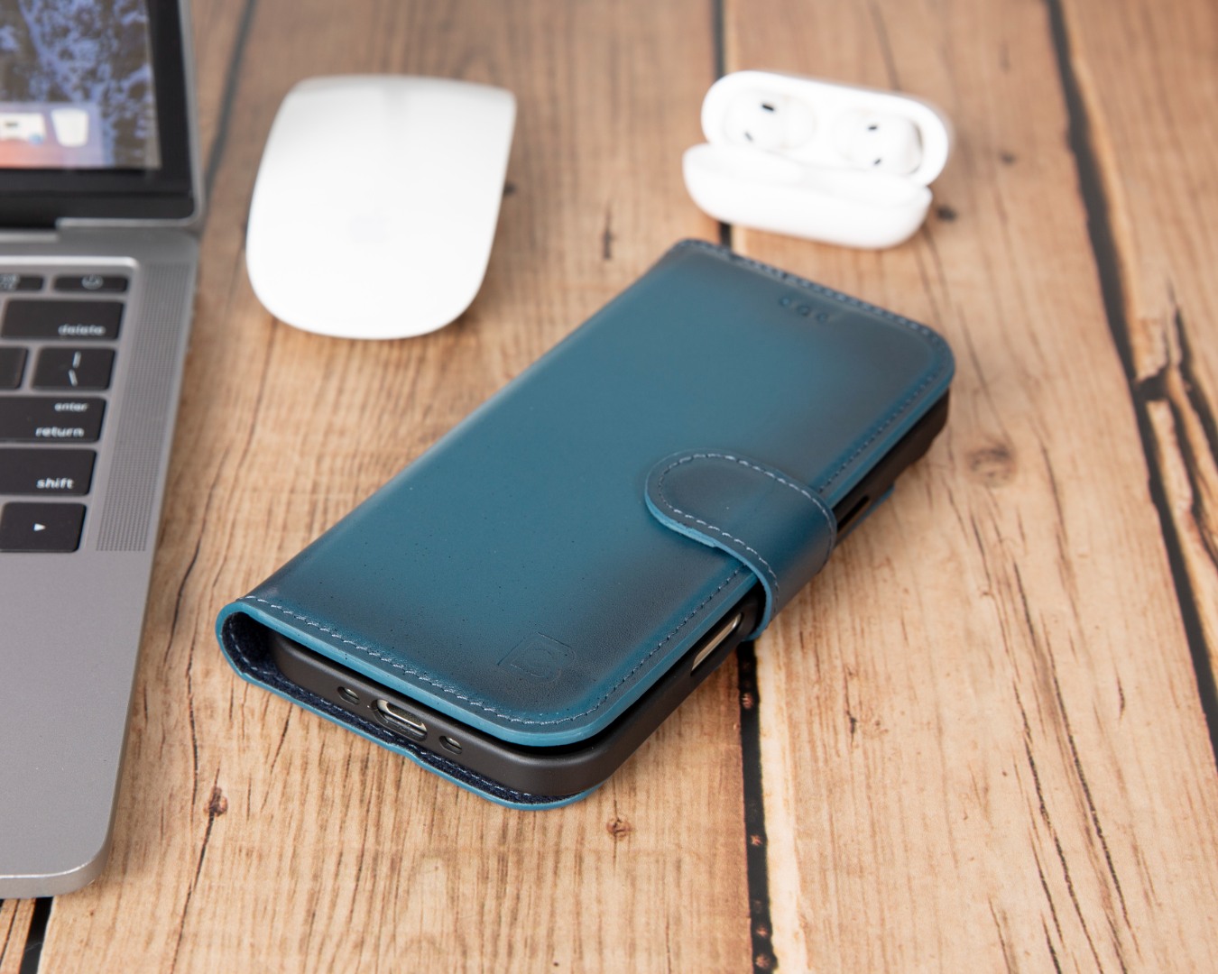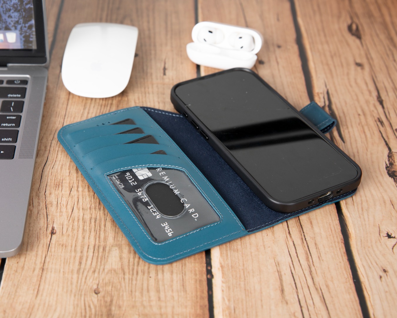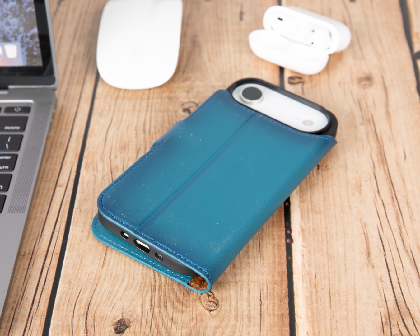 Husa piele naturala 2 in 1, cu MagSafe, tip portofel + back cover, iPhone Air - Bouletta Magic Wallet, Burnished blue