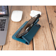 - Poate fi utilizata si ca portofel avand trei locase pentru carduri si unul pentru bancnote