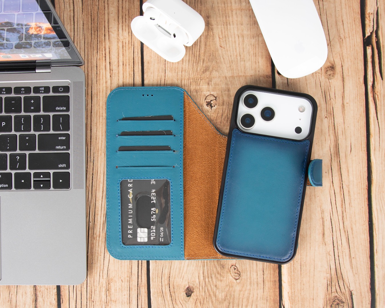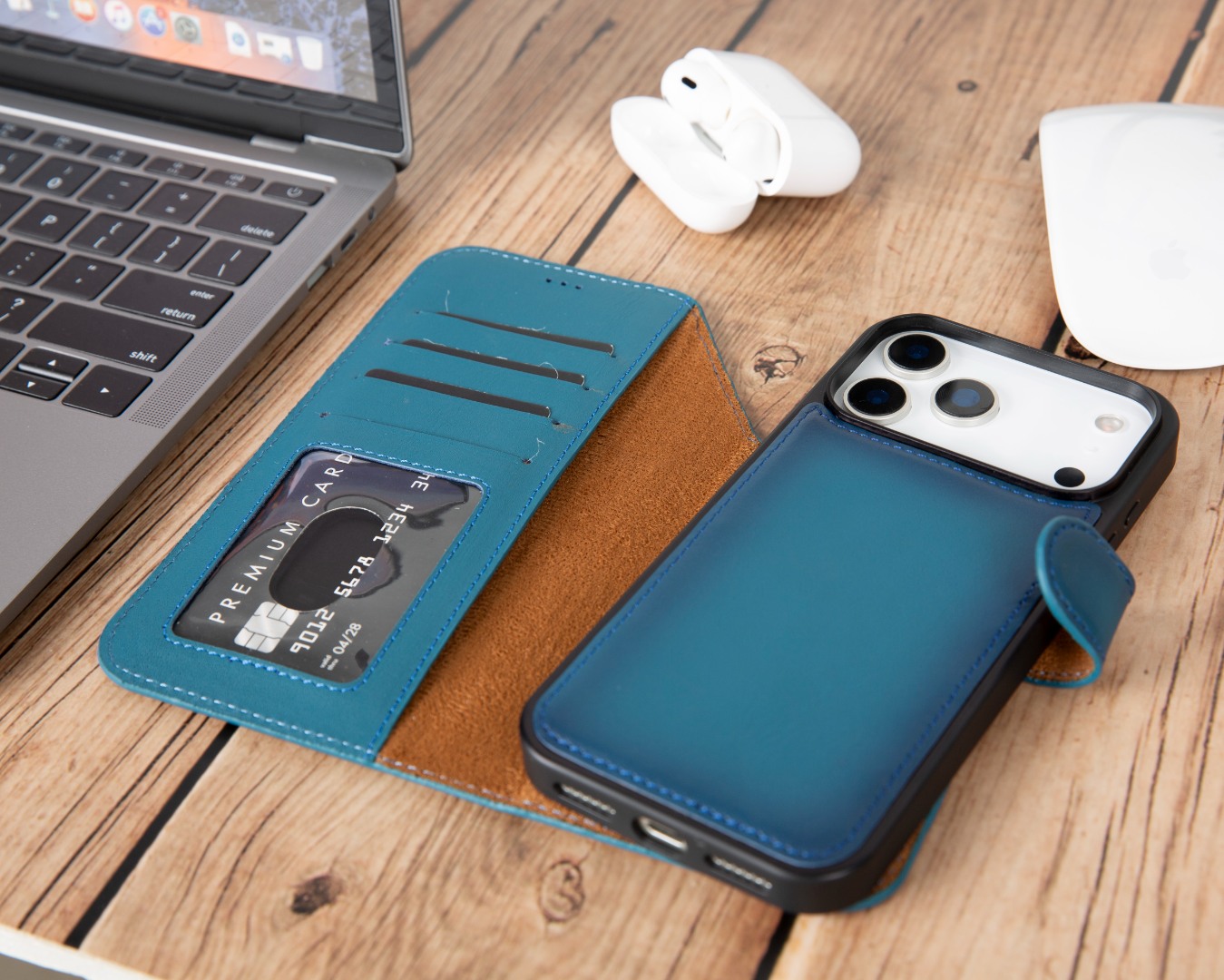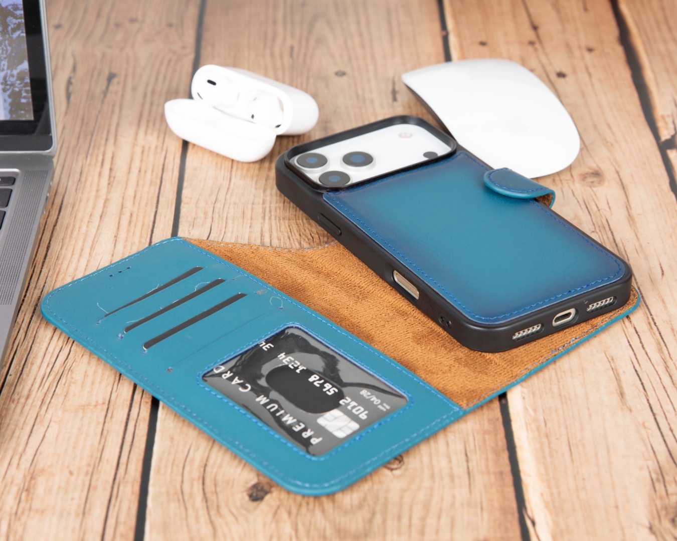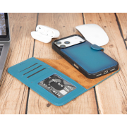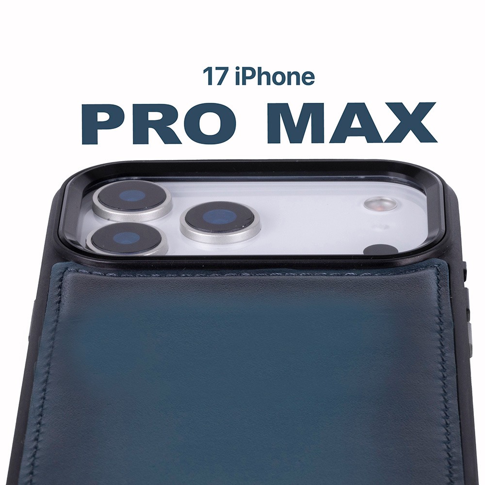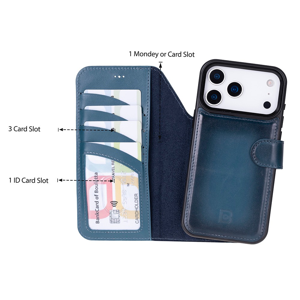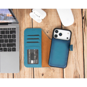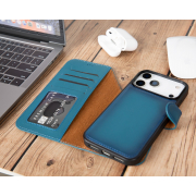 Husa piele naturala 2 in 1, cu MagSafe, tip portofel + back cover, iPhone 17 Pro Max - Bouletta Magic Wallet, Burnished blue