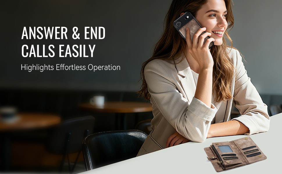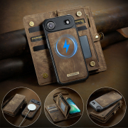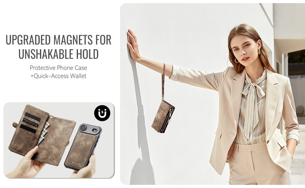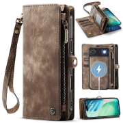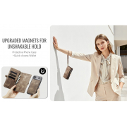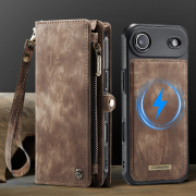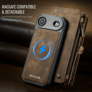 Husa piele portofel 2 in 1, multifunctionala, back cover detasabil, curelusa mana, compatibil MagSafe, inchidere sigura magnetica, stand, buzunare carduri, bani, casti, chei, iPhone Air - CaseME, Maro