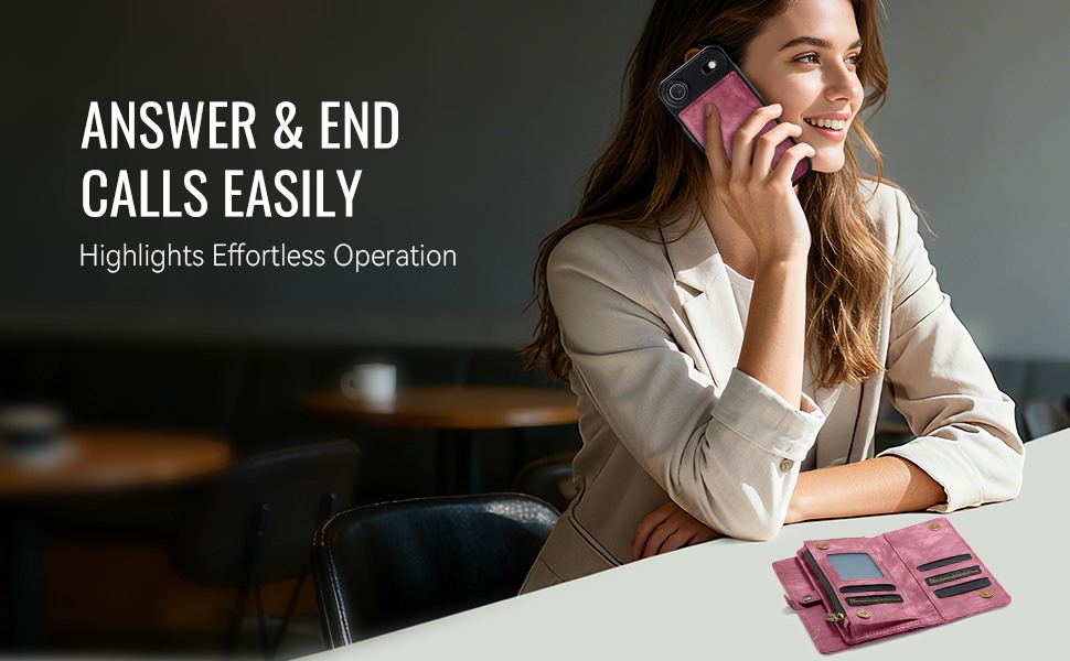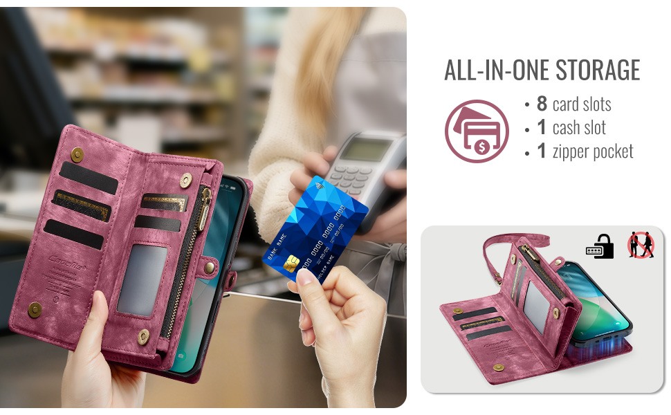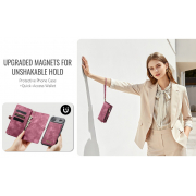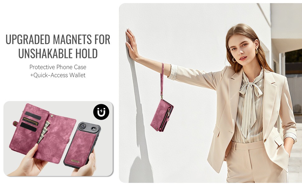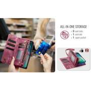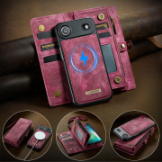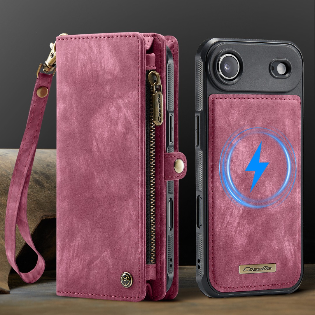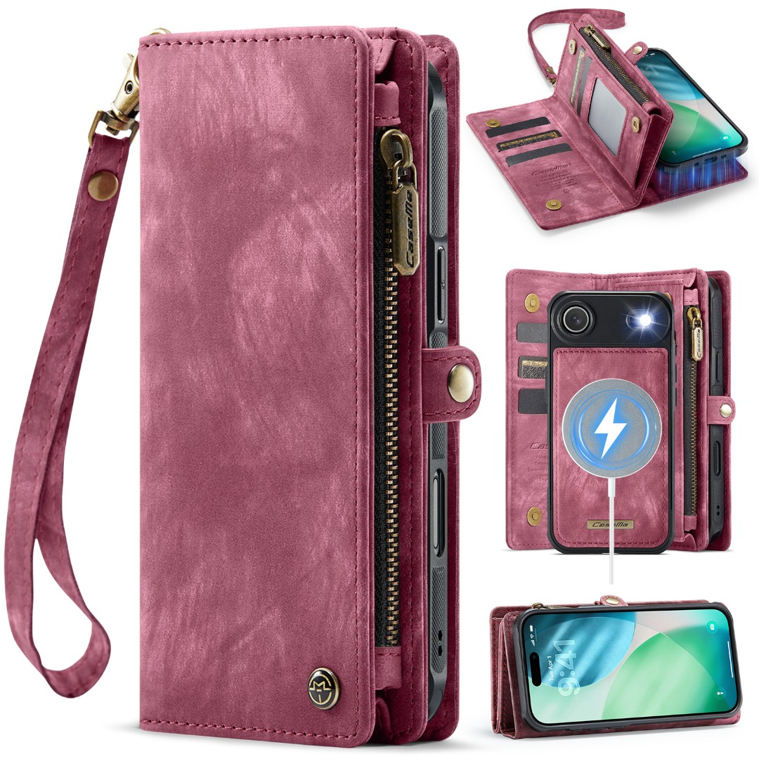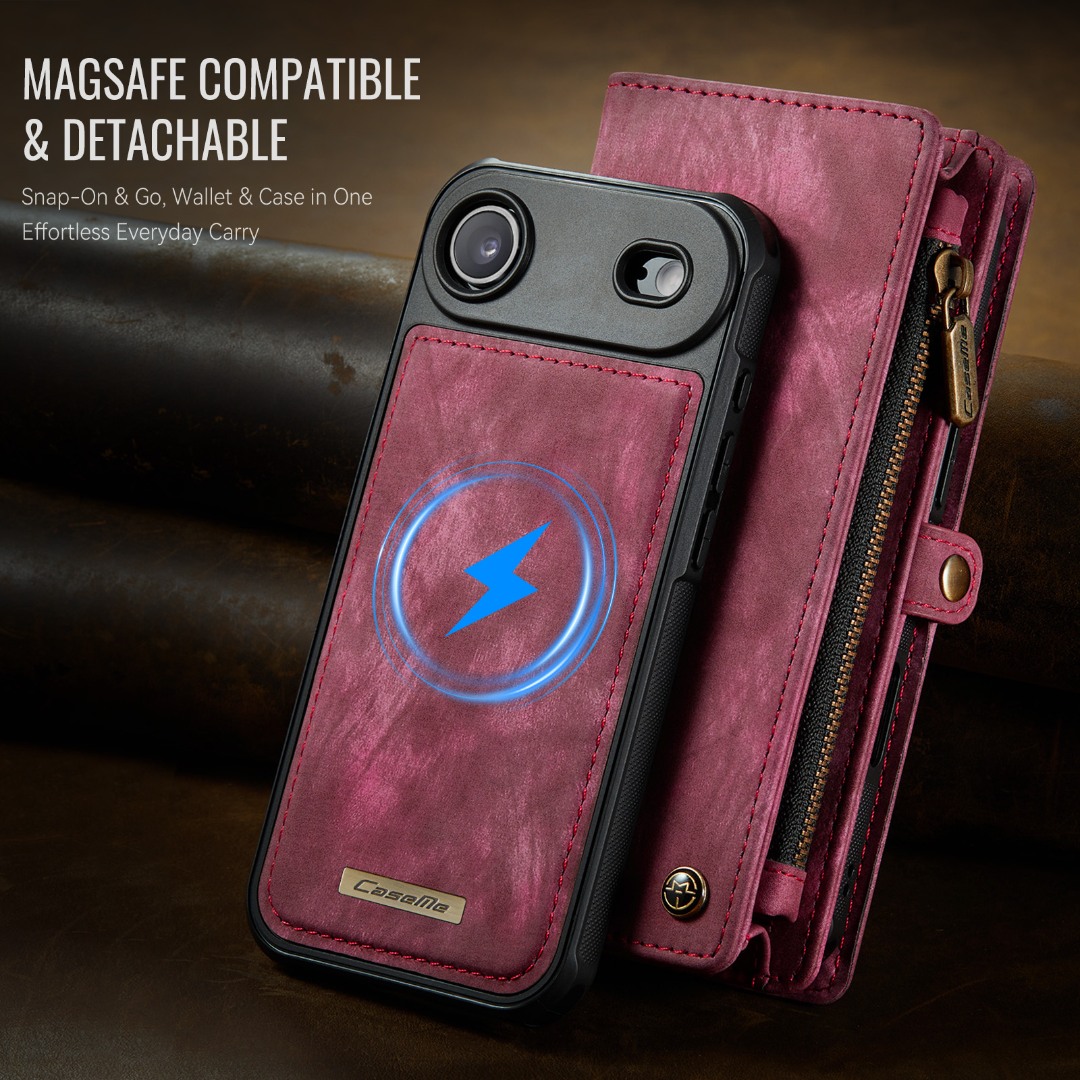 Husa piele portofel 2 in 1, multifunctionala, back cover detasabil, curelusa mana, compatibil MagSafe, inchidere sigura magnetica, stand, buzunare carduri, bani, casti, chei, iPhone Air - CaseME, Rosu