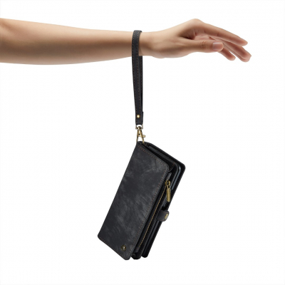 Husa piele portofel, multifunctionala, curelusa mana detasabila, inchidere sigura cu capsa magnetica, stand, buzunar S-pen, buzunare carduri, bani, casti, chei, Samsung Galaxy Z Fold7 - CaseME, Negru
