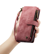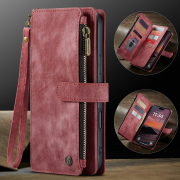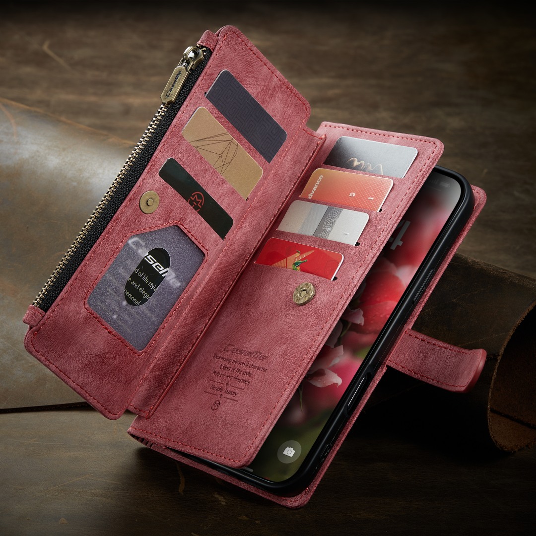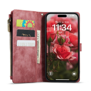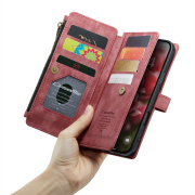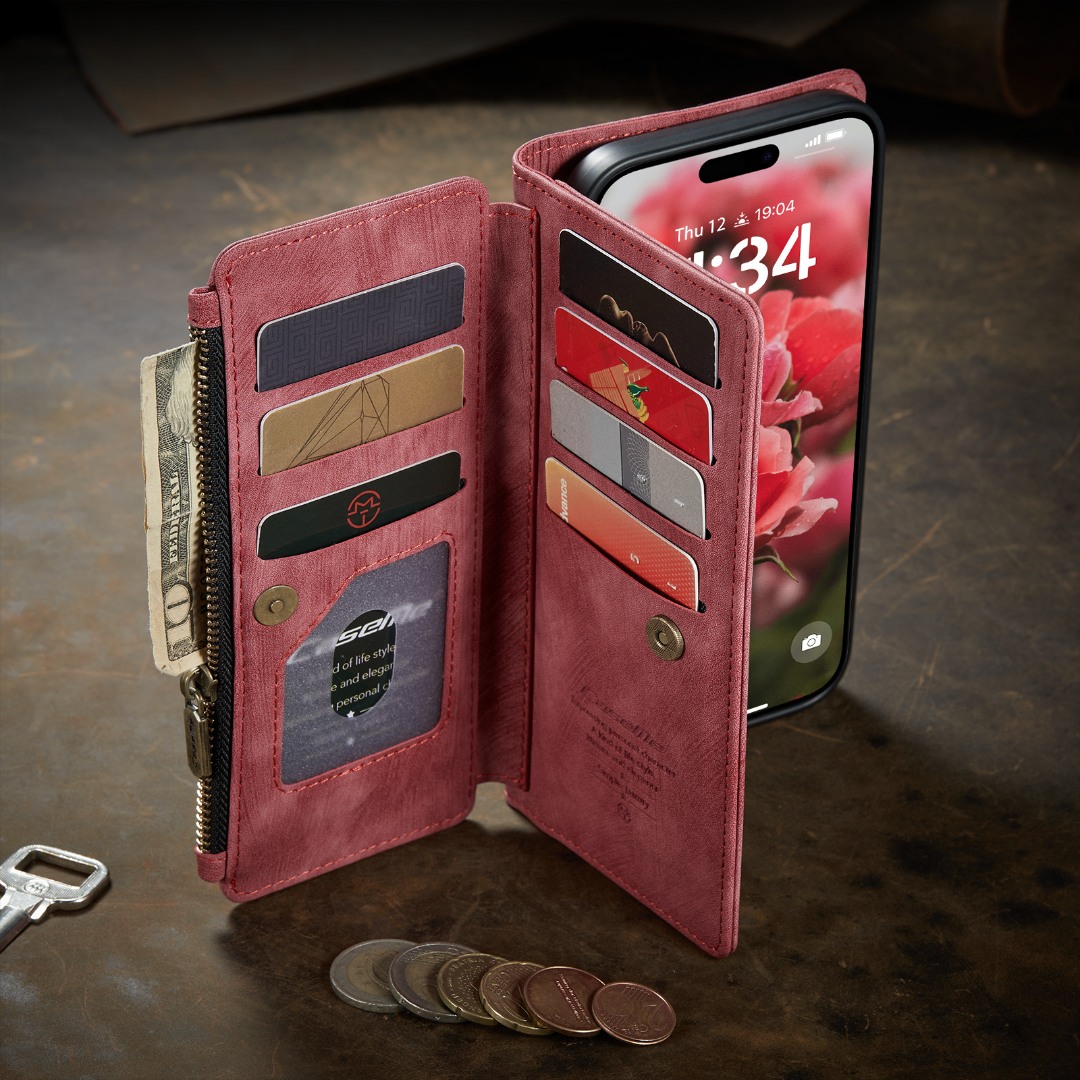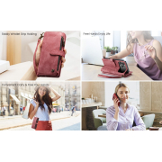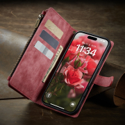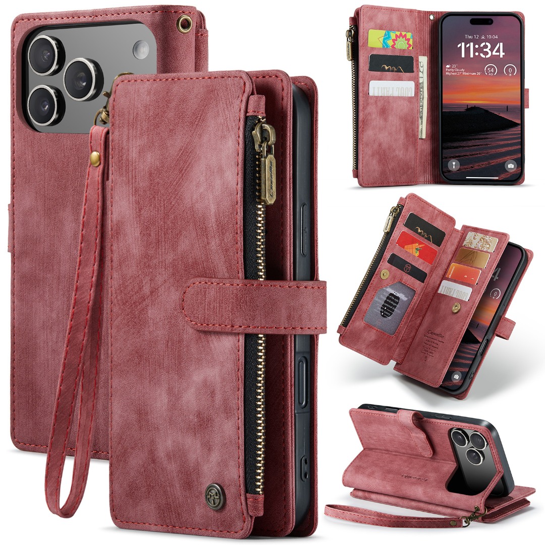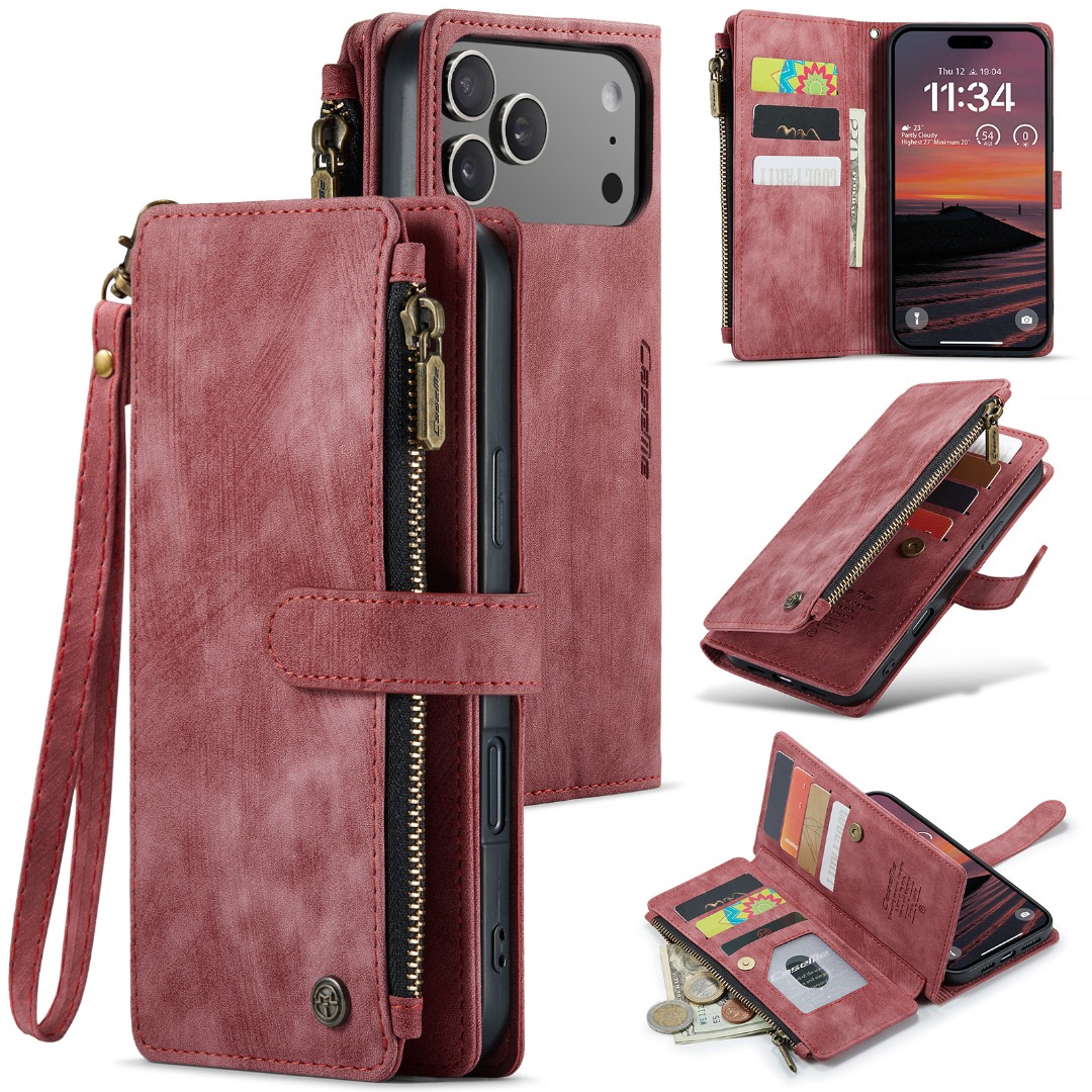 Husa piele portofel, multifunctionala, curelusa mana detasabila, inchidere sigura magnetica, stand, buzunare carduri, bani, casti, chei, iPhone 17 Pro Max - CaseME, Rosu