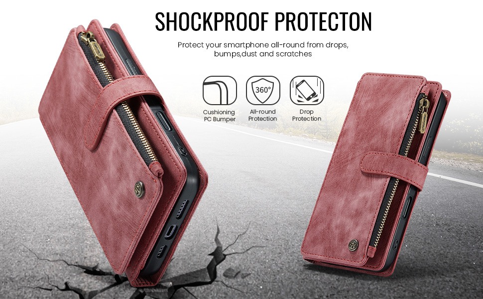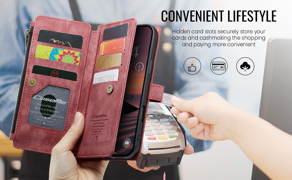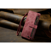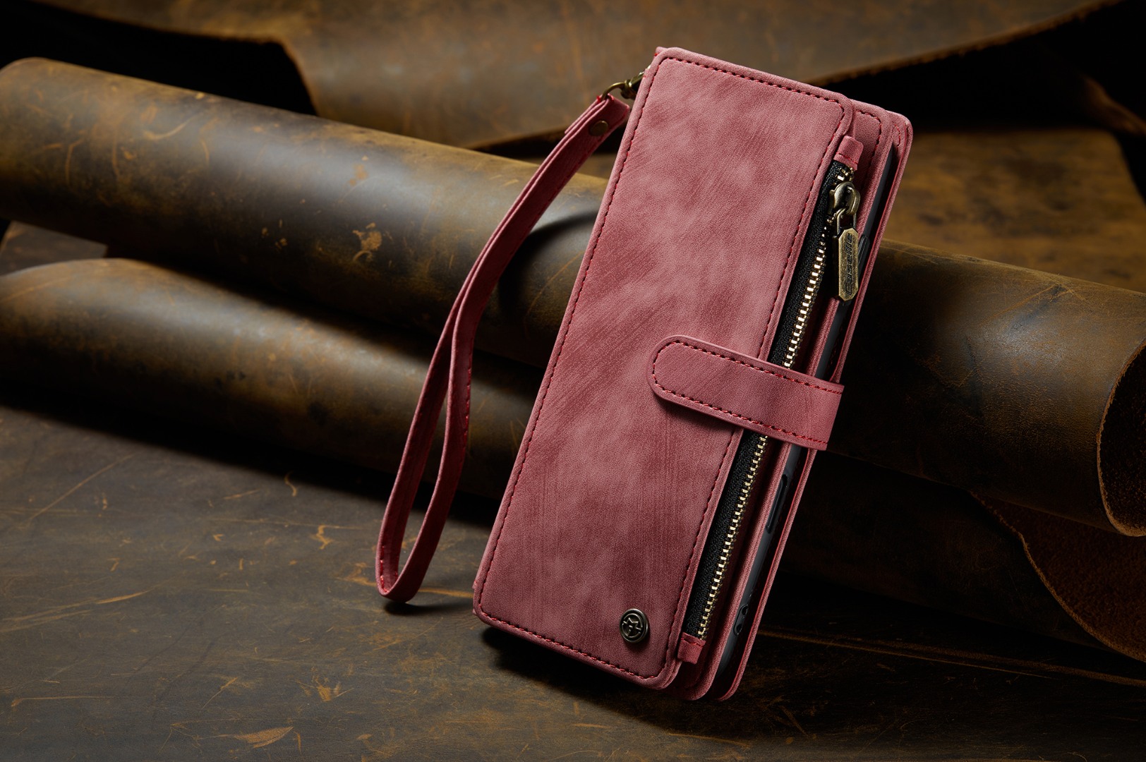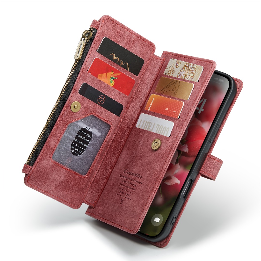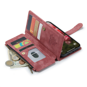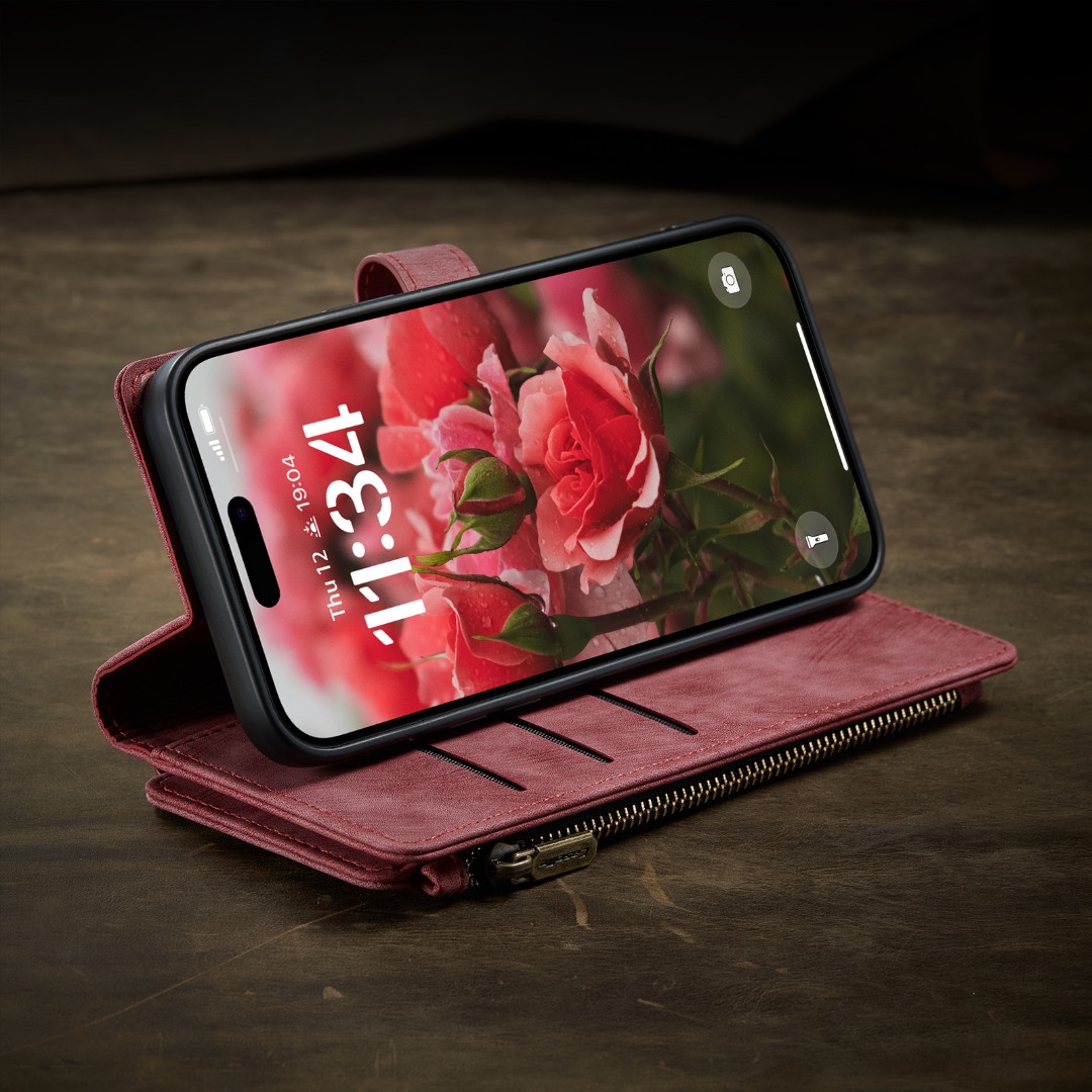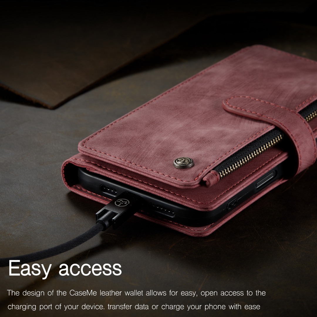 Husa piele portofel, multifunctionala, curelusa mana detasabila, inchidere sigura magnetica, stand, buzunare carduri, bani, casti, chei, iPhone 17 Pro Max - CaseME, Rosu