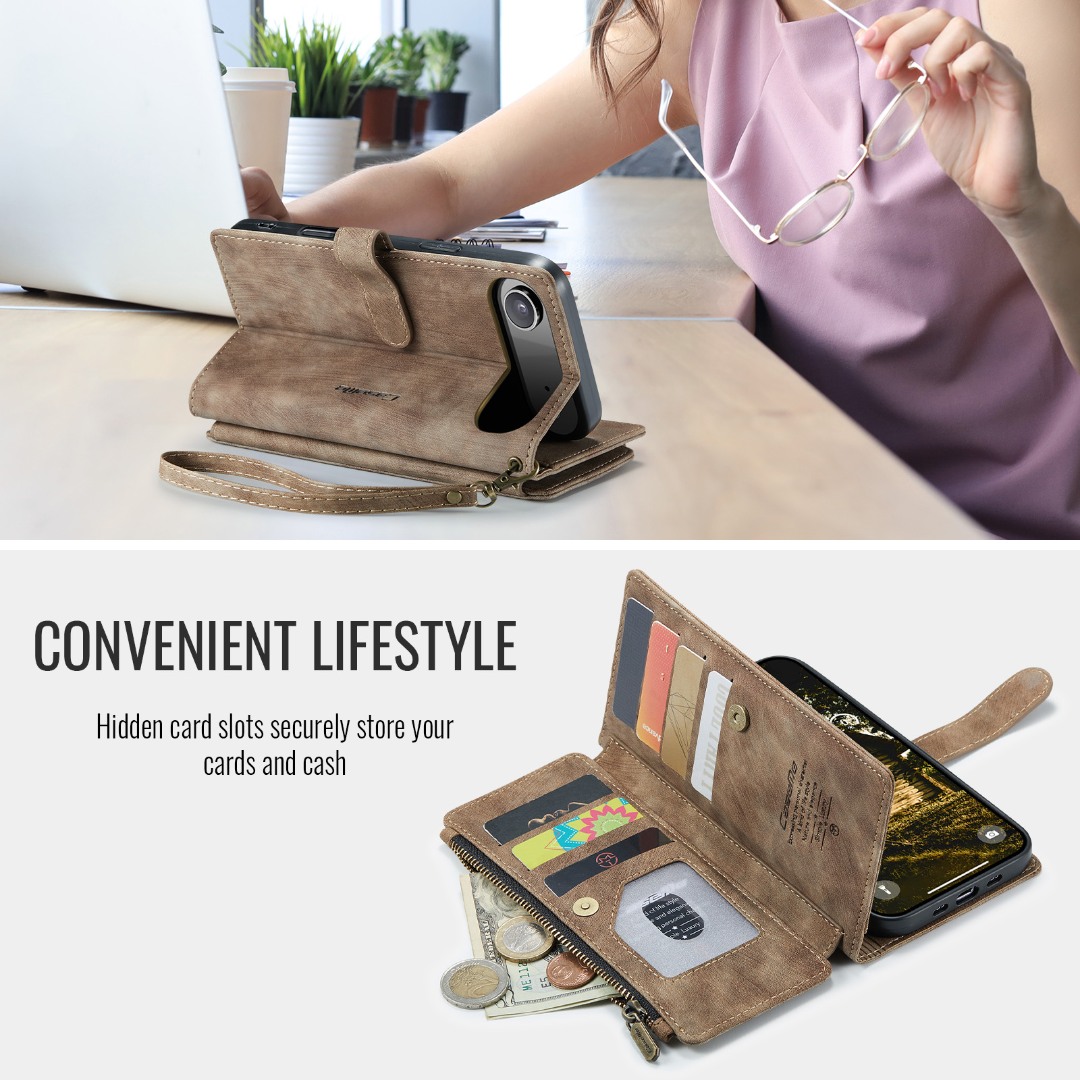 Husa piele portofel, multifunctionala, curelusa mana detasabila, inchidere sigura magnetica, stand, buzunare carduri, bani, casti, chei, iPhone Air - CaseME, Maro