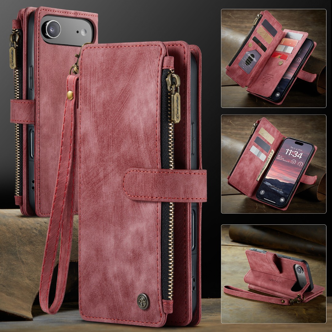 Husa piele portofel, multifunctionala, curelusa mana detasabila, inchidere sigura magnetica, stand, buzunare carduri, bani, casti, chei, iPhone Air - CaseME, Rosu