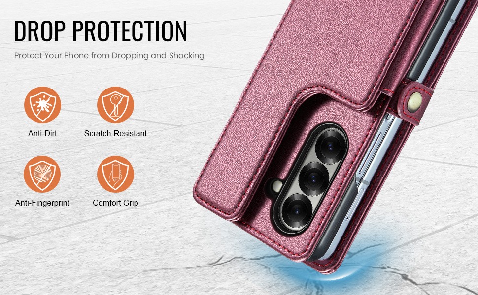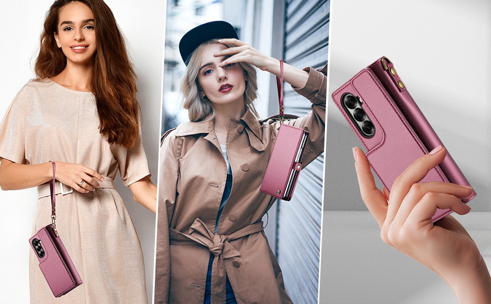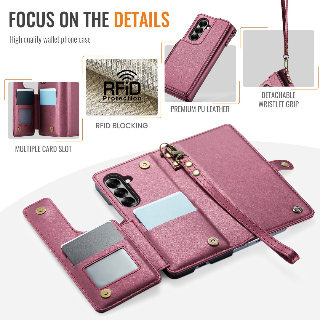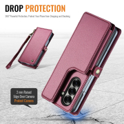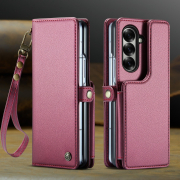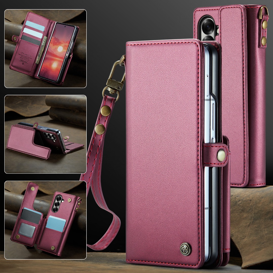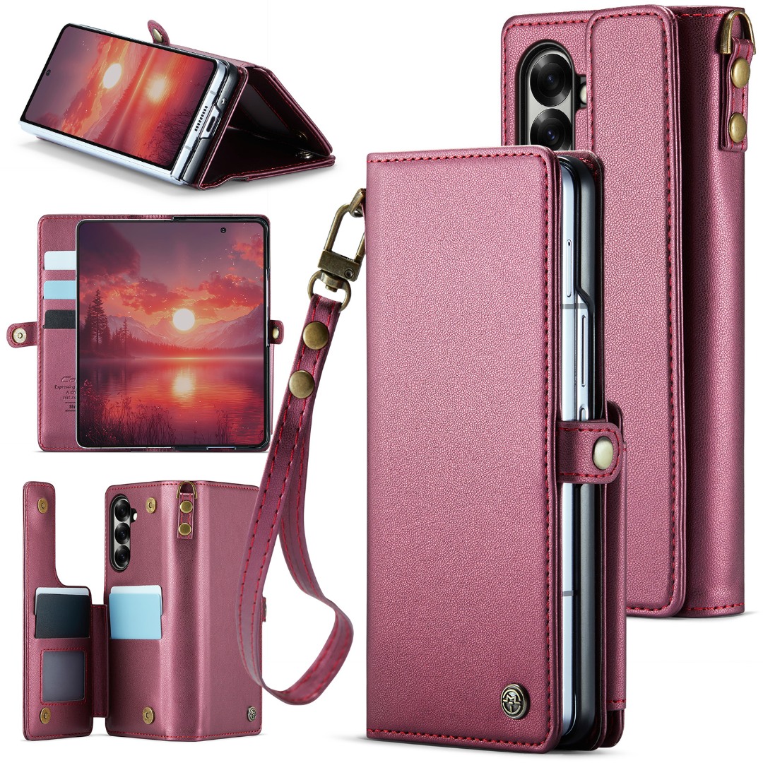 Husa piele textura moale si aderenta in mana, multifunctionala, curelusa mana detasabila, inchidere sigura cu capsa magnetica, stand, buzunar S-pen, Samsung Galaxy Z Fold6, CaseMe, CaseMe, Rosu