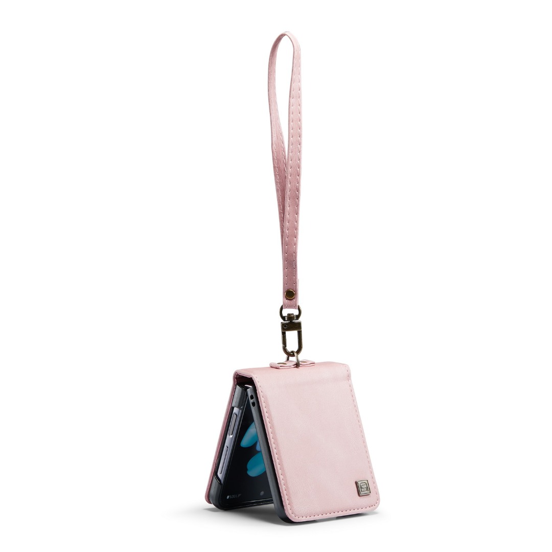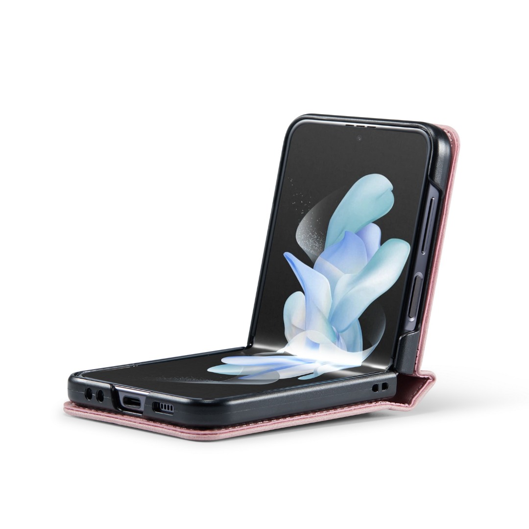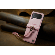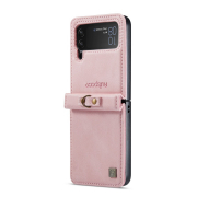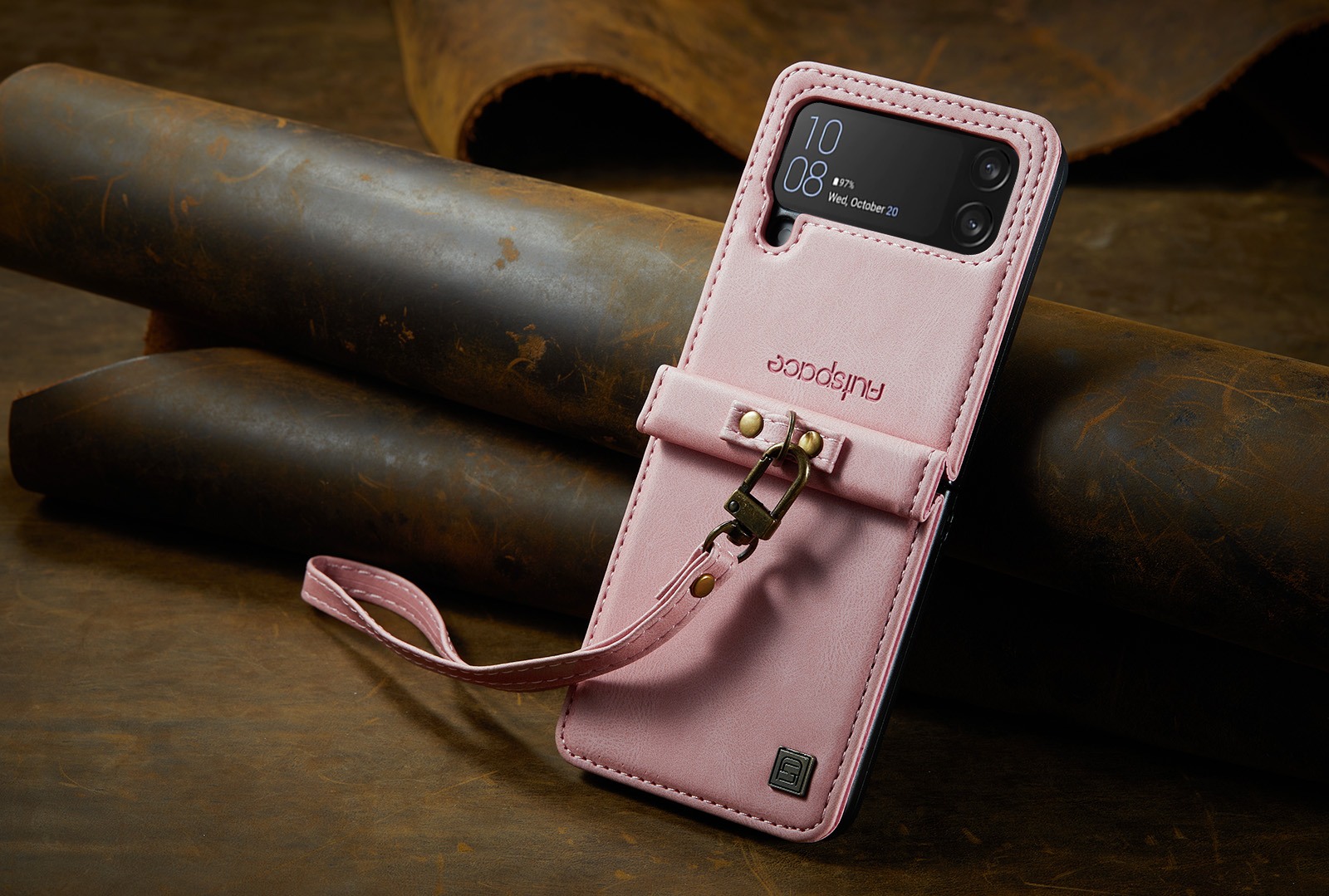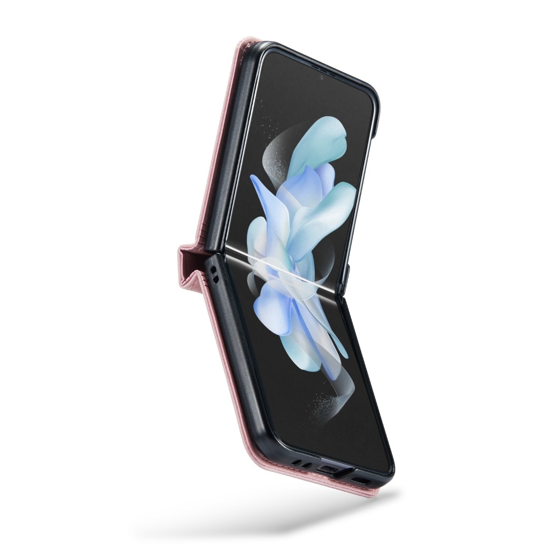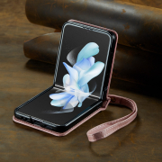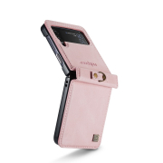 Husa piele textura moale, tip carcasa, protectie completa, curelusa mana detasabila, Samsung Galaxy Z Flip4, CaseMe Retro, Roz