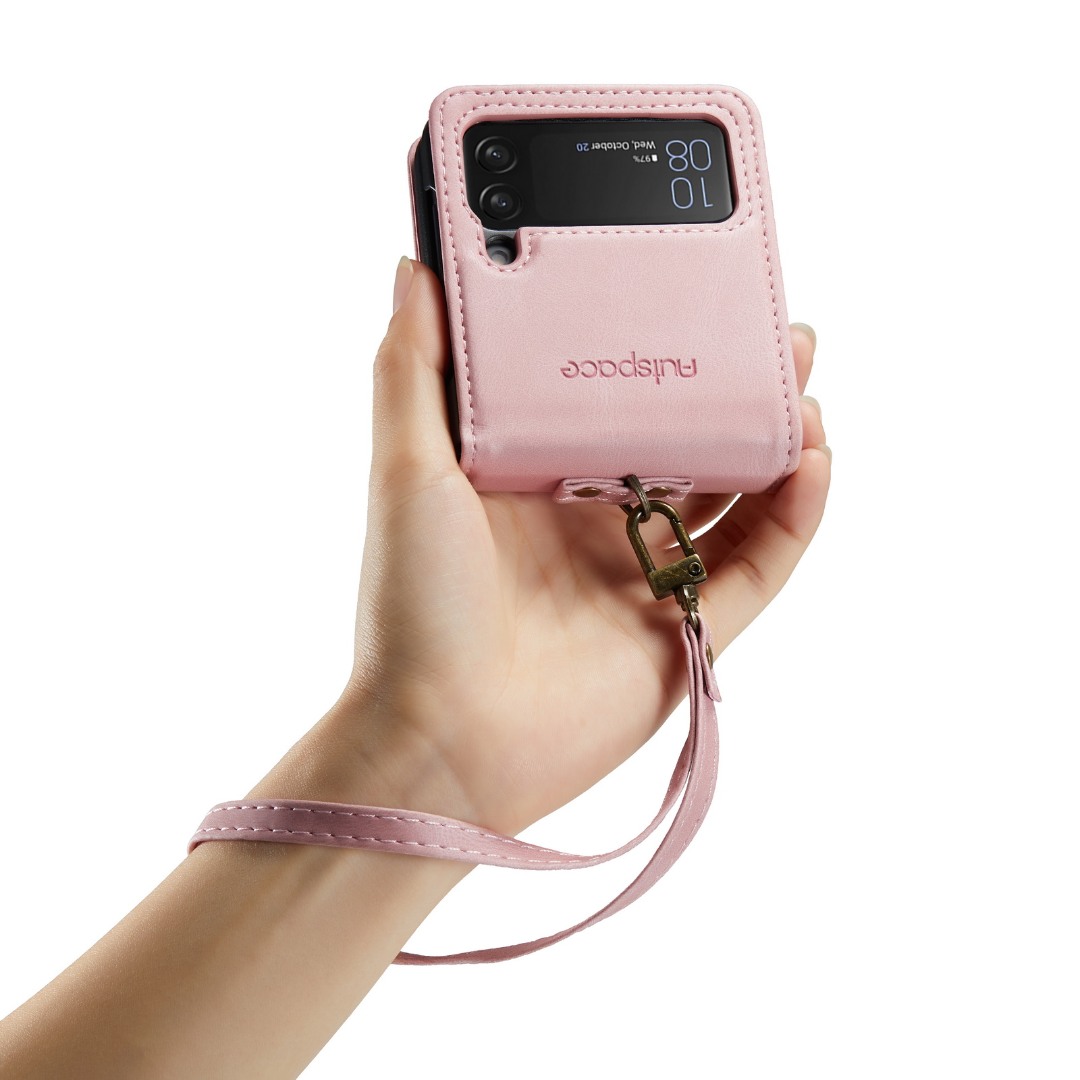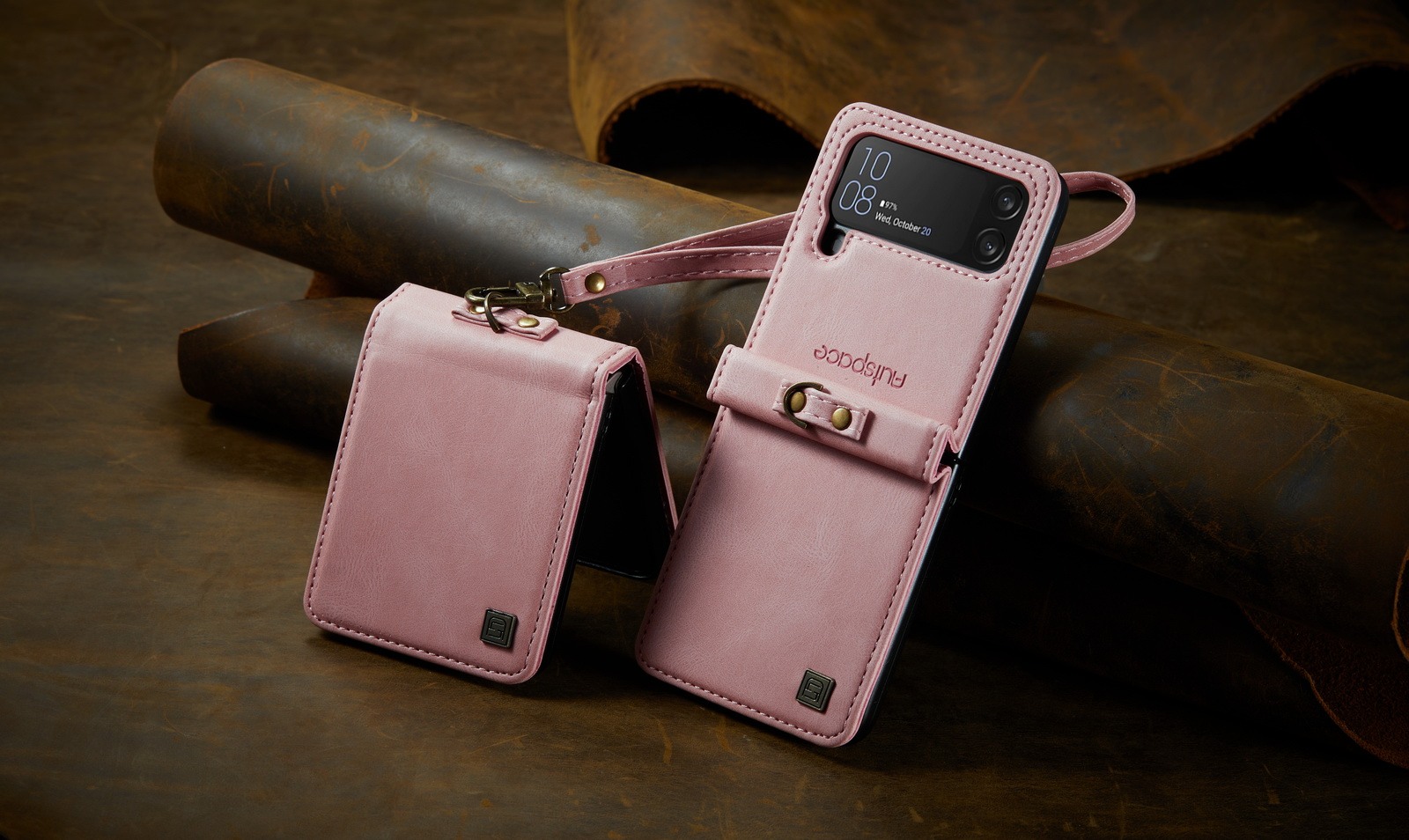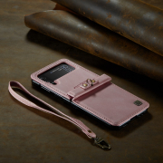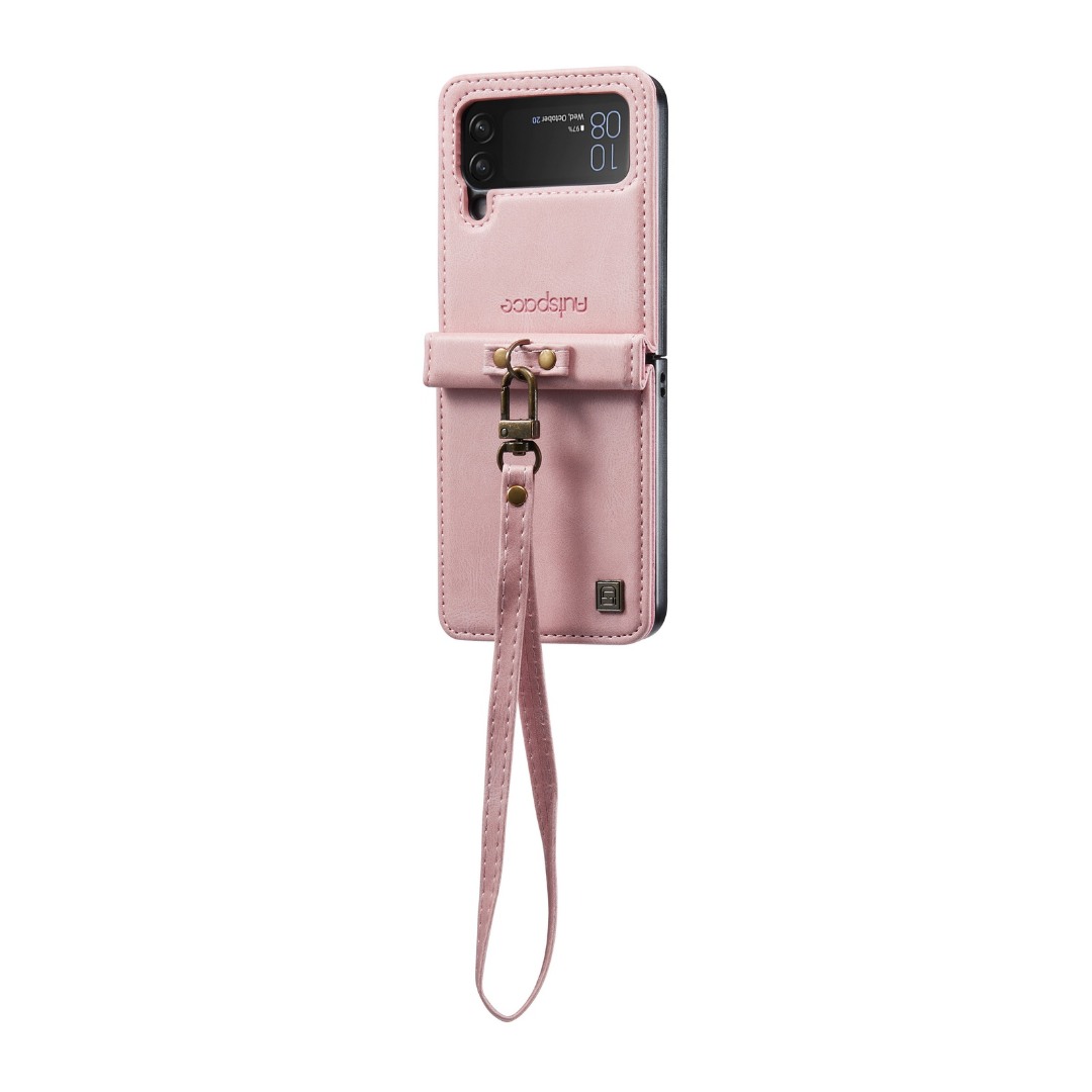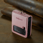 Husa piele textura moale, tip carcasa, protectie completa, curelusa mana detasabila, Samsung Galaxy Z Flip4, CaseMe Retro, Roz