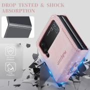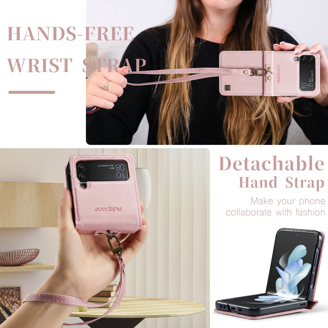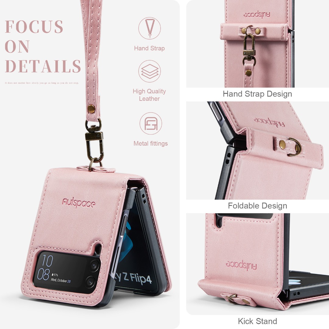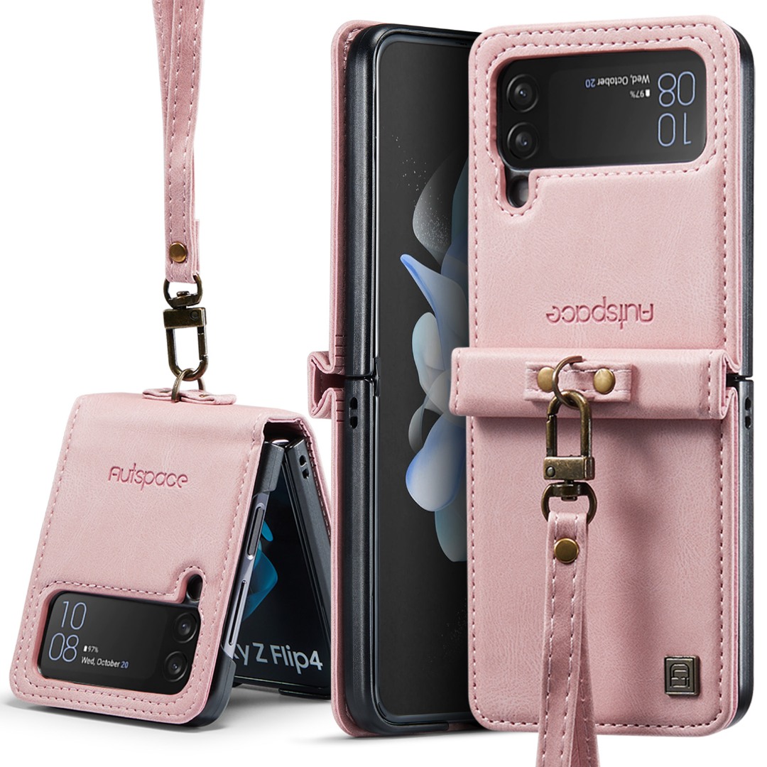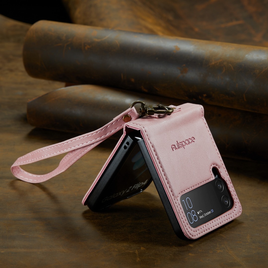 Husa piele textura moale, tip carcasa, protectie completa, curelusa mana detasabila, Samsung Galaxy Z Flip4, CaseMe Retro, Roz
