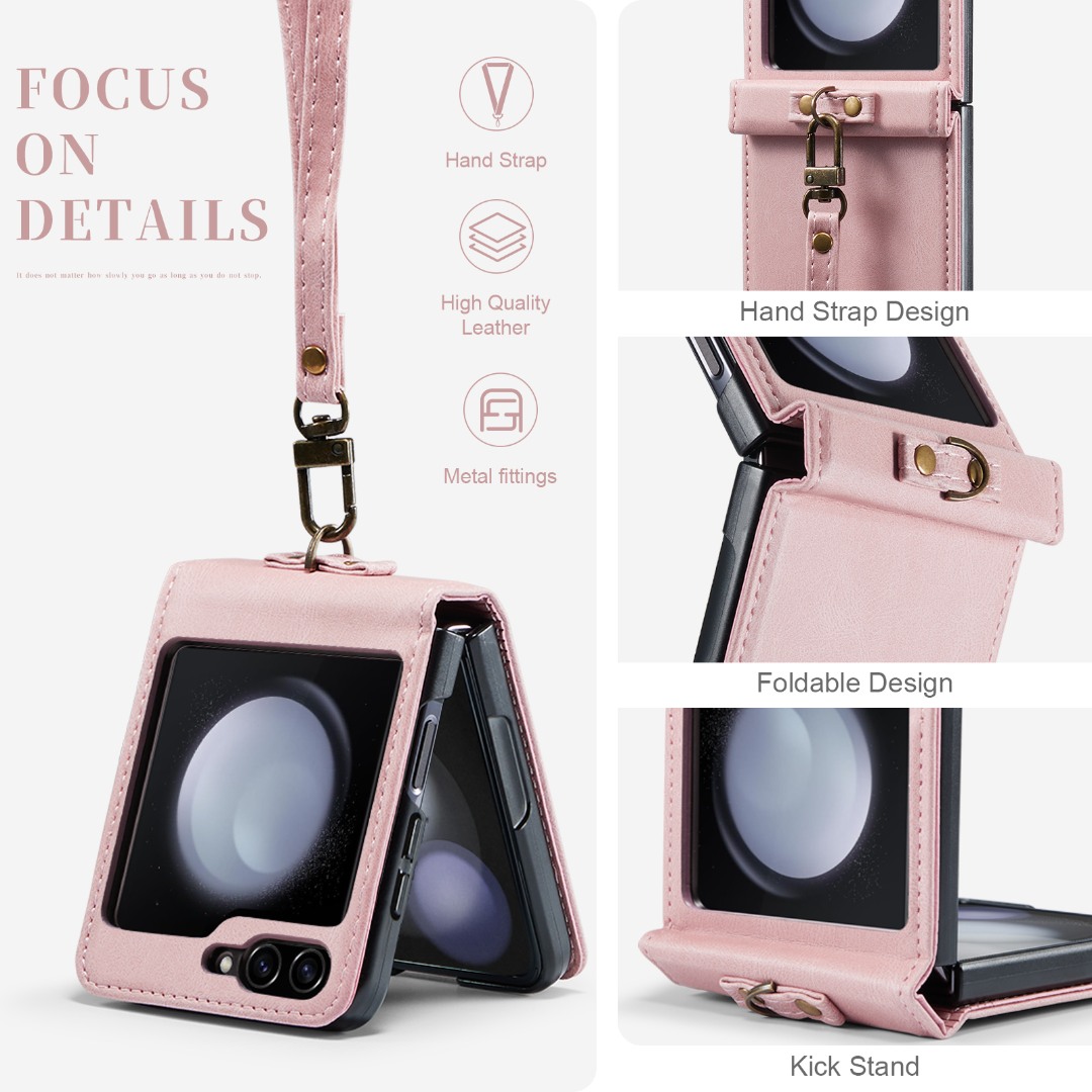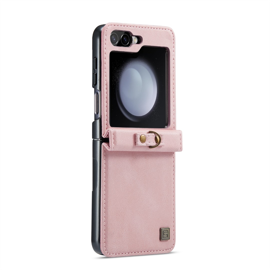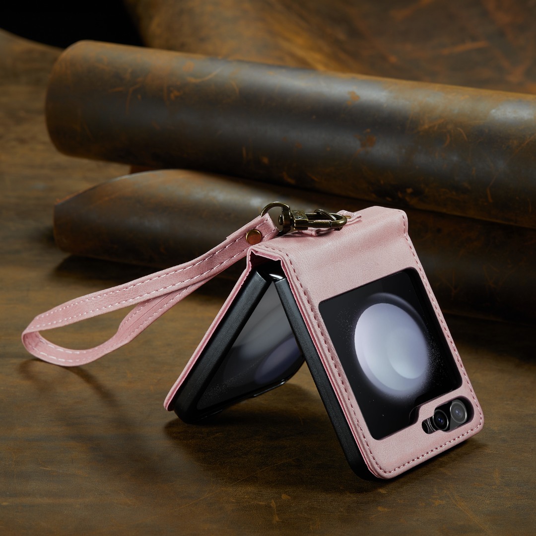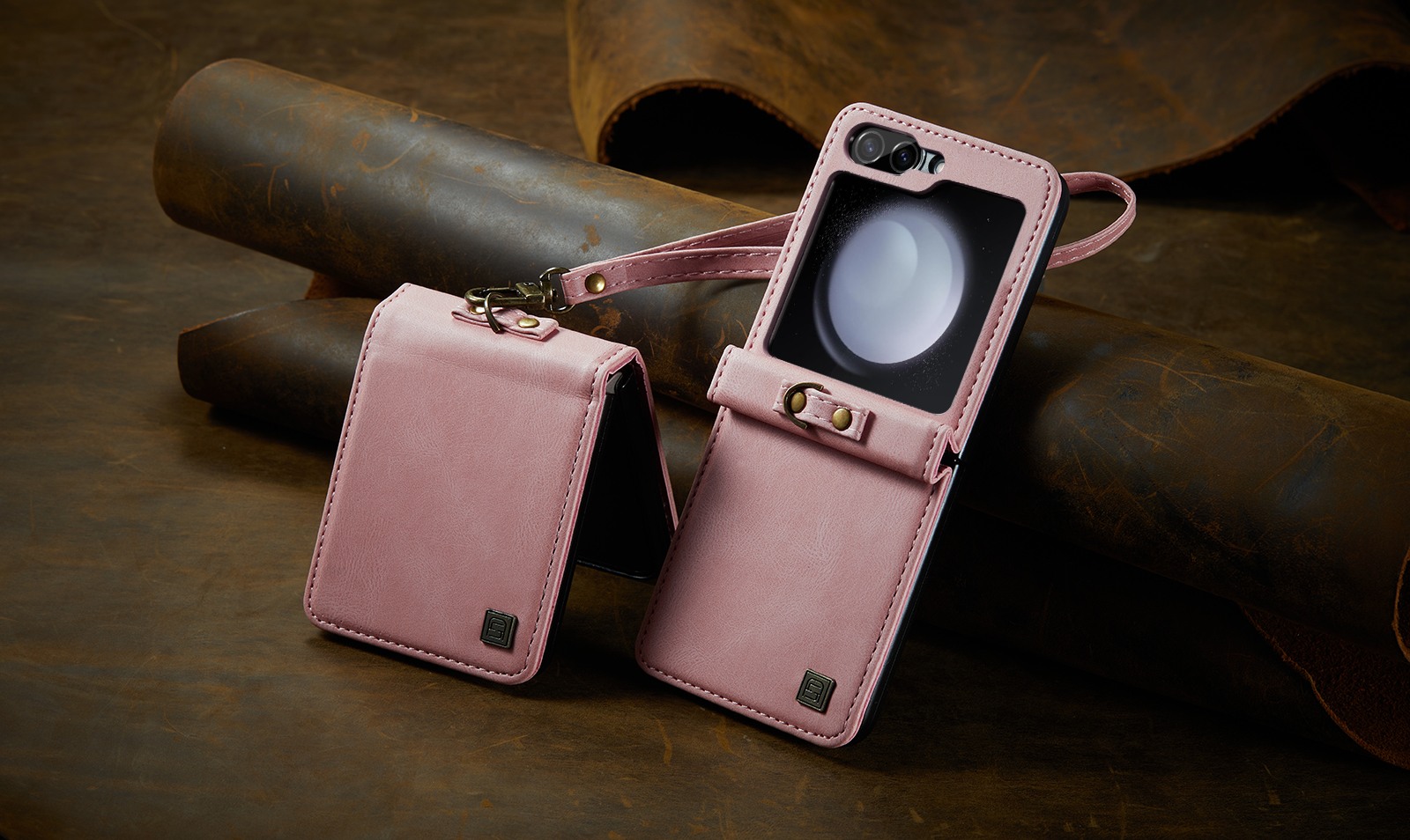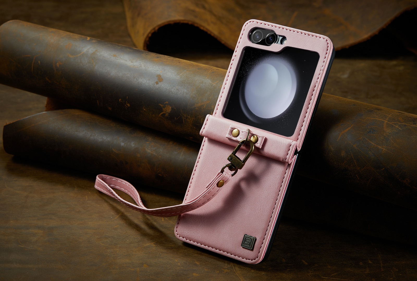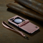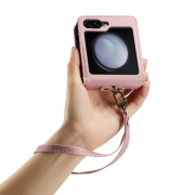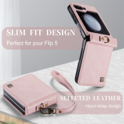 Husa piele textura moale, tip carcasa, protectie completa, curelusa mana detasabila, Samsung Galaxy Z Flip5, CaseMe Retro, Roz