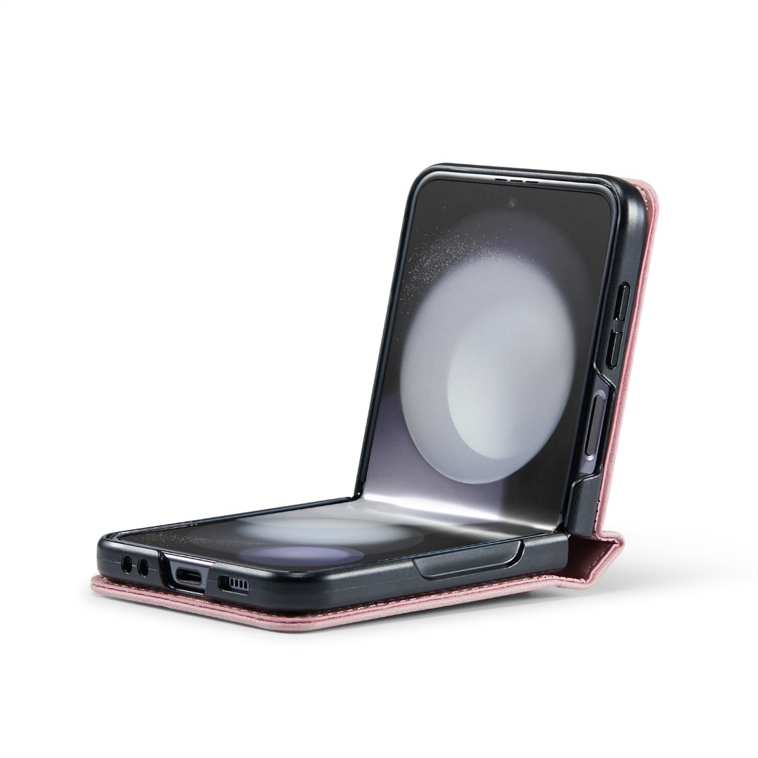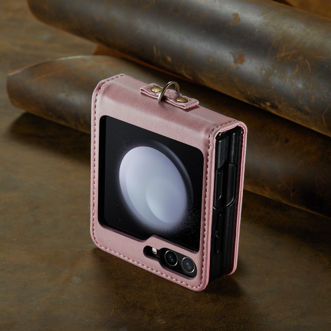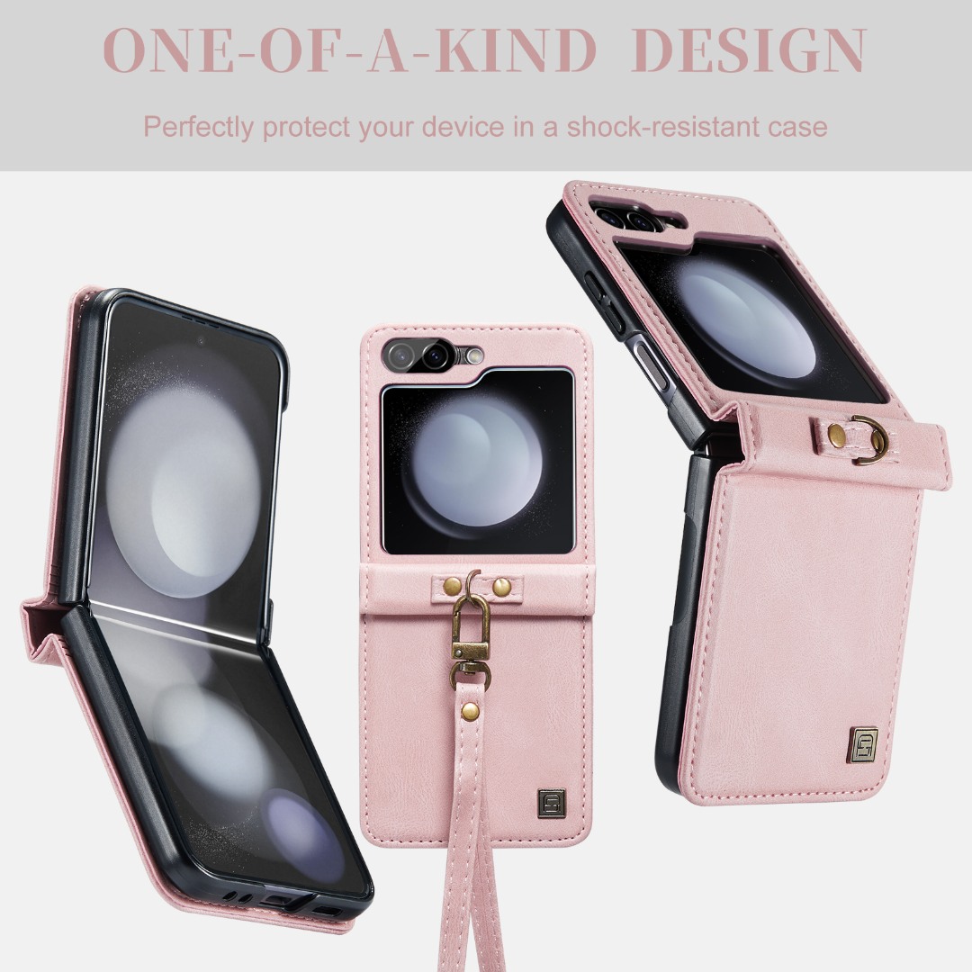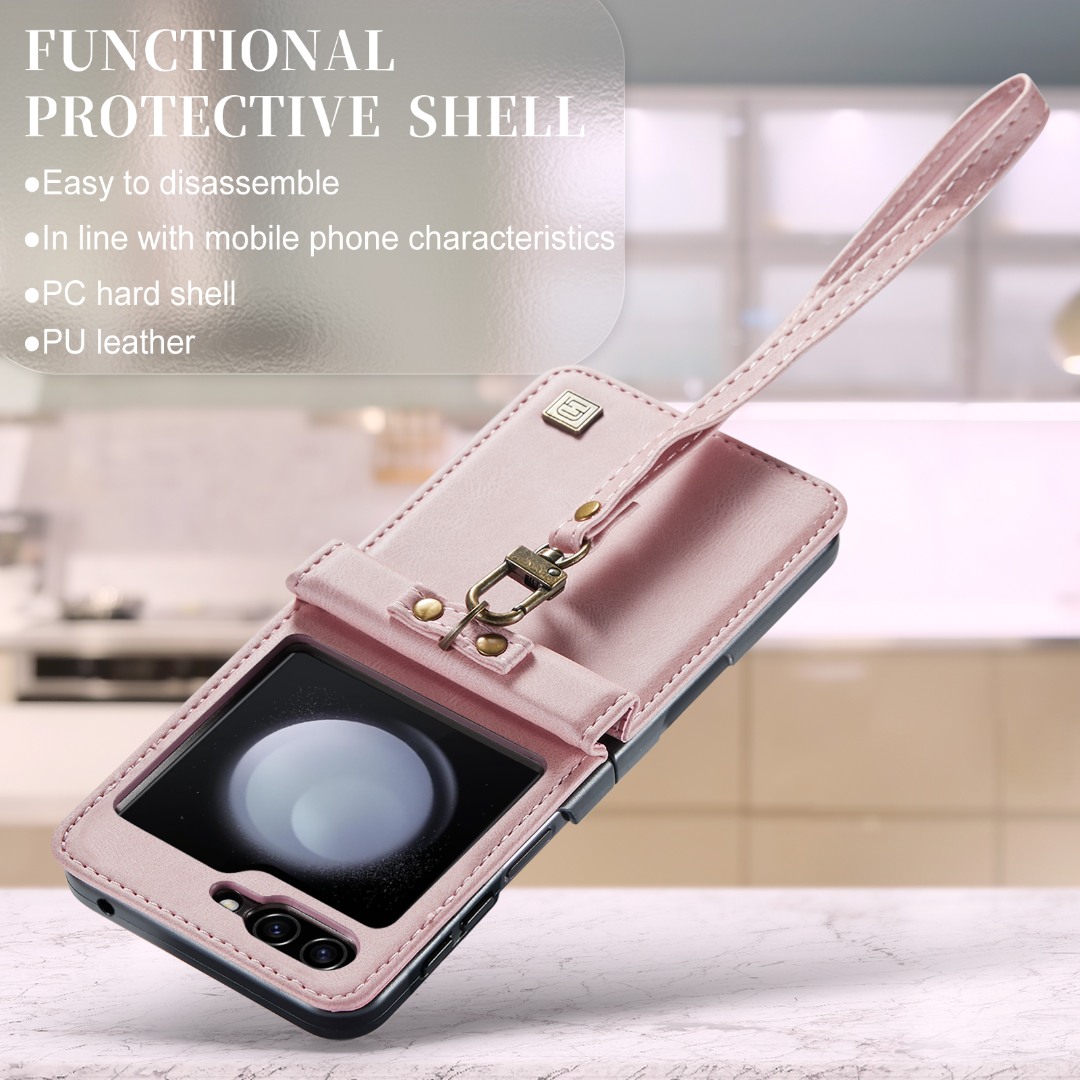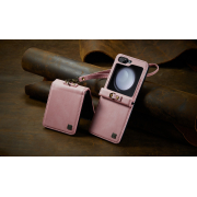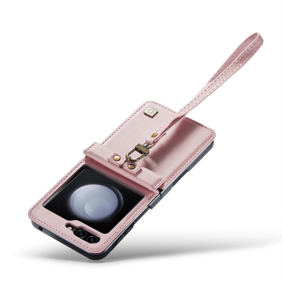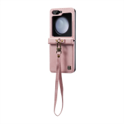 Husa piele textura moale, tip carcasa, protectie completa, curelusa mana detasabila, Samsung Galaxy Z Flip5, CaseMe Retro, Roz