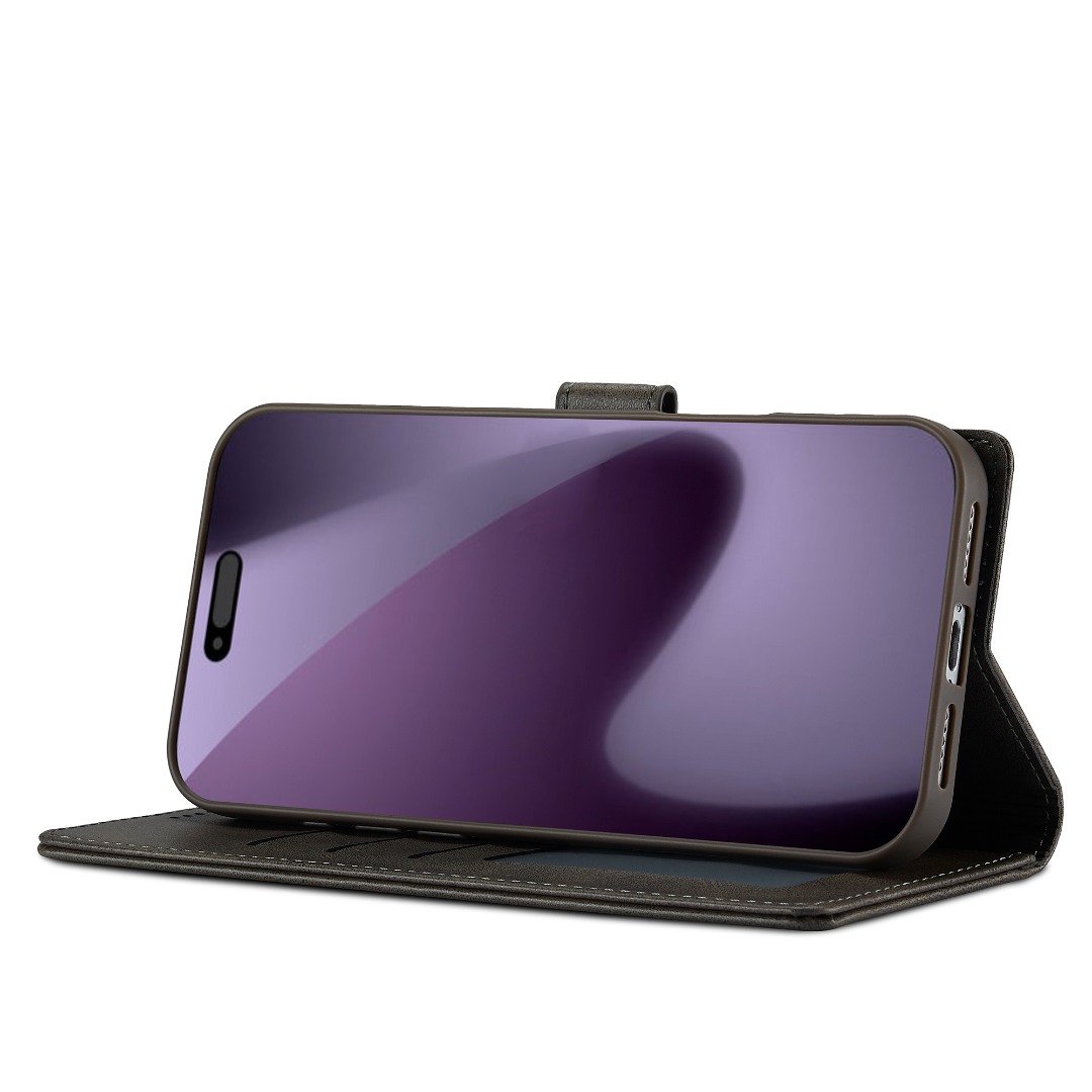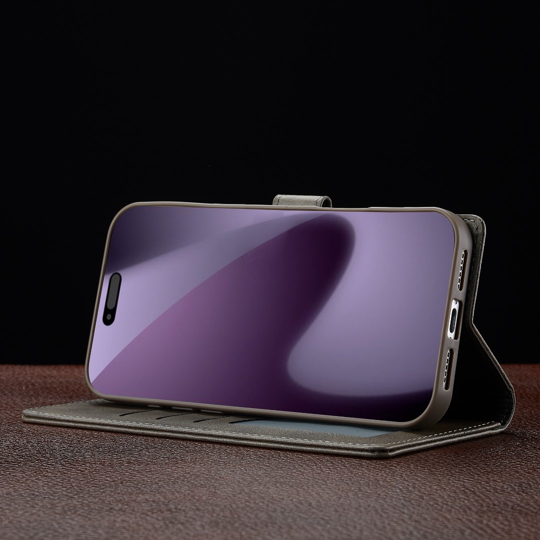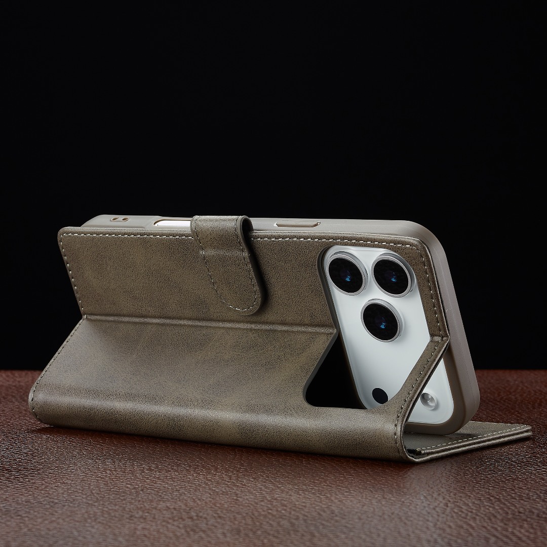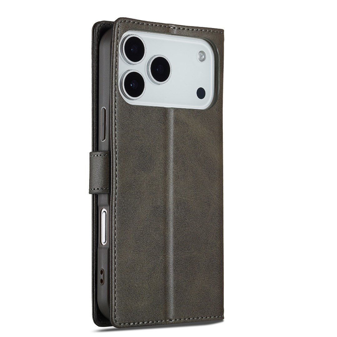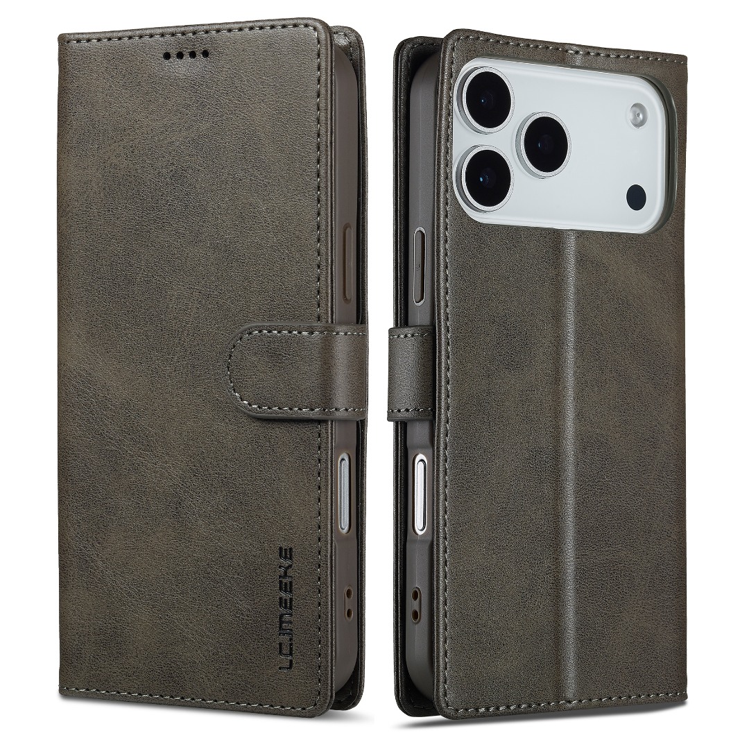 Husa piele, tip portofel, inchidere magnetica, stand, suport moale la culoarea husei, iPhone 17 Pro - CaseMe, Gri