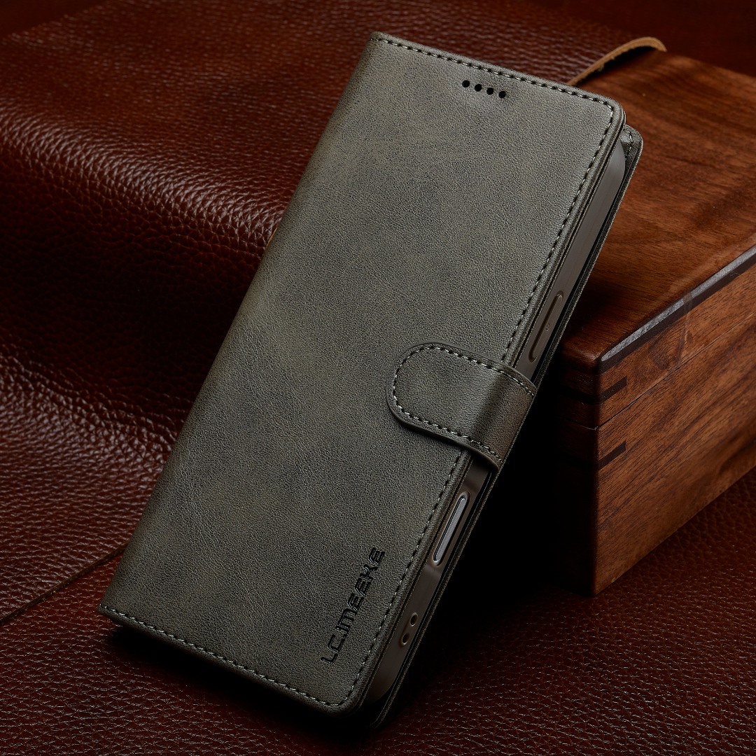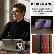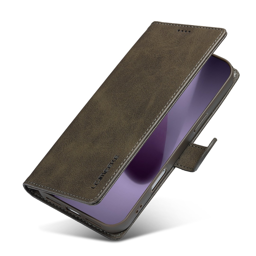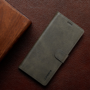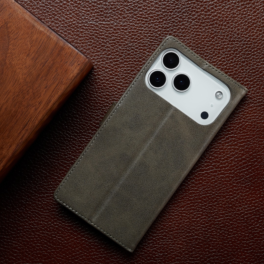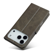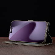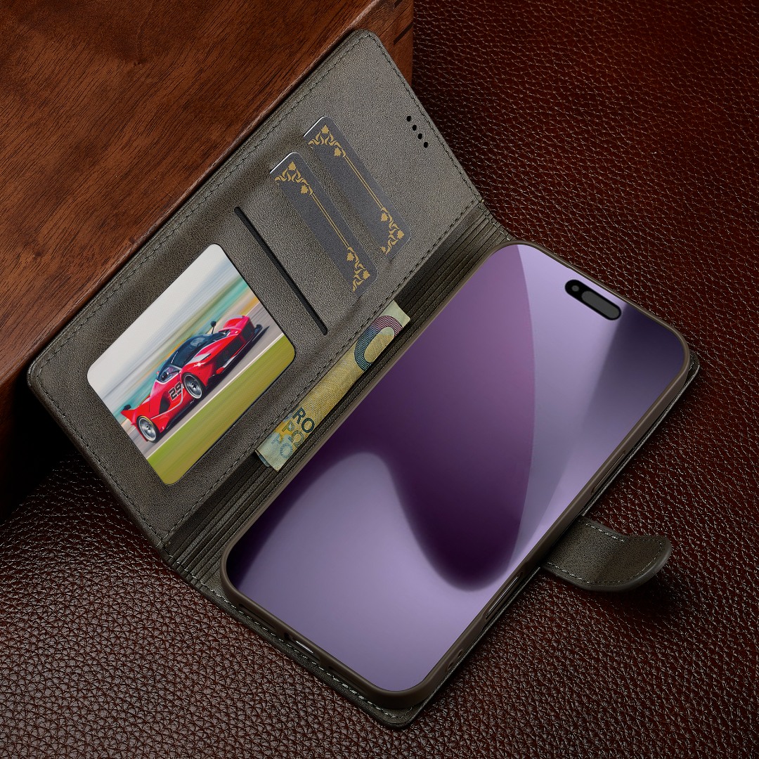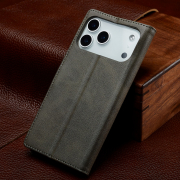 Husa piele, tip portofel, inchidere magnetica, stand, suport moale la culoarea husei, iPhone 17 Pro - CaseMe, Gri