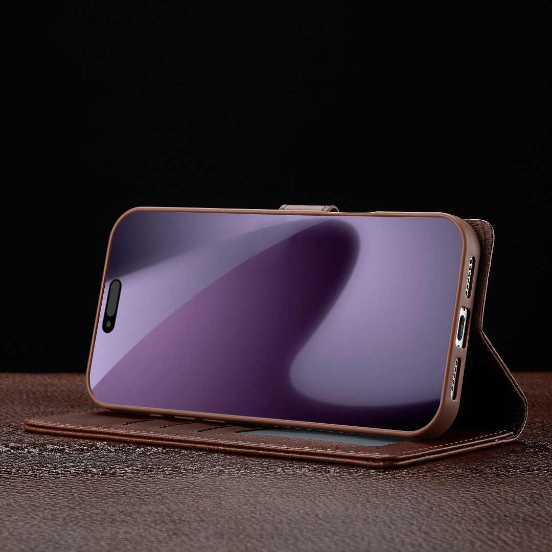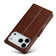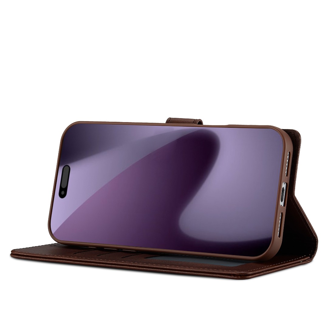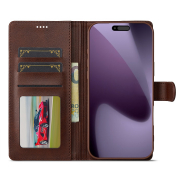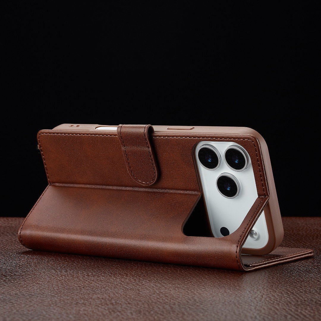 Husa piele, tip portofel, inchidere magnetica, stand, suport moale la culoarea husei, iPhone 17 Pro - CaseMe, Maro coffee