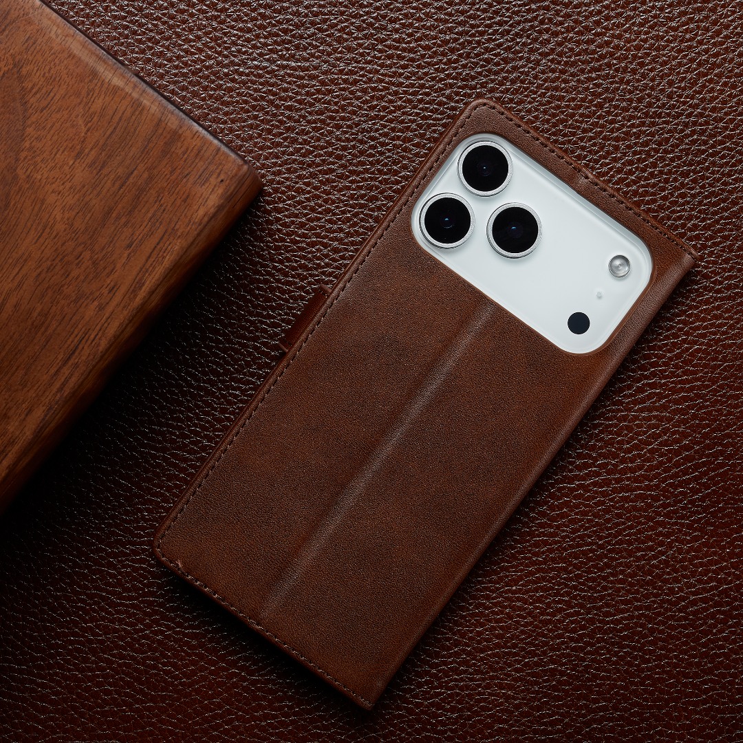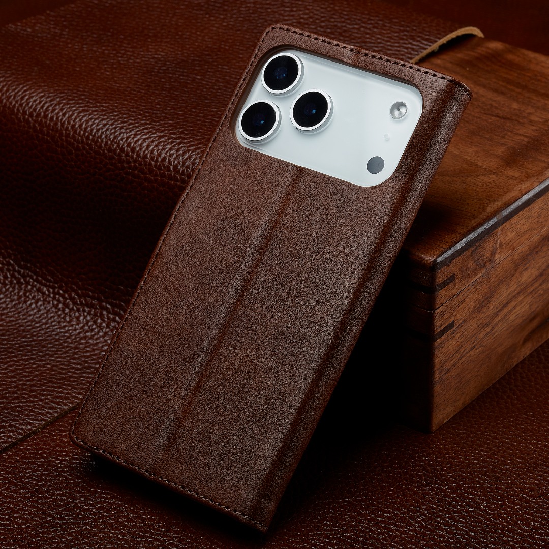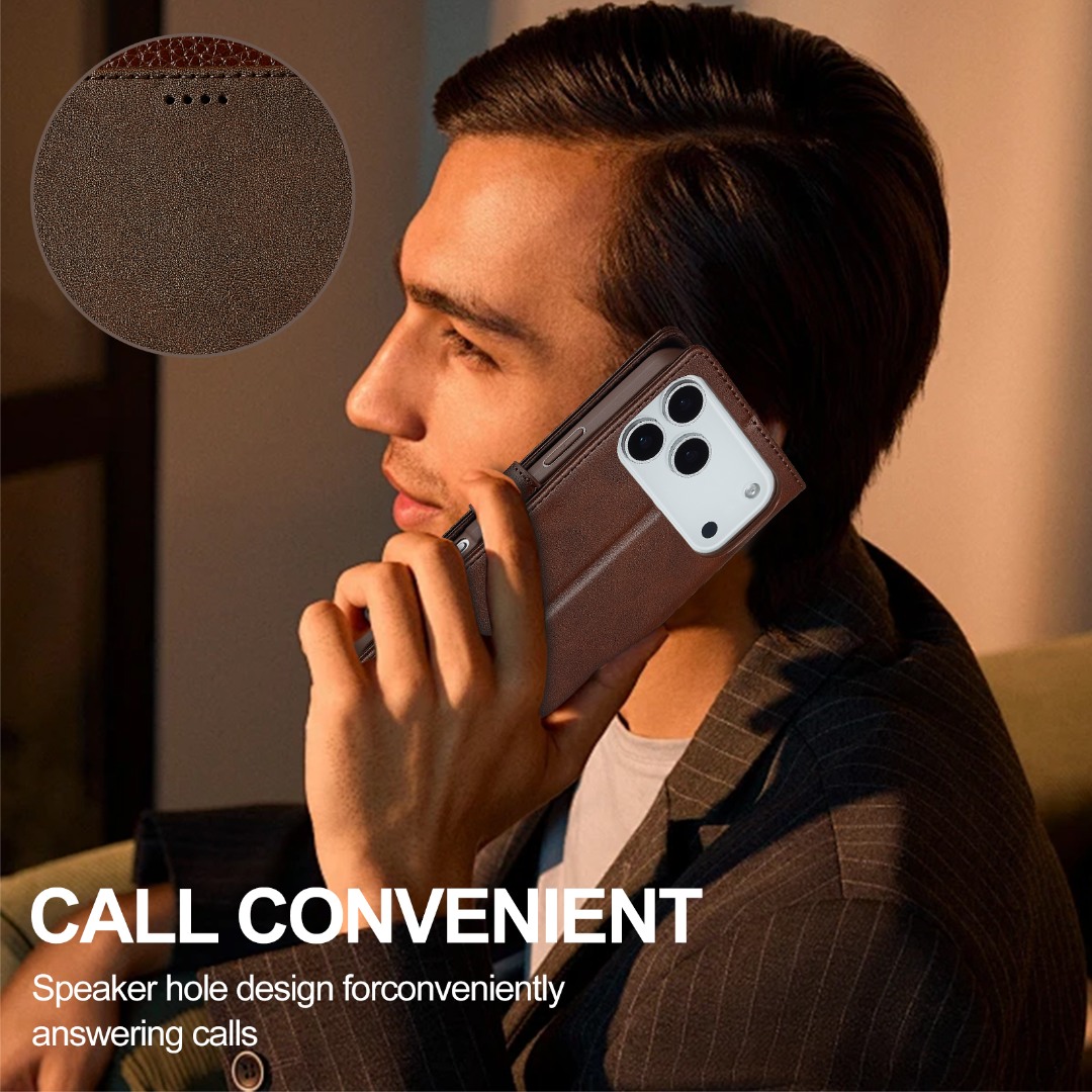 Husa piele, tip portofel, inchidere magnetica, stand, suport moale la culoarea husei, iPhone 17 Pro - CaseMe, Maro coffee
