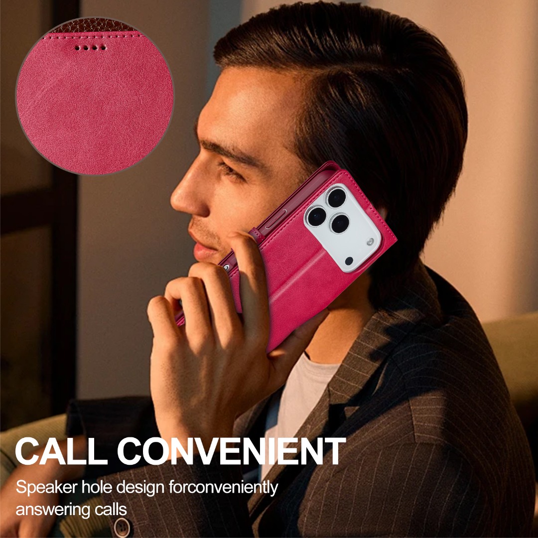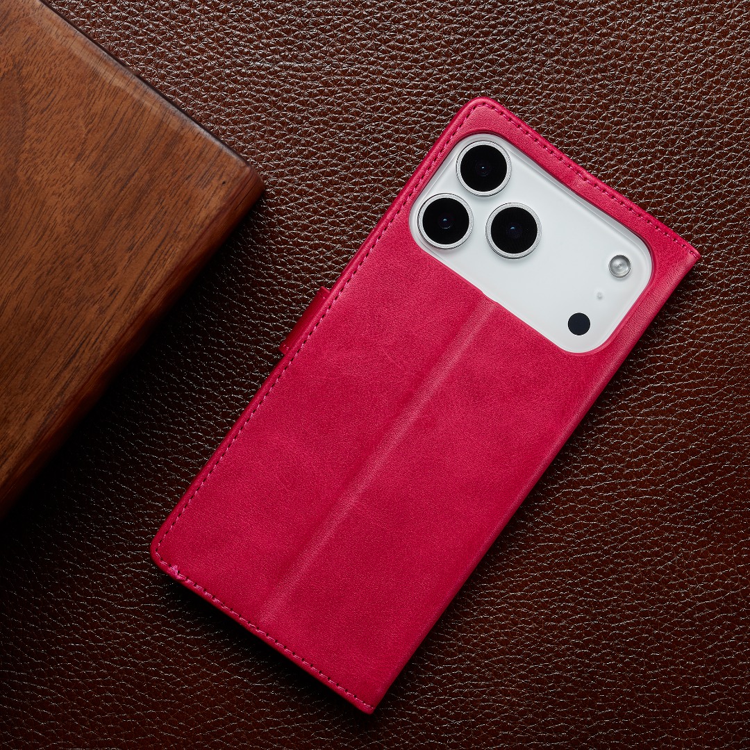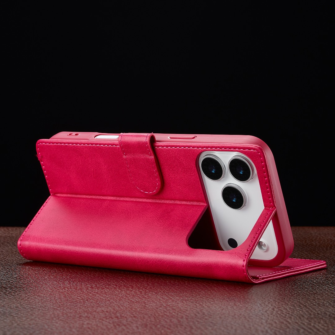 Husa piele, tip portofel, inchidere magnetica, stand, suport moale la culoarea husei, iPhone 17 Pro Max - CaseMe, Roz