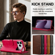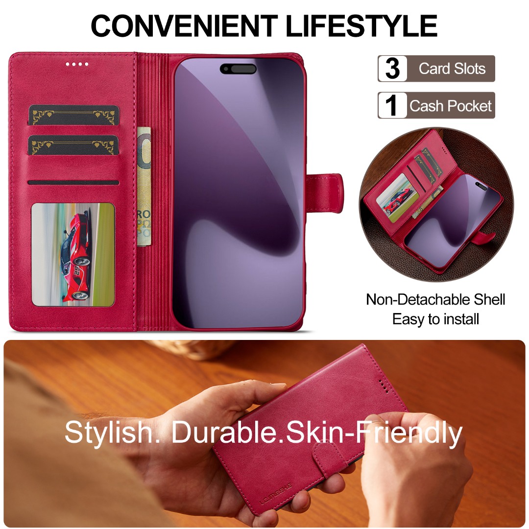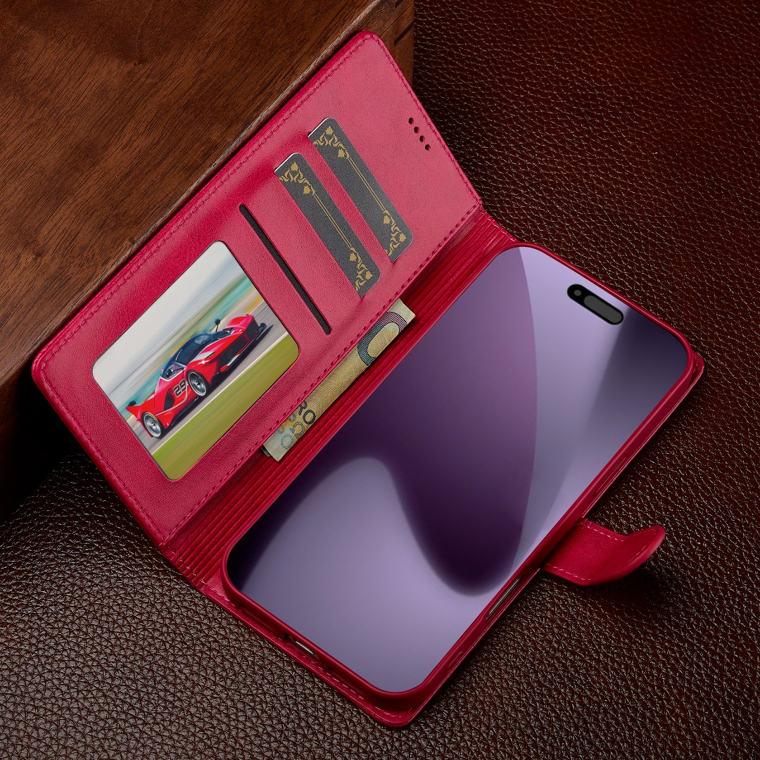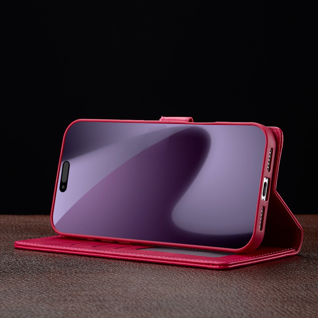 Husa piele, tip portofel, inchidere magnetica, stand, suport moale la culoarea husei, iPhone 17 Pro Max - CaseMe, Roz