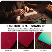 Husa practica si eleganta ce ofera posibilitatea introducerii de carduri si bancnote in buzunarasele interioare. Clapeta husei se inchide perfect cu ajutorul benzii magnetice, aceasta ajutand la o protectie superioara prin eliminarea riscului deschiderii clapetei in cazul scaparii telefonului. Telefonul se fixeaza perfect in mulajul din silicon moale din interiorul husei, acesta oferind un plus de protectie.