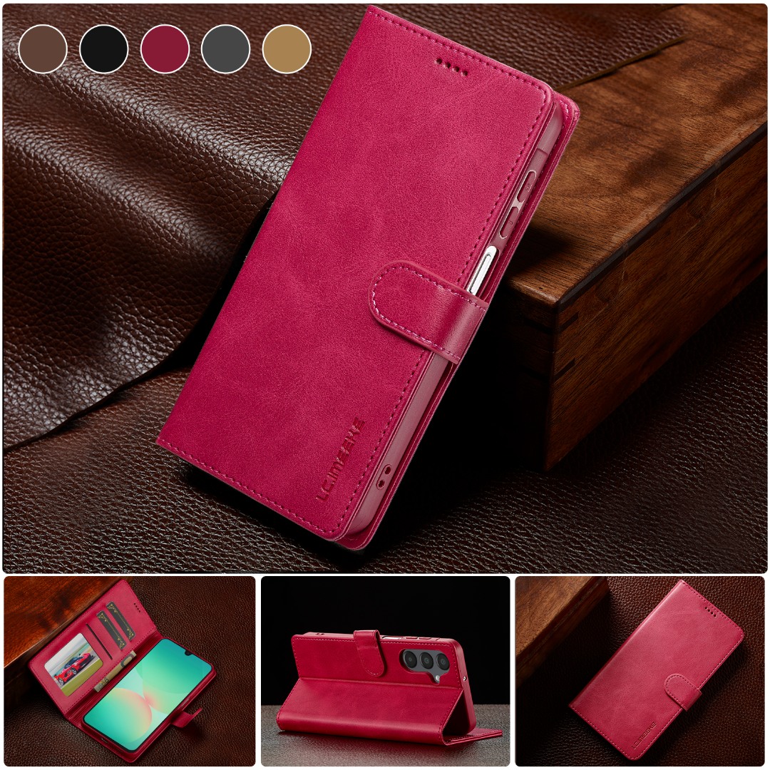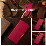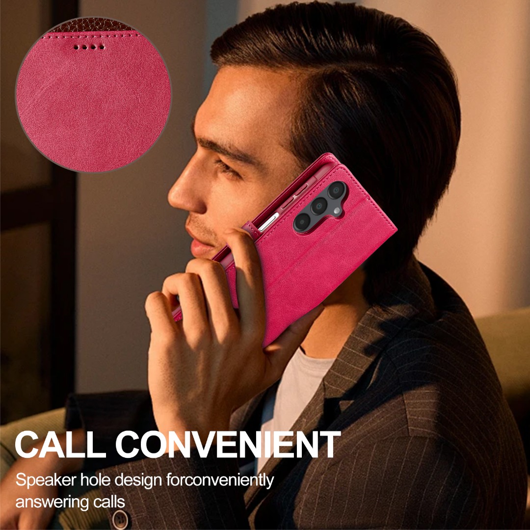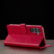 Husa piele, tip portofel, inchidere magnetica, stand, suport moale la culoarea husei, Samsung Galaxy S25 FE - CaseMe, Roz