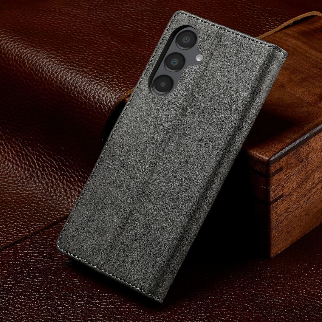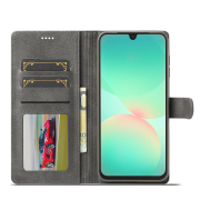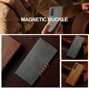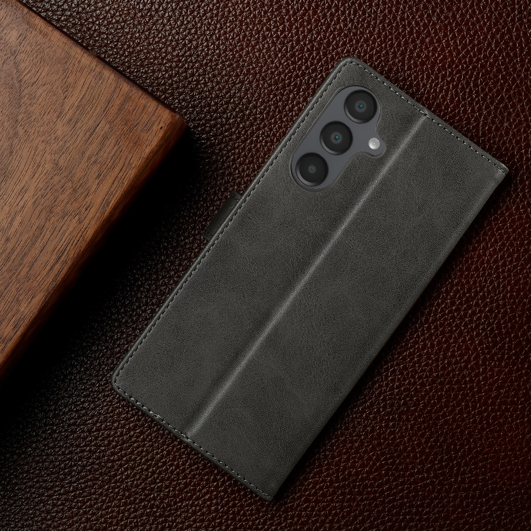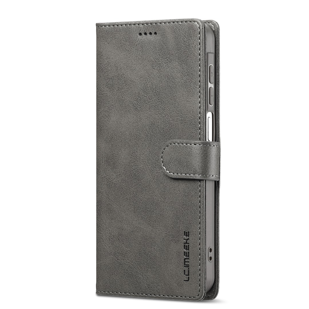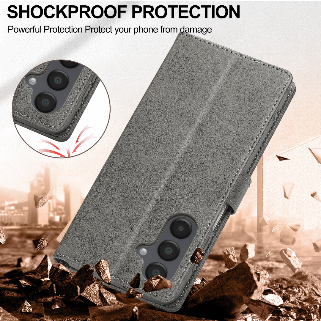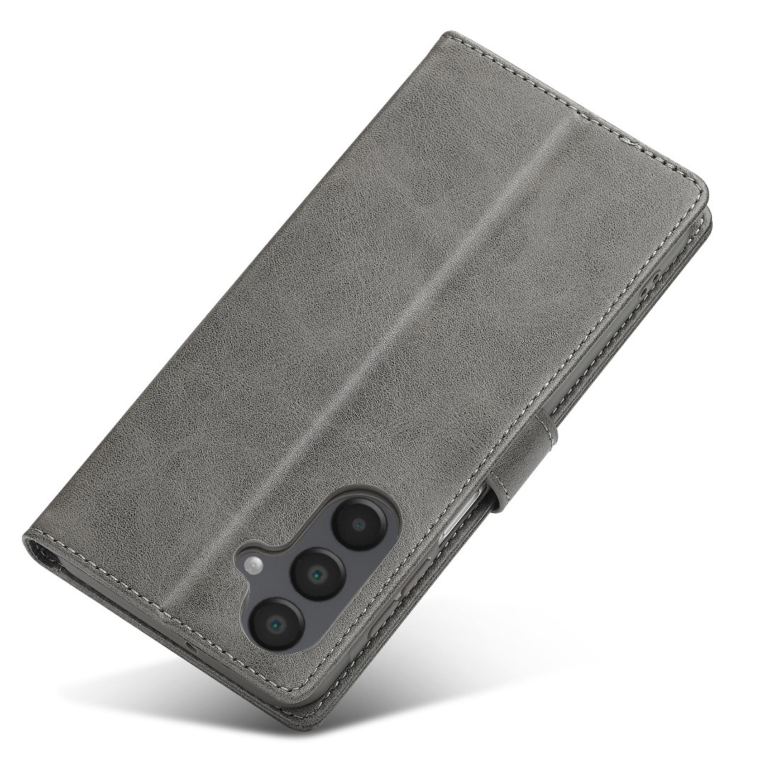 Husa piele, tip portofel, inchidere magnetica, stand, suport moale la culoarea husei, Samsung Galaxy S25 FE - CaseMe, Gri
