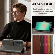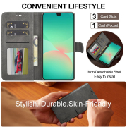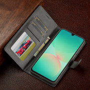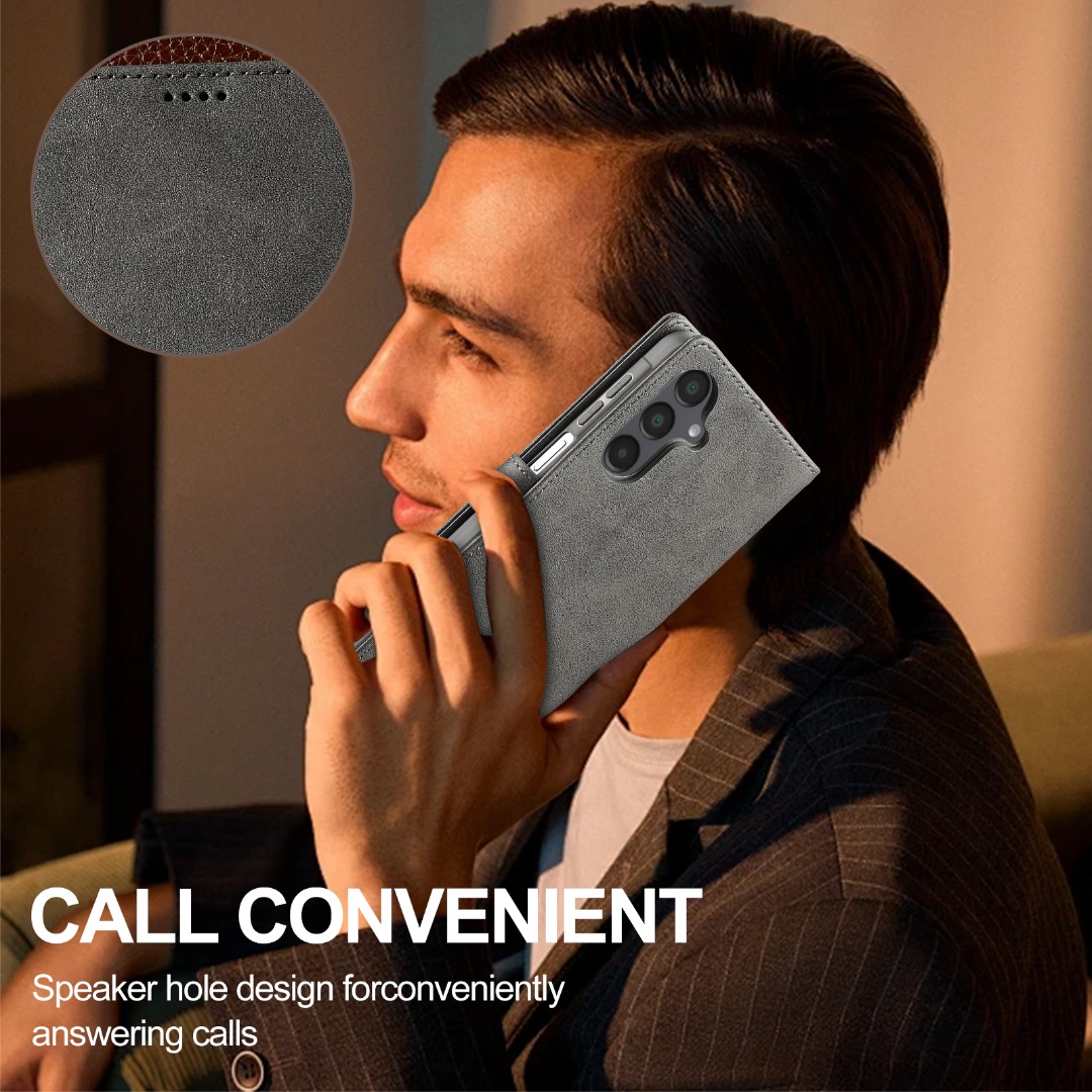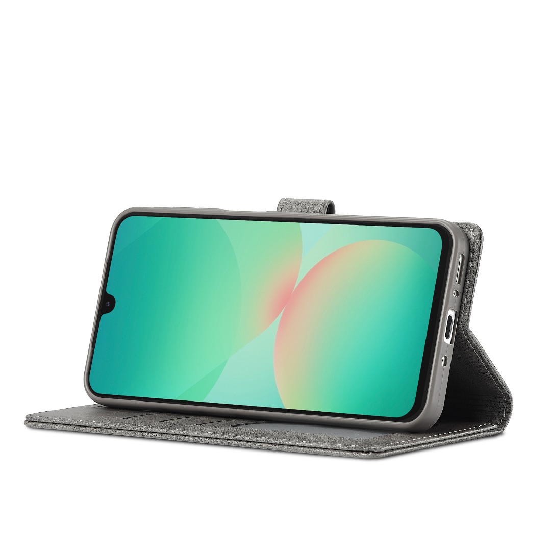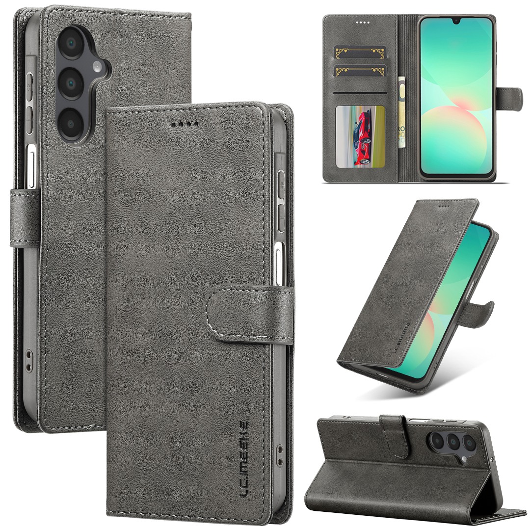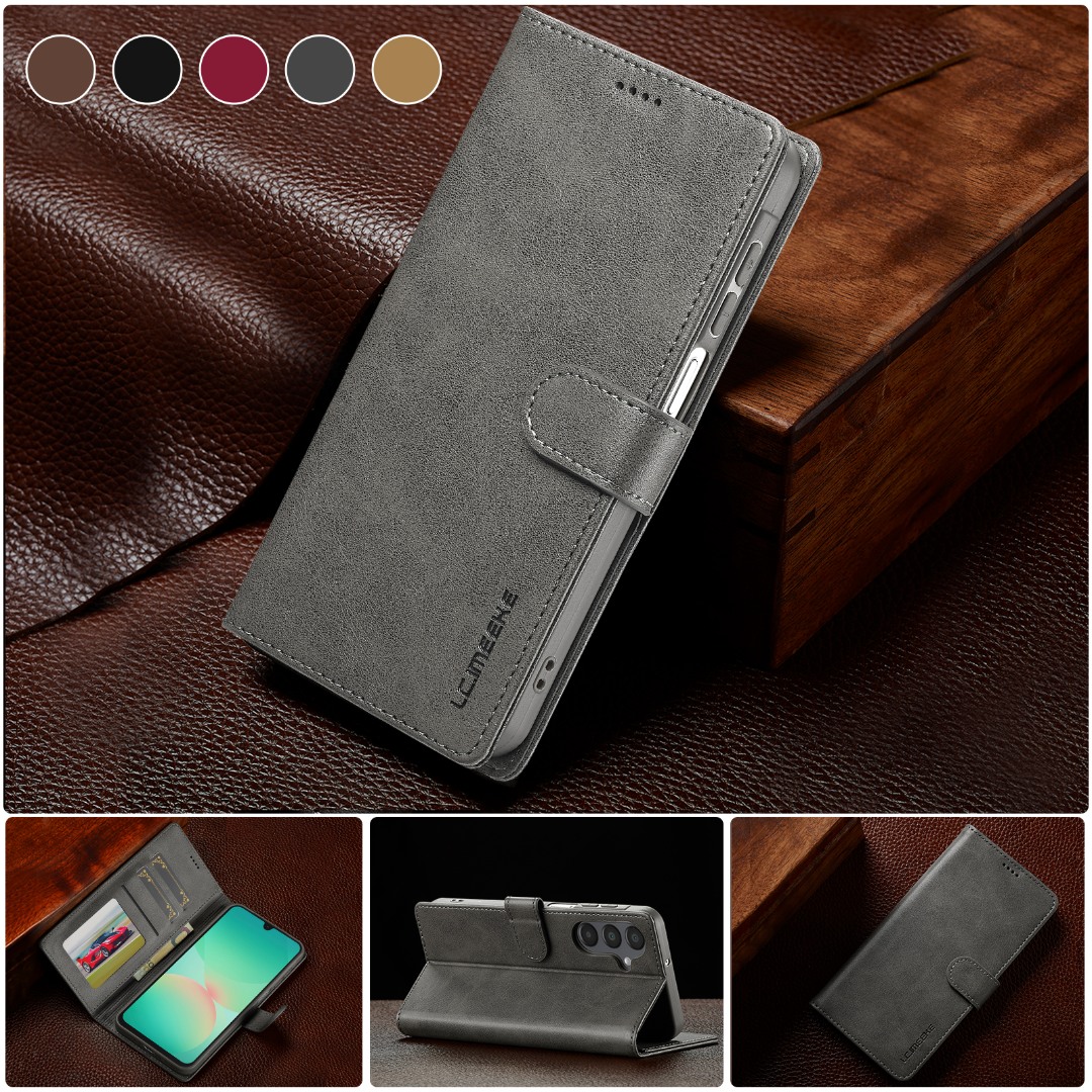 Husa piele, tip portofel, inchidere magnetica, stand, suport moale la culoarea husei, Samsung Galaxy S25 FE - CaseMe, Gri