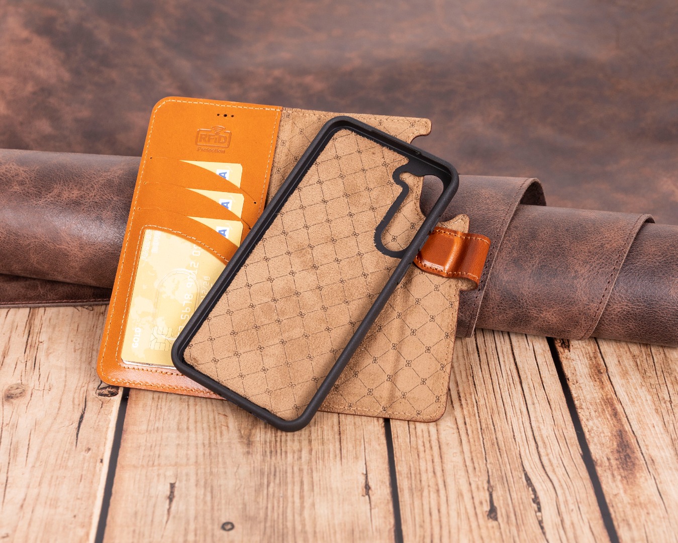 Clapeta se inchide magnetic, mentinand telefonul si cardurile in siguranta in orice moment.