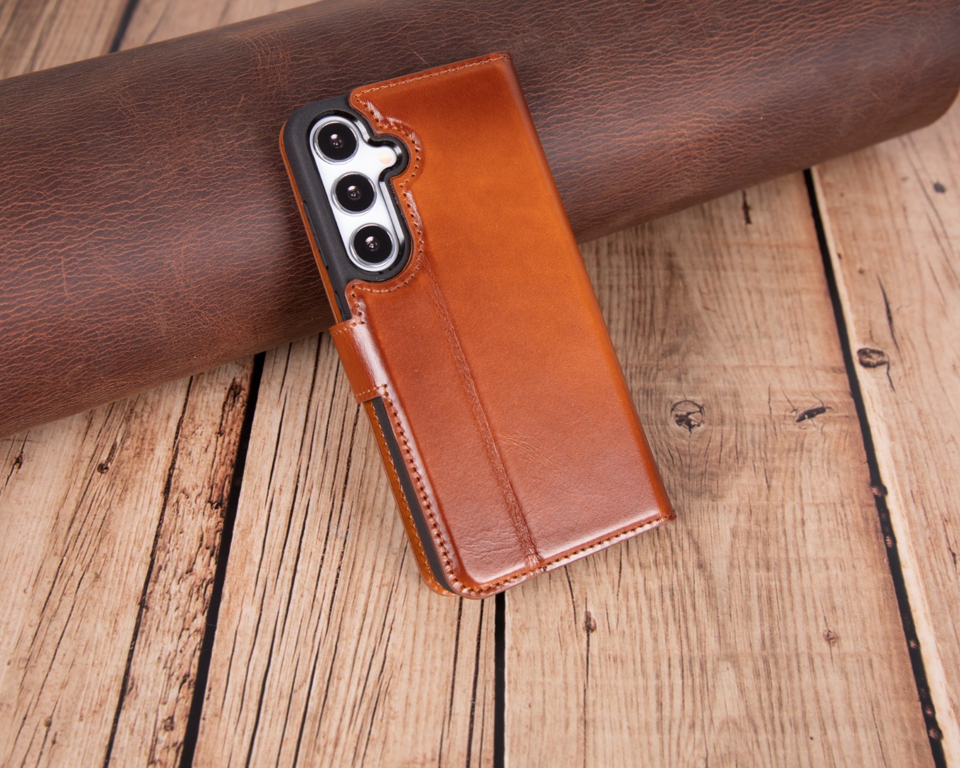Confectionata manual din piele naturala premium, husa ofera un aspect elegant si o textura placuta, avand la interior o microfibra moale pentru protectia dispozitivului.